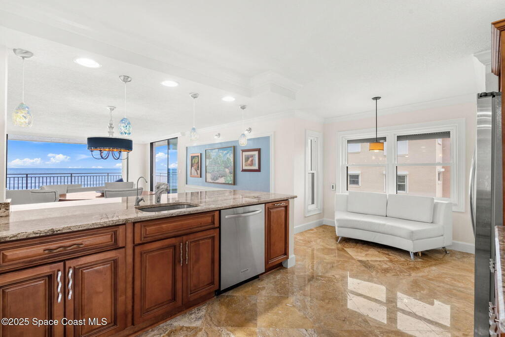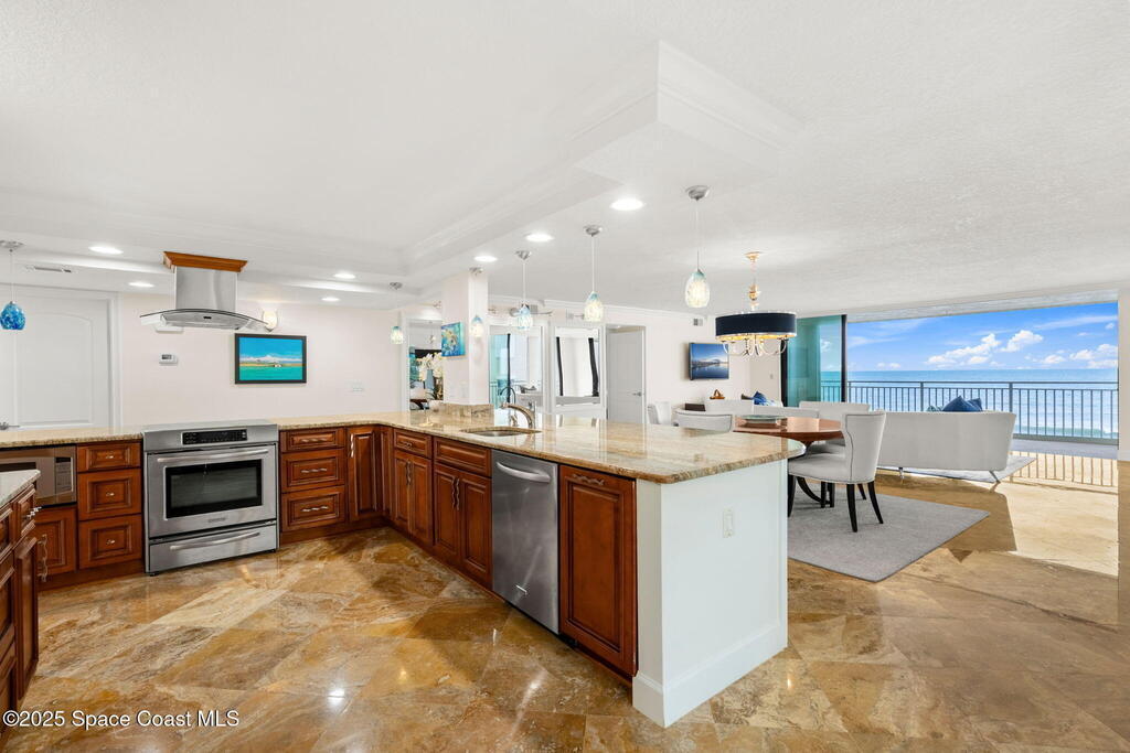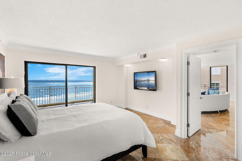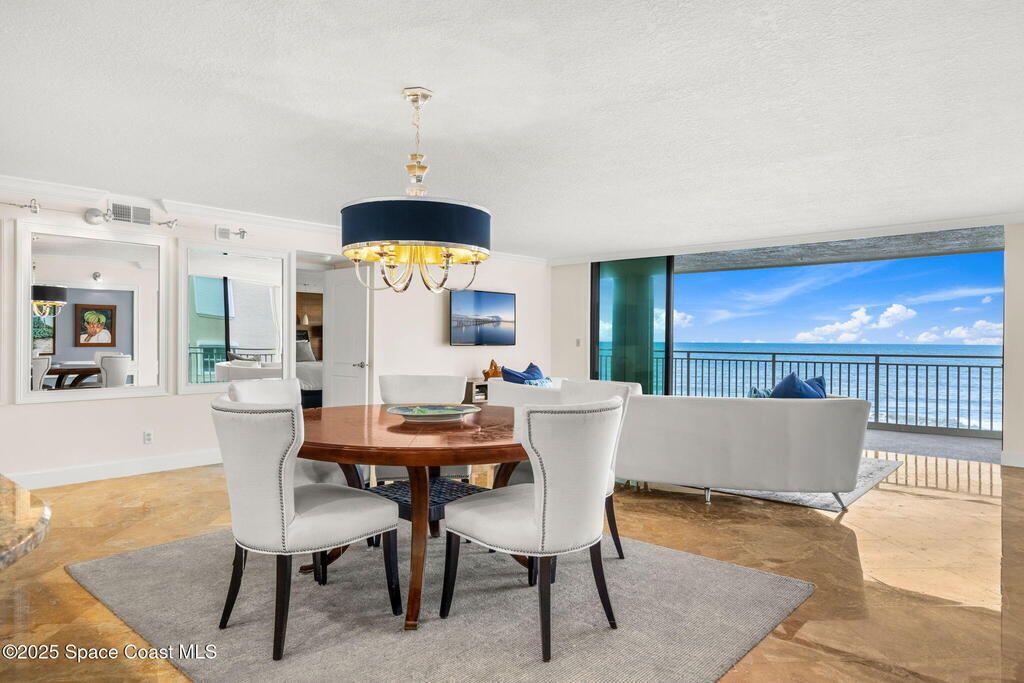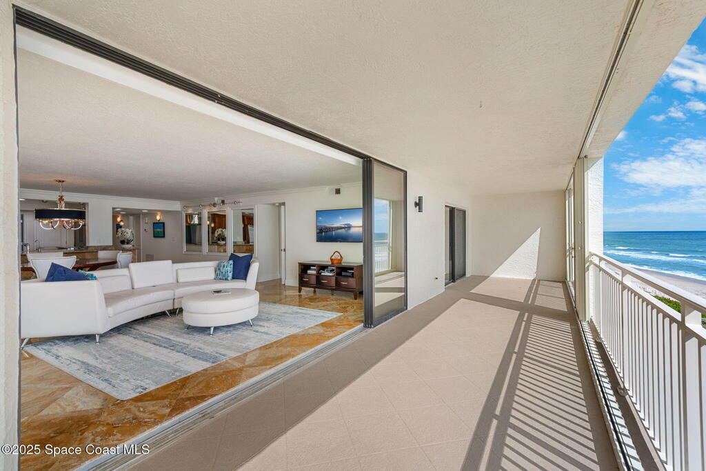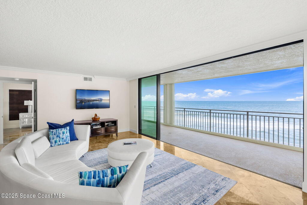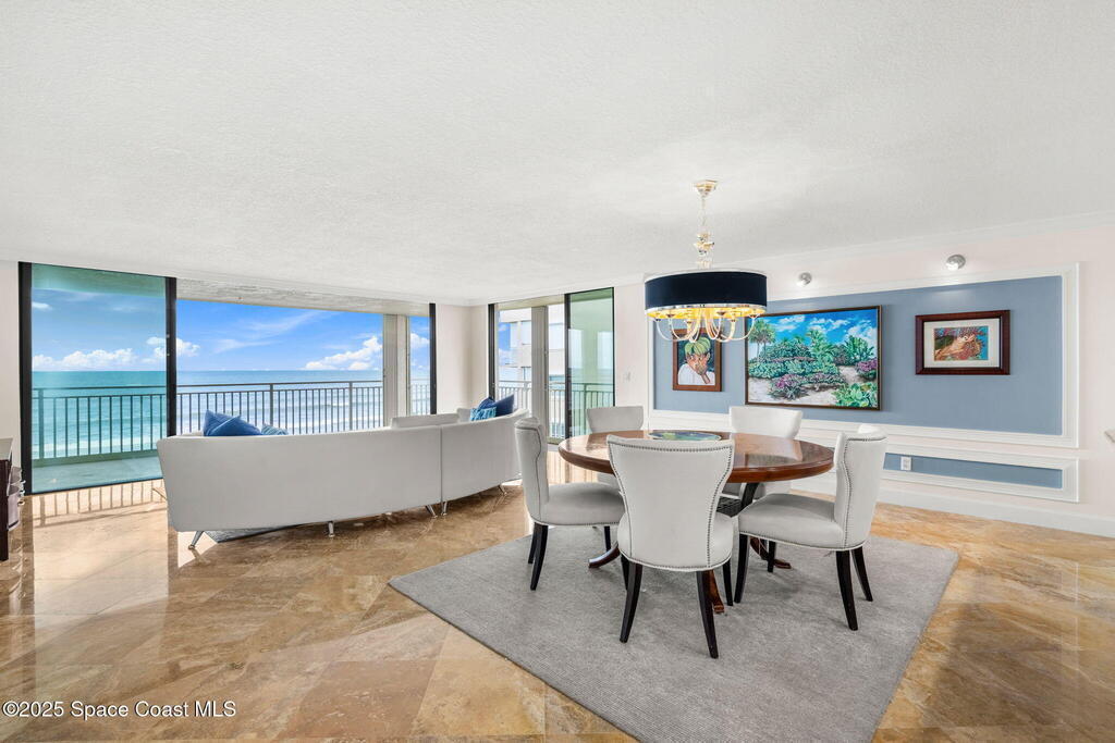 72 hour kick out.Modern Oceanfront Luxury with Wraparound Views! Experience coastal living at its finest in this breathtaking southeast corner oceanfront condo, perched on 5th floor with unobstructed, panoramic views that will leave you speechless. Designed to feel like you're floating on a cruise ship, this light-filled residence features floor-to-ceiling glass sliders and a 40-foot wraparound balcony, capturing the endless blues of the Atlantic from nearly every angle. No detail was overlooked when the sellers completely gutted the unit down to the studs, opening walls to create a modern, open-concept layout that maximizes natural light and ocean vistas the moment you walk through the door. The result is a stunning, serene space with floated, hand-polished travertine floors, raised ceilings, and designer finishes throughout. The chef's kitchen is a showstopper--oversized and open to the view, with a large breakfast bar that seats seven, perfect for entertaining against a backdrop of