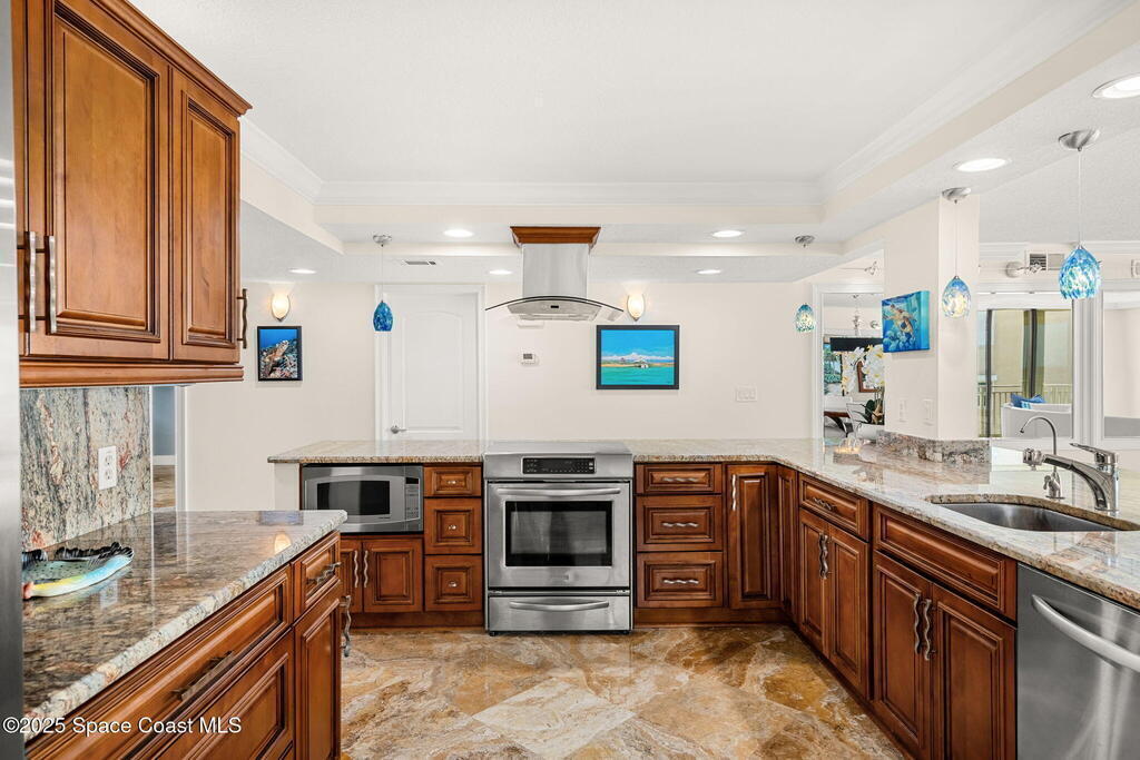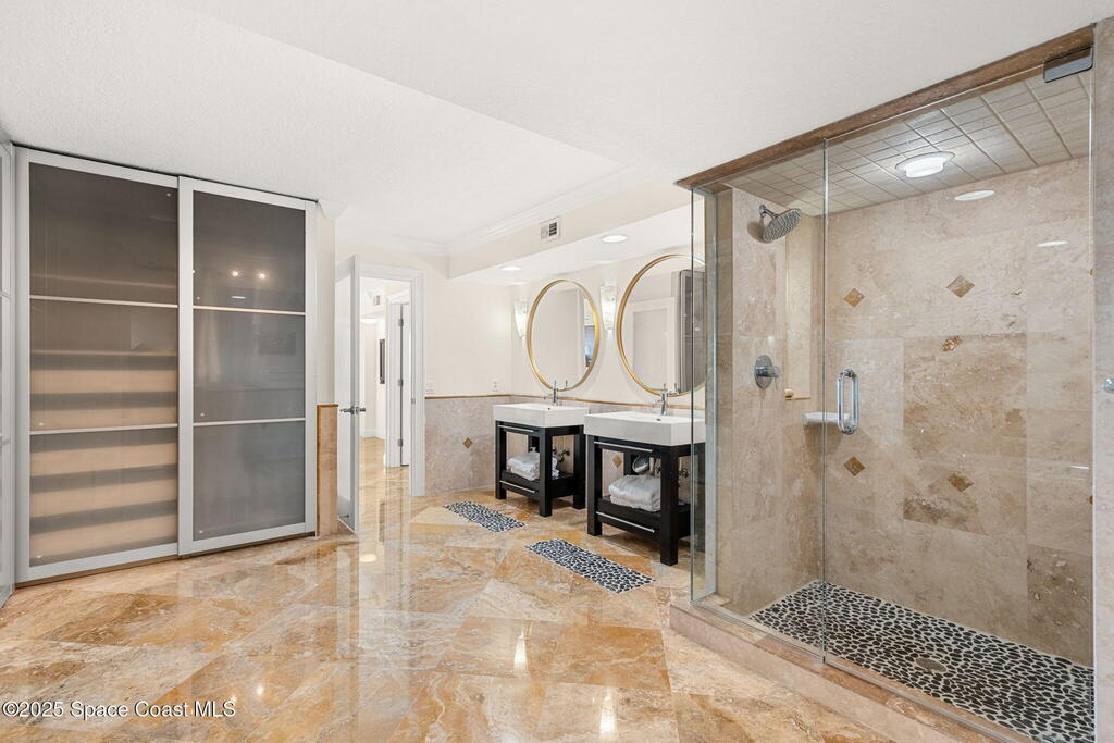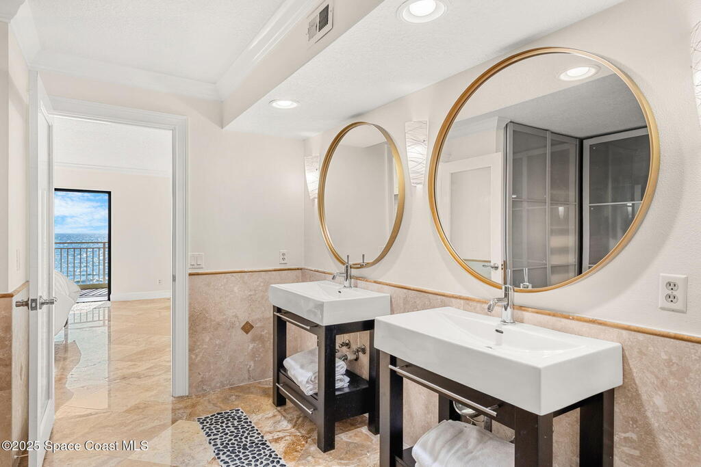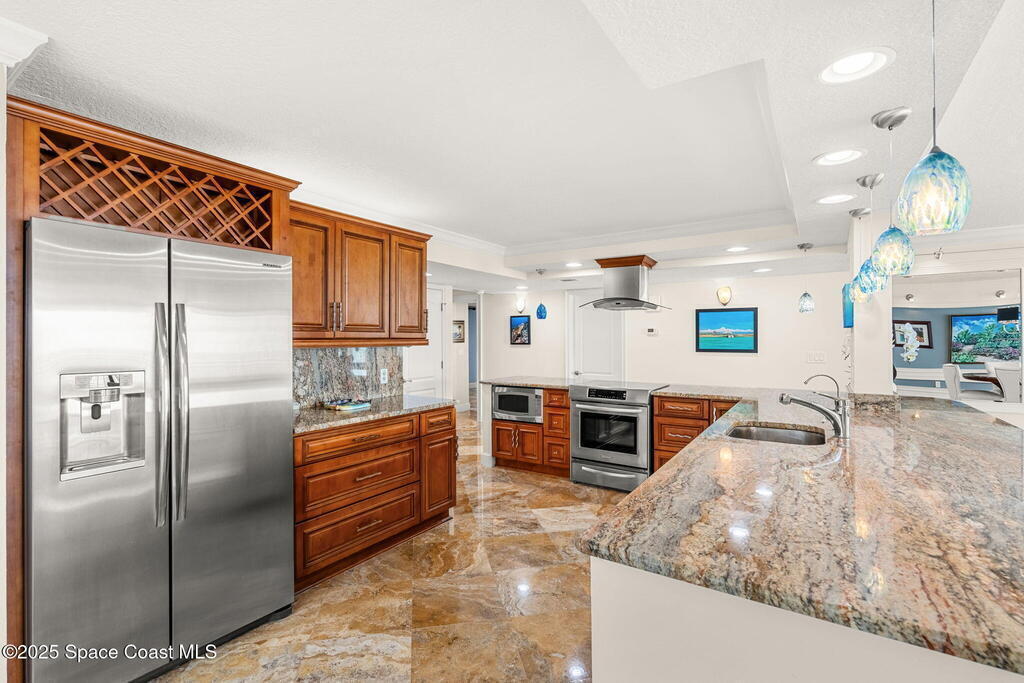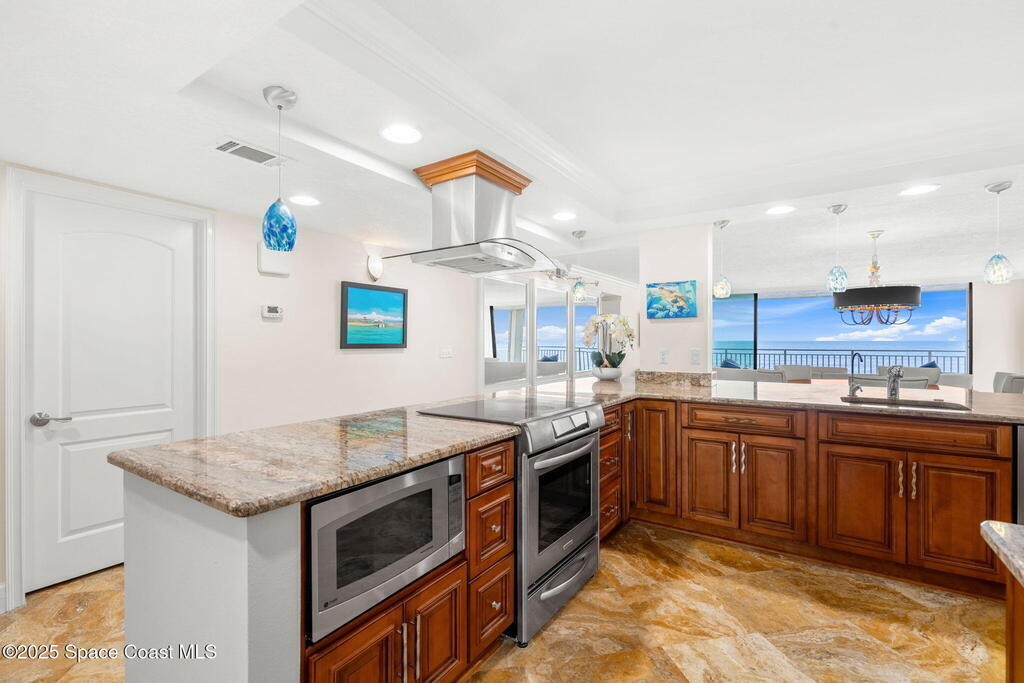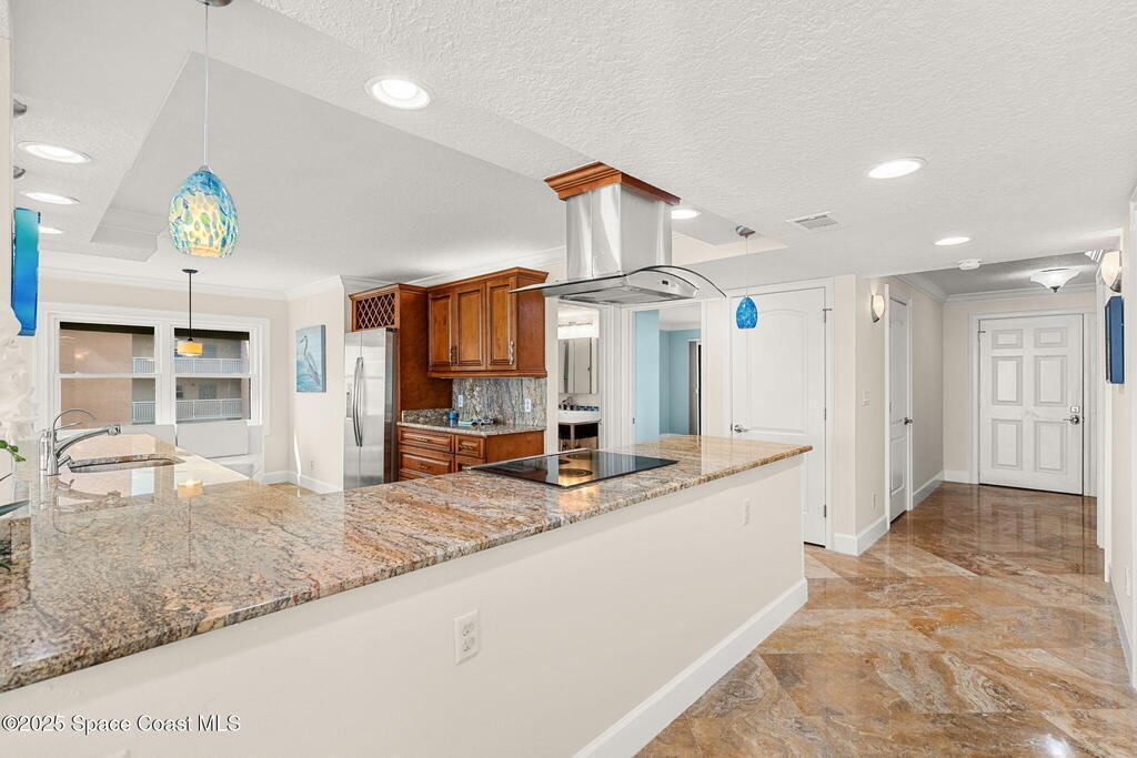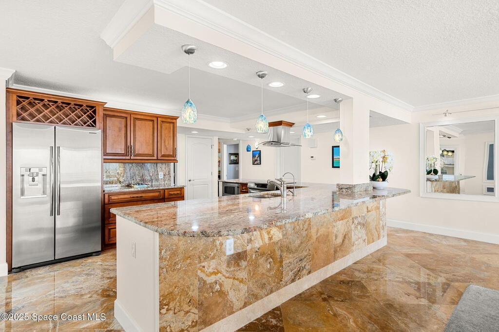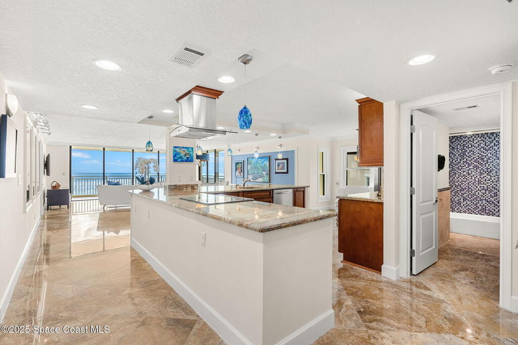72 hour kick out.Modern Oceanfront Luxury with Wraparound Views! Experience coastal living at its finest in this breathtaking southeast corner oceanfront condo, perched on 5th floor with unobstructed, panoramic views that will leave you speechless. Designed to feel like you're floating on a cruise ship, this light-filled residence features floor-to-ceiling glass sliders and a 40-foot wraparound balcony, capturing the endless blues of the Atlantic from nearly every angle. No detail was overlooked when the sellers completely gutted the unit down to the studs, opening walls to create a modern, open-concept layout that maximizes natural light and ocean vistas the moment you walk through the door. The result is a stunning, serene space with floated, hand-polished travertine floors, raised ceilings, and designer finishes throughout. The chef's kitchen is a showstopper--oversized and open to the view, with a large breakfast bar that seats seven, perfect for entertaining against a backdrop of
