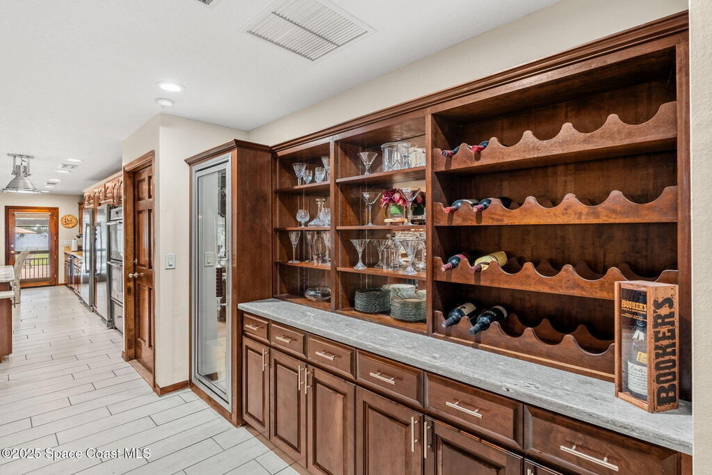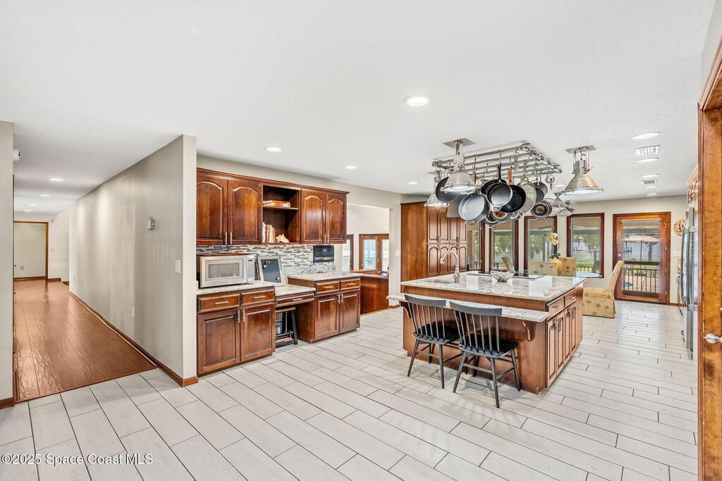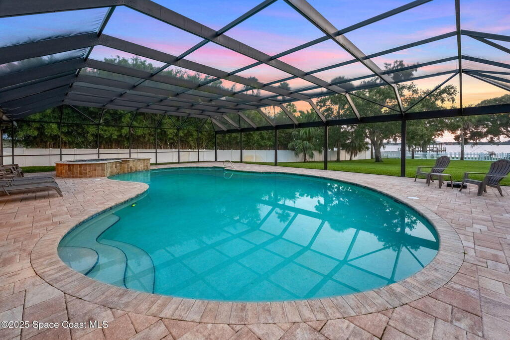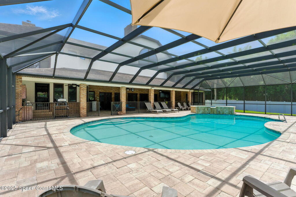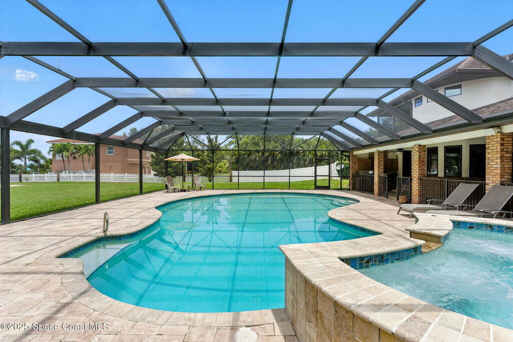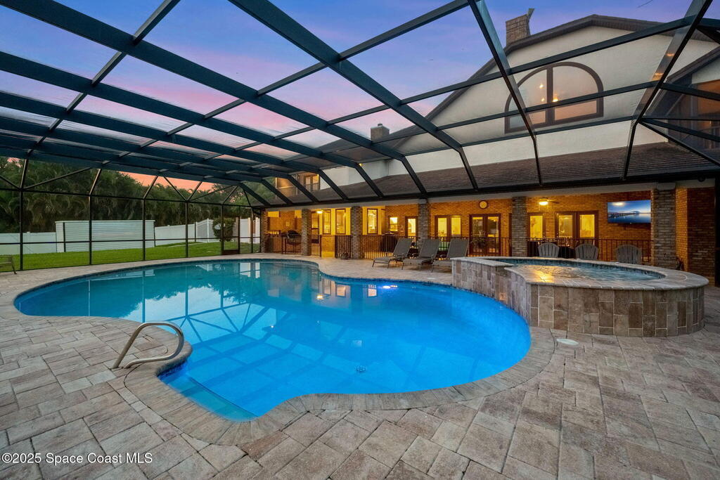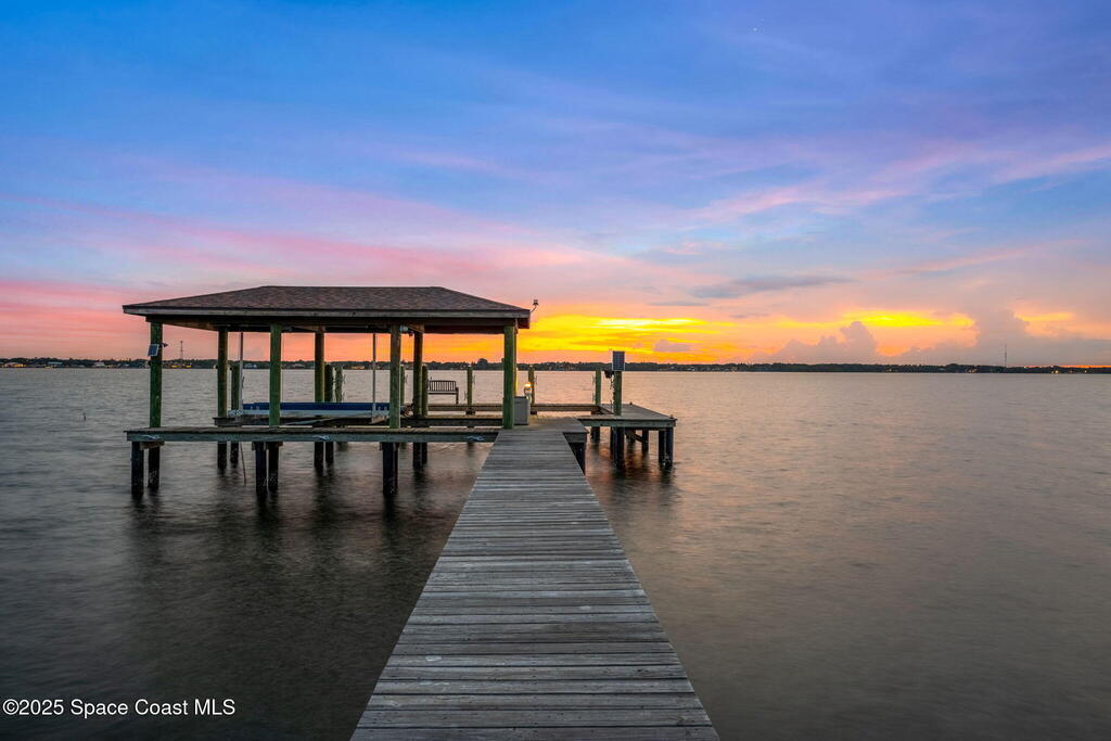 This extraordinary 6-bedroom, 5.5-bath riverfront estate is a private retreat on over 2 lush acres in the heart of Merritt Island. With 105 feet of shoreline and more than 6,600 sq. ft. of interior space, this property was designed for entertaining, multigenerational living, and serene waterfront enjoyment.A rare private boat ramp, 300-foot dock with double slips, 10,000-lb lift, and direct access to the Indian River make this a true boater's dream. Watch rocket launches from your own backyard or unwind beside the deep, heated pool and spa. The outdoor kitchen includes a grill, smoker, fridge, and covered lounge space ideal for entertaining. The backyard feels incredibly private, framed by mature landscaping that creates a peaceful sanctuary.Inside, a dramatic two-story foyer opens to refined living areas with wood and tile floors, two fireplaces, and a wet bar.