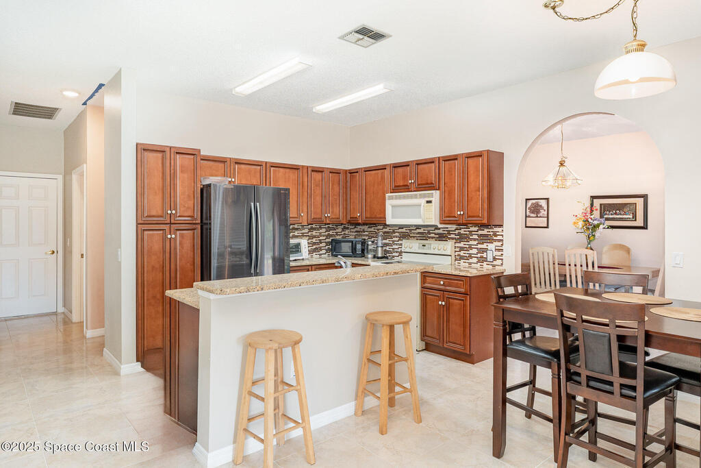 Beautiful 4BR/3BA home featuring upgraded kitchen and bathroom vanities, tile flooring throughout, and a spacious open living area. Enjoy a designated dining space, family room off the kitchen, and eat-in kitchen. The primary suite offers an en-suite bath with a soaking tub and separate shower. Indoor laundry and sliding glass doors from three rooms lead to a screened porch. Conveniently located near shops, dining, and more!
