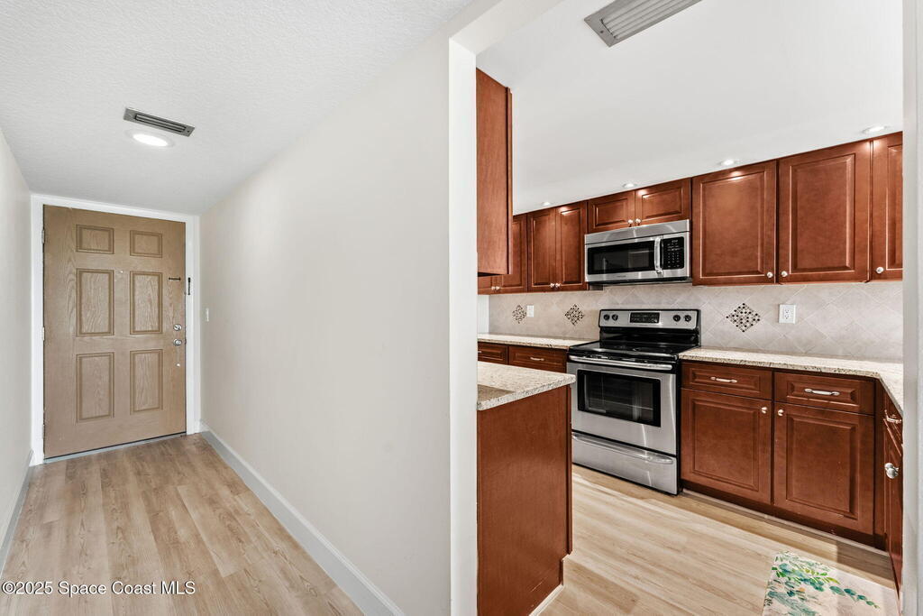BEAUTIFULLY UPDATED 2/2 DIRECT OCEAN IN CAPE CANAVERAL!!! Enjoy direct ocean views from the 2nd floor at Canaveral Sands, a superbly managed and maintained community, and one of the closest oceanfront complexes to Kennedy Space Center AND Port Canaveral. Enjoy unobstructed rocket launches over the ocean, and watch the cruise ships go in and out of port several days per week. Ask any local...these things never get old! Brand new impact sliders and newer AC keep energy bills low, while newer luxury vinyl plank and neutral paint set the canvas for your choice of decor. Sliders off both the living room and master bedroom lead to a deep open balcony offering fresh air and private outdoor living space. The stunning remodeled kitchen features cherry wood cabinetry, granite countertops, wine fridge and stainless appliances. The unit also features interior laundry and a detached private single car garage, LARGE DOG PERMITTED -- NO WEIGHT LIMIT!! One month minimum rental term and low HOA fee.