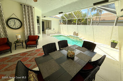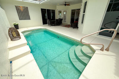 Elegant and expansive courtyard home with 3 bedrooms and 3 full baths, offering tranquil river views and exceptional privacy. The generous layout features a glass-enclosed patio off the primary suite and a heated pool perfect for exercise or relaxation. Nestled in a premier coastal community with deeded beach access, private marina, and just minutes from the Fort Pierce Inlet--an ideal location for boating, surfing, and embracing the Florida lifestyle. Watch the mesmerizing sunset views from your backyard and enjoy the privacy that the cul-de-sac provides. Room sizes are subject to error.