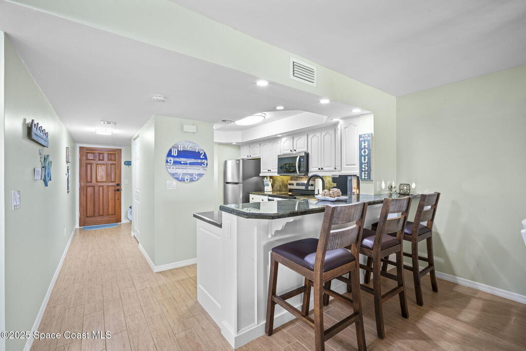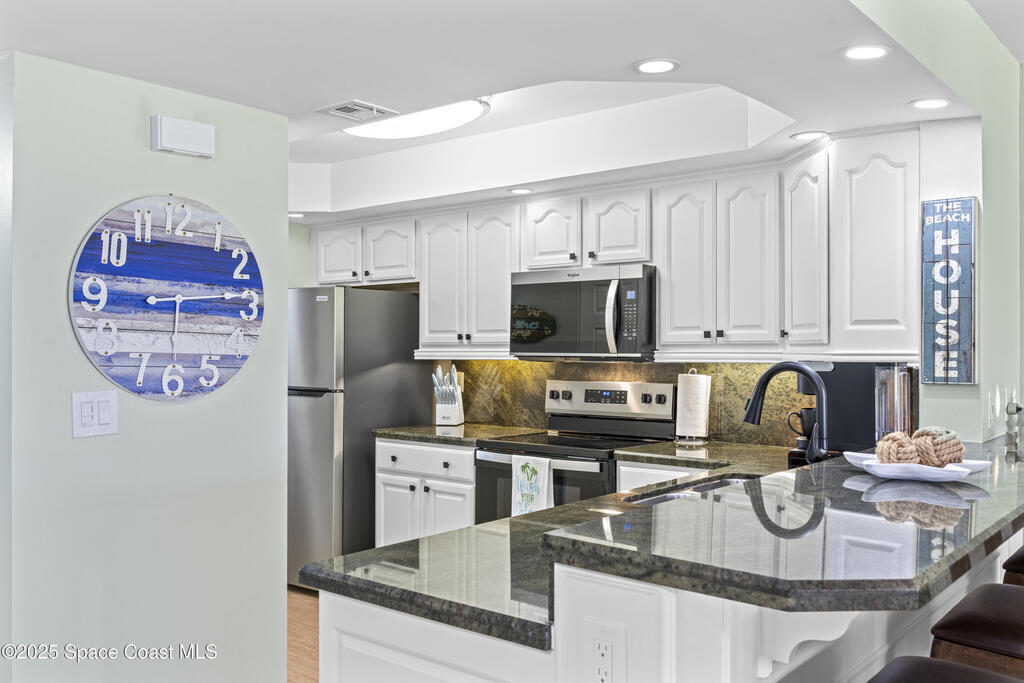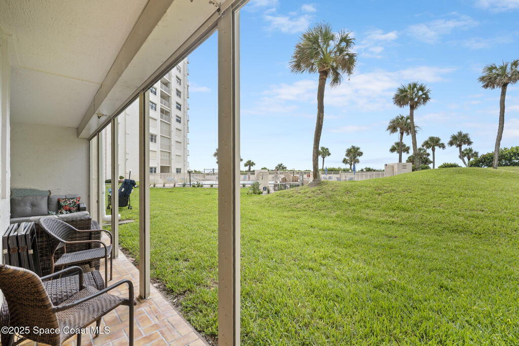 Fully Furnished & Updated! Live the oceanfront lifestyle in this ground-floor 2 bed, 2 bath condo in the highly desirable Stonewood Towers, a 24-hour gated beachfront community in Cocoa Beach. This updated unit features tile floors throughout, LED lighting, no popcorn ceilings, in-unit laundry, and an updated primary bathroom with walk-in shower and his & her closets. Enjoy a spacious private patio, granite countertops, modern fixtures, and secured, accessible beach access. Unit includes a semi-private garage and ample storage. Community amenities include: Direct beachfront access, ocean-facing pool, tennis & pickleball courts, putting green, shuffleboard, clubhouse, car wash, and oversized spa. All just minutes to downtown Cocoa Beach's shops, dining, and entertainment, and less than an hour to the Orlando International Airport - perfect for full-time living, a vacation escape, or investment property.