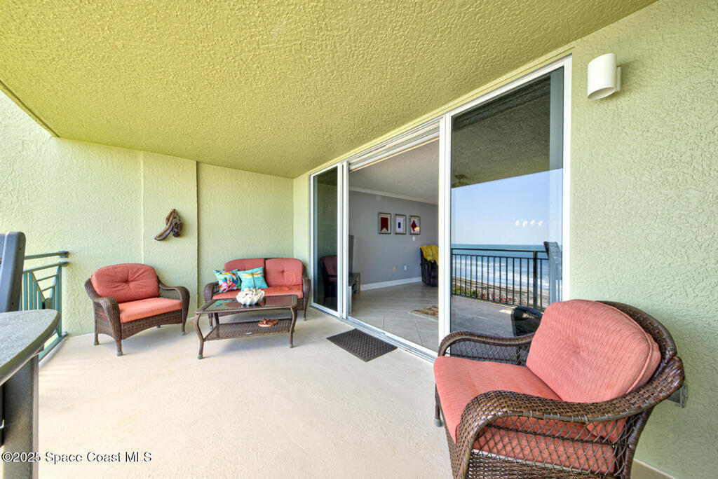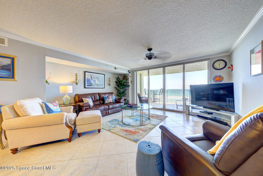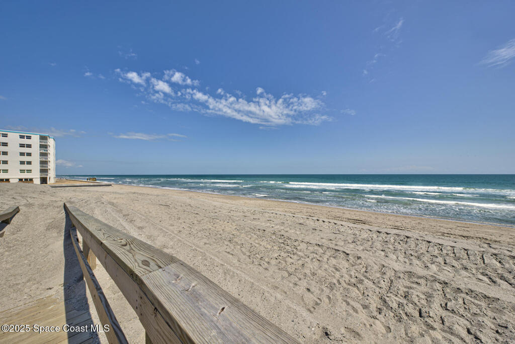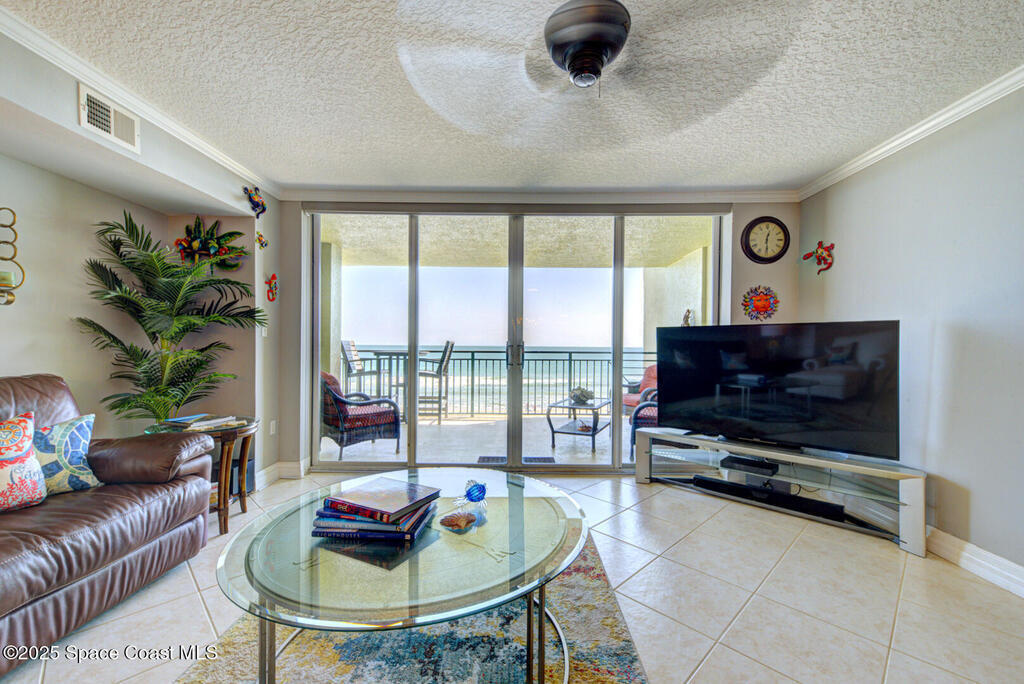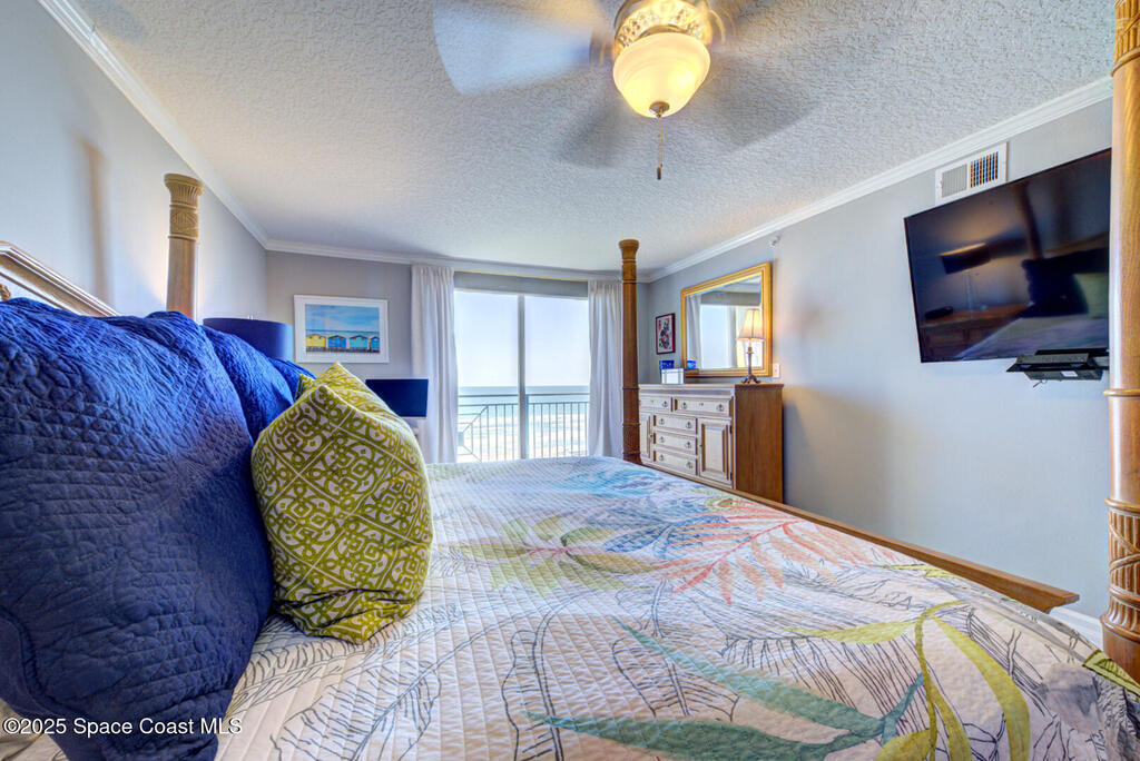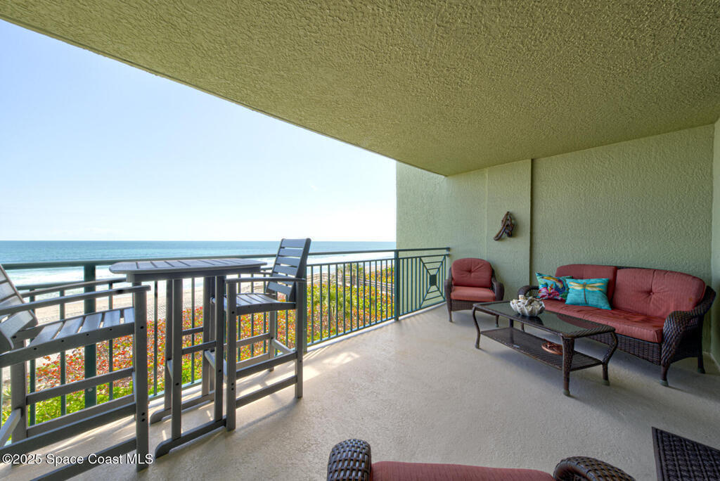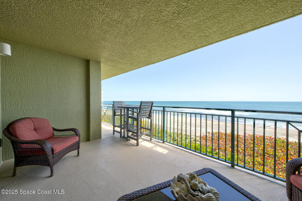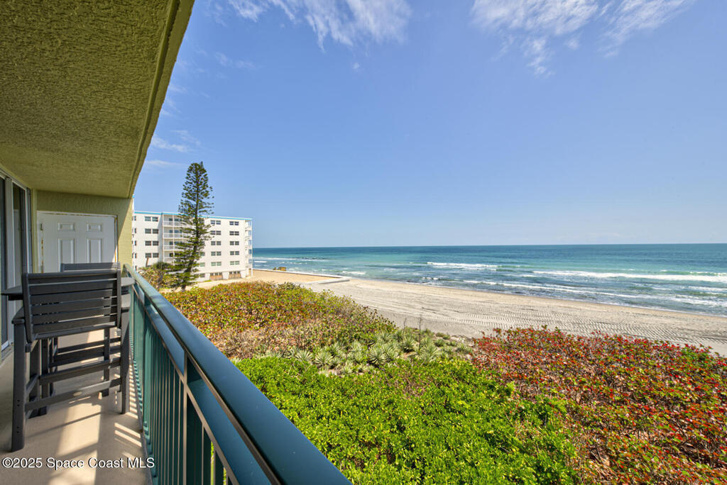 Experience the best of condominium living in Brevard County with this stunning oceanfront unit in Flores De La Playa. Boasting over 1856 square feet, this 3-bedroom, 2.5-bath condo combines ideal location, spacious design, and thoughtful upgrades. Enjoy breathtaking Atlantic Ocean views from your master bedroom and open living areas. The large floor plan features upgraded lighting, plantation shutters, crown molding, and 5-inch baseboards. The kitchen is perfect for entertaining, offering a generous bar area, new farm-style sink and faucets, walk-in pantry, new kitchen appliances, and ample cabinetry. The master suite includes his and hers walk-in closets, a luxurious bath with soaker tub, walk-in shower, double sinks, and vanity space. A split layout separates the master from guest rooms, one with a private bath and the other near the half bath. Additional features include a spacious laundry room with utility sink, 5-year-old HVAC system.