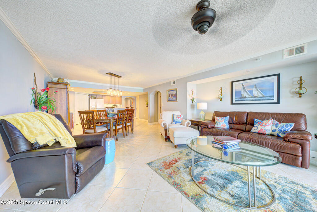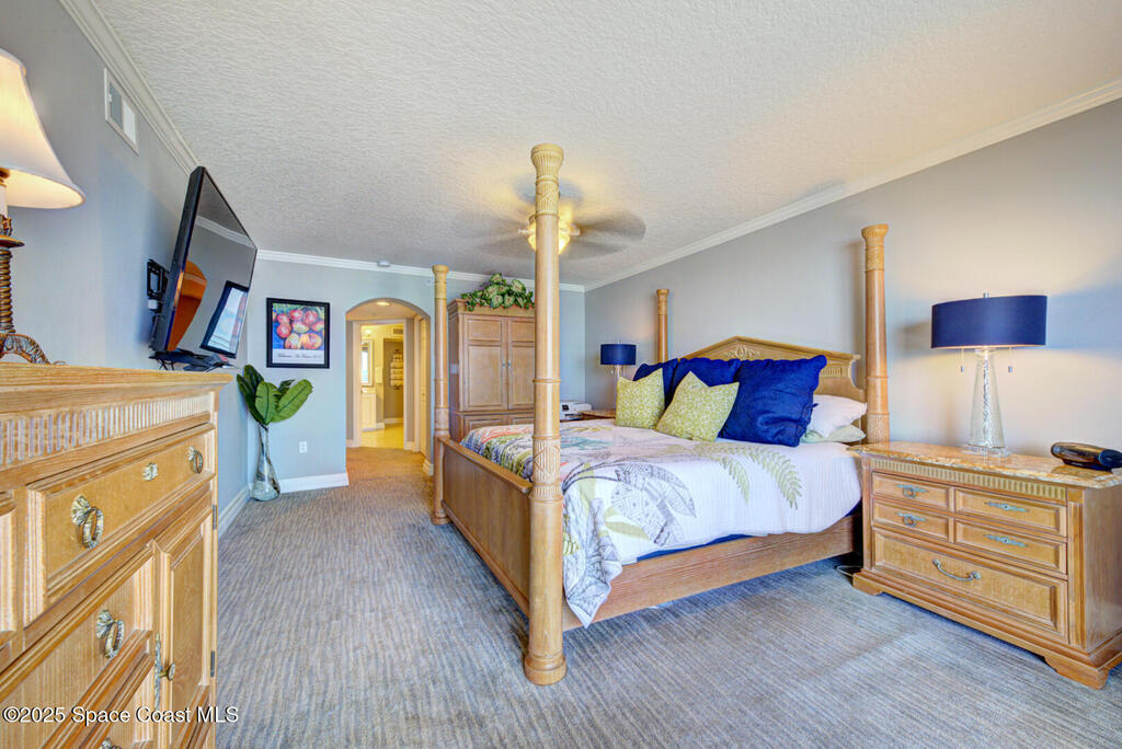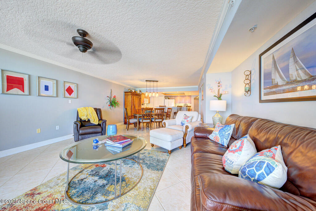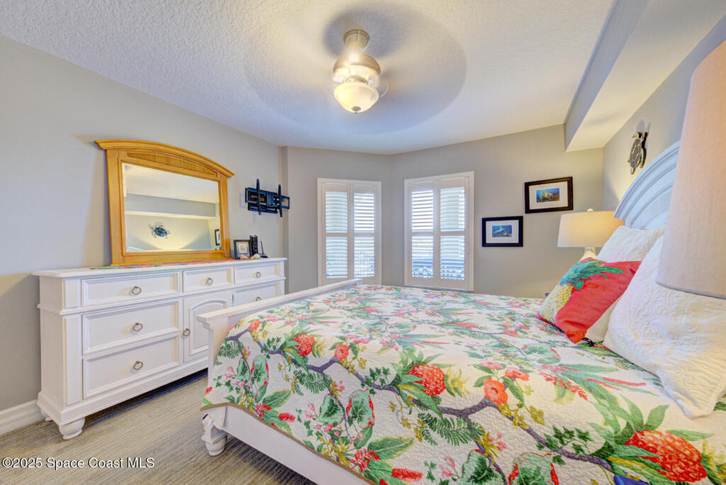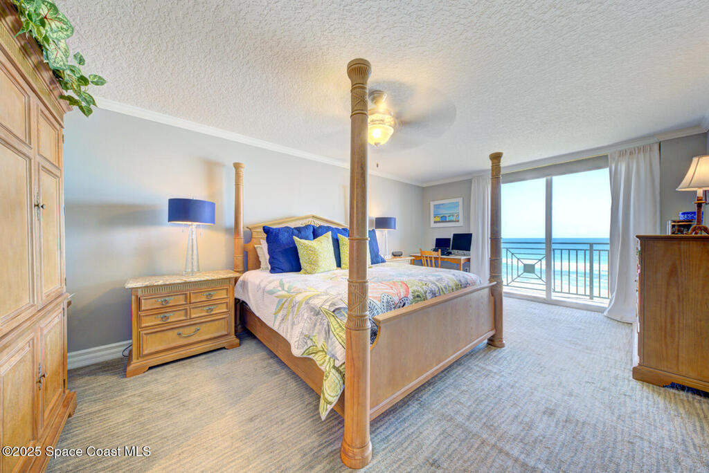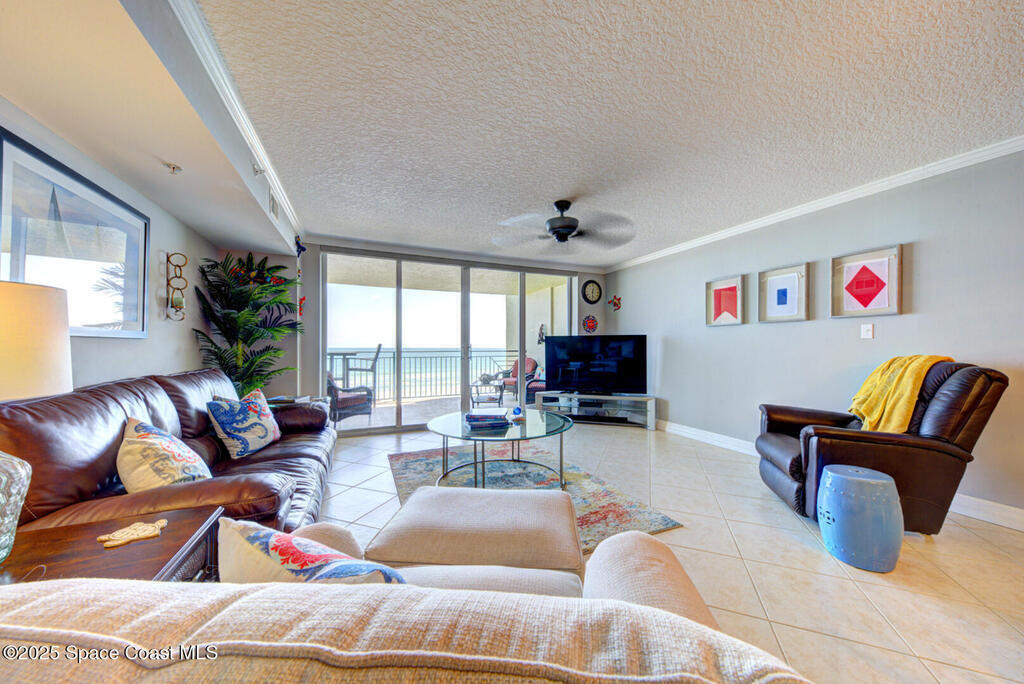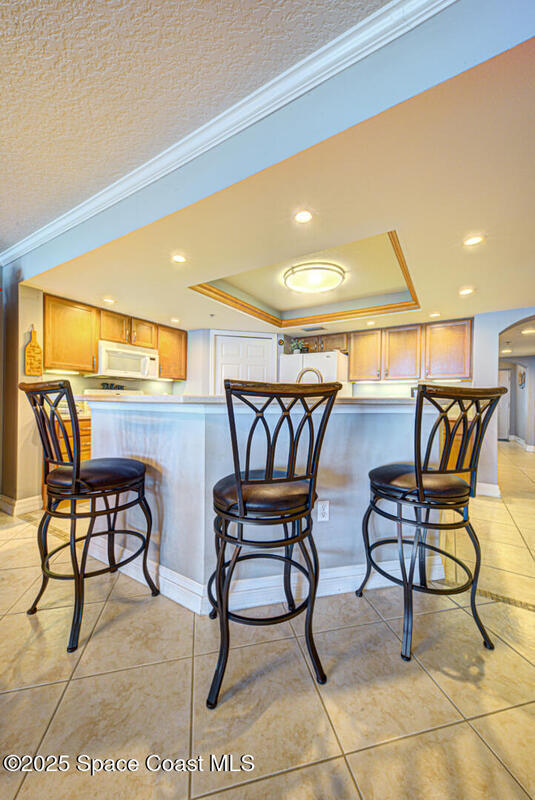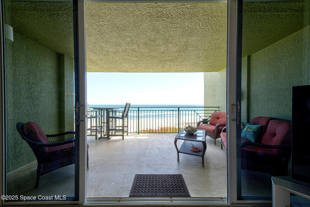 Experience the best of condominium living in Brevard County with this stunning oceanfront unit in Flores De La Playa. Boasting over 1856 square feet, this 3-bedroom, 2.5-bath condo combines ideal location, spacious design, and thoughtful upgrades. Enjoy breathtaking Atlantic Ocean views from your master bedroom and open living areas. The large floor plan features upgraded lighting, plantation shutters, crown molding, and 5-inch baseboards. The kitchen is perfect for entertaining, offering a generous bar area, new farm-style sink and faucets, walk-in pantry, new kitchen appliances, and ample cabinetry. The master suite includes his and hers walk-in closets, a luxurious bath with soaker tub, walk-in shower, double sinks, and vanity space. A split layout separates the master from guest rooms, one with a private bath and the other near the half bath. Additional features include a spacious laundry room with utility sink, 5-year-old HVAC system.