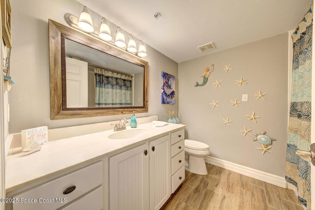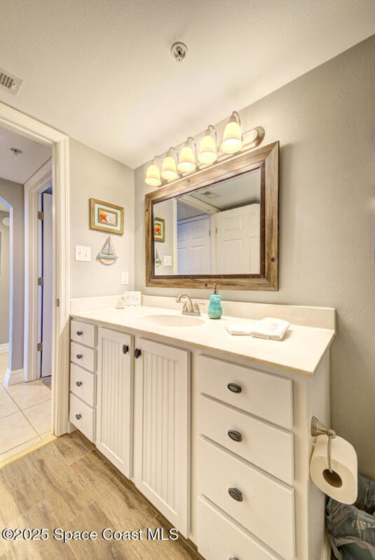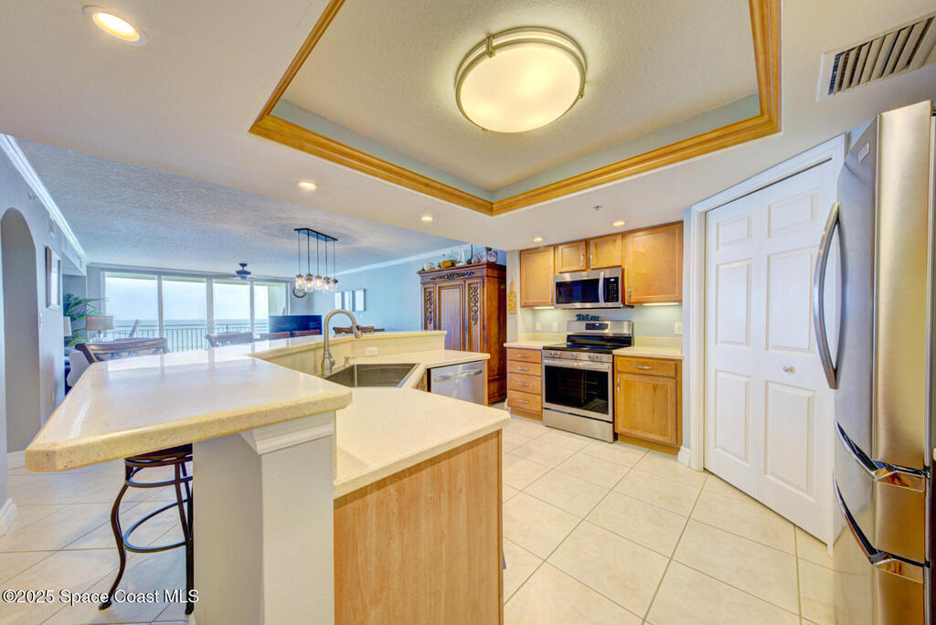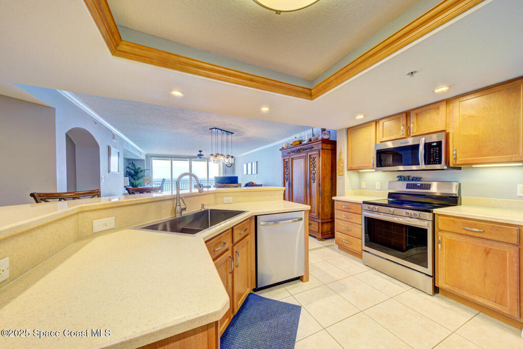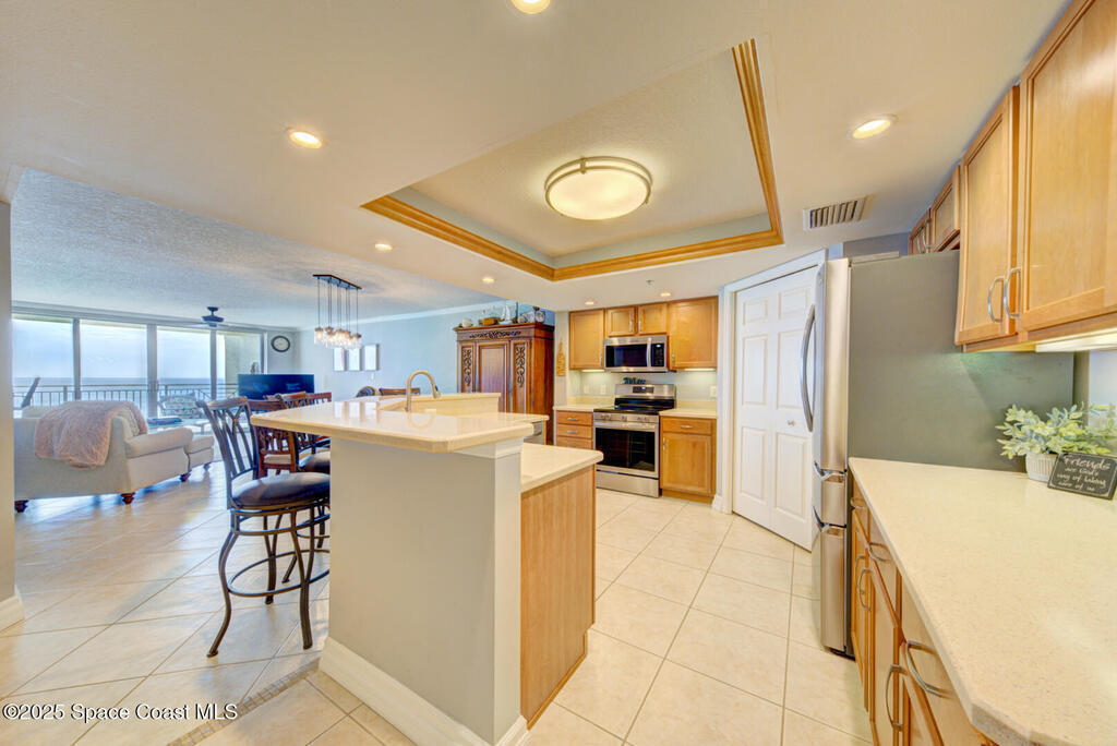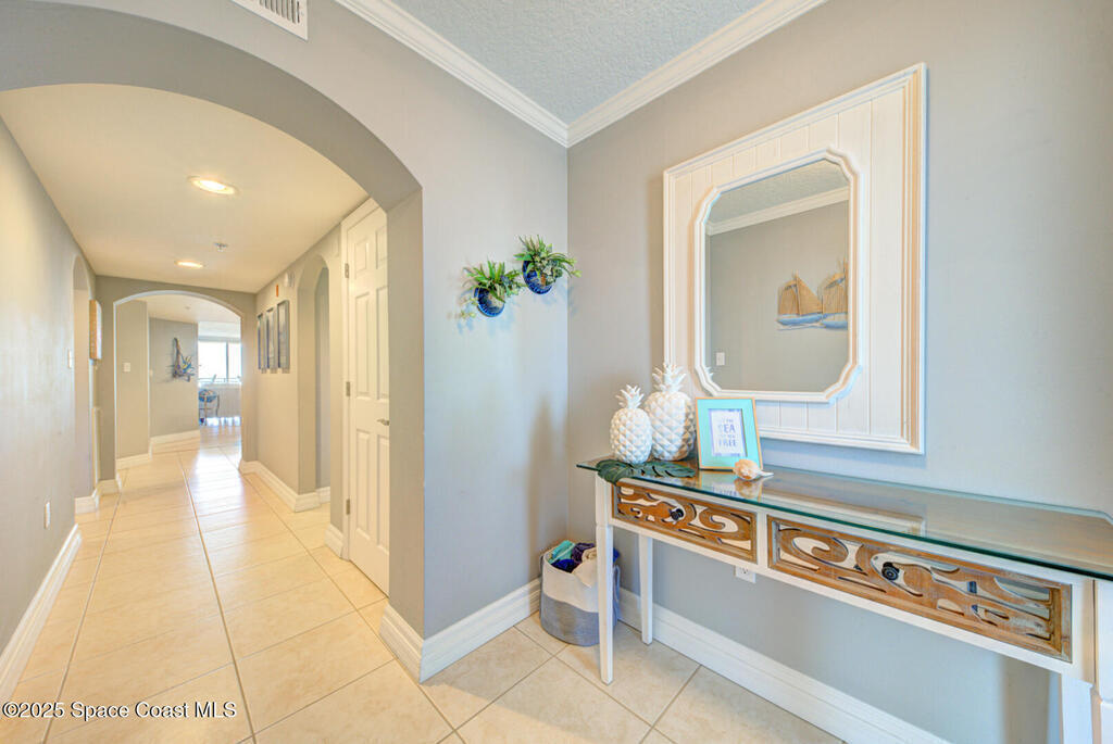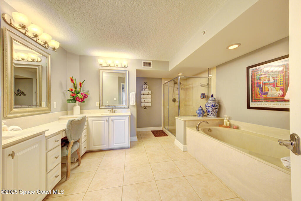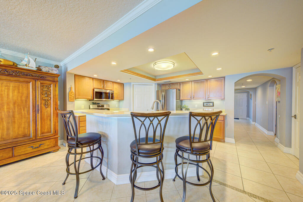 Experience the best of condominium living in Brevard County with this stunning oceanfront unit in Flores De La Playa. Boasting over 1856 square feet, this 3-bedroom, 2.5-bath condo combines ideal location, spacious design, and thoughtful upgrades. Enjoy breathtaking Atlantic Ocean views from your master bedroom and open living areas. The large floor plan features upgraded lighting, plantation shutters, crown molding, and 5-inch baseboards. The kitchen is perfect for entertaining, offering a generous bar area, new farm-style sink and faucets, walk-in pantry, new kitchen appliances, and ample cabinetry. The master suite includes his and hers walk-in closets, a luxurious bath with soaker tub, walk-in shower, double sinks, and vanity space. A split layout separates the master from guest rooms, one with a private bath and the other near the half bath. Additional features include a spacious laundry room with utility sink, 5-year-old HVAC system.