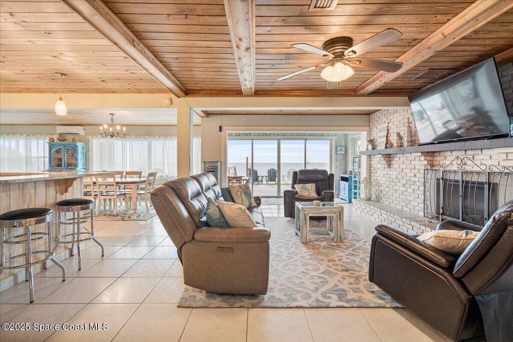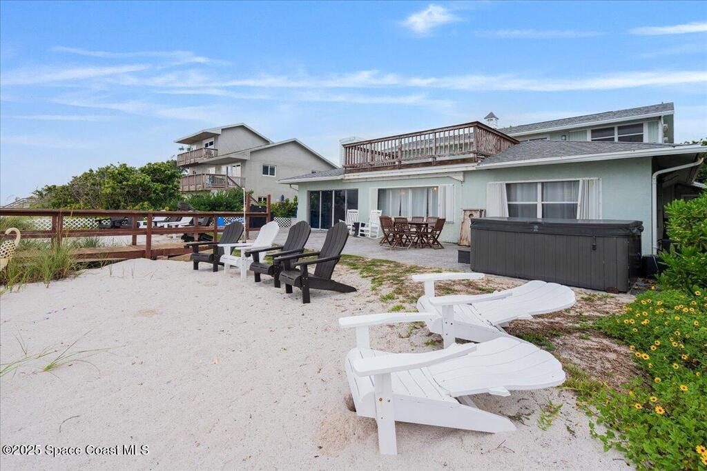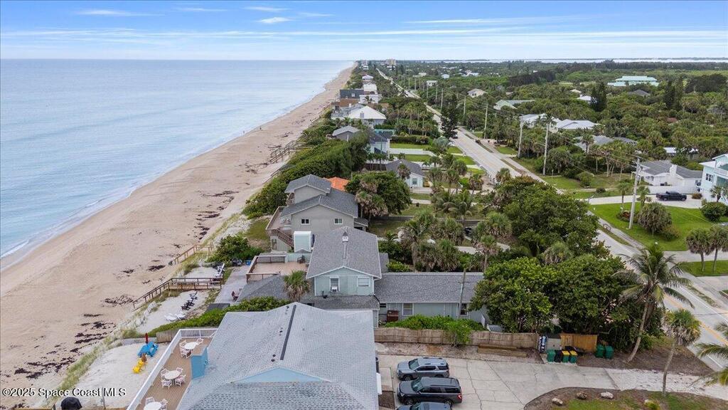 Timeless Coastal Charm Meets Oceanfront Living in Floridana Beach. Welcome to 6775 S Highway A1A, where Old World character meets the laid-back luxury of Melbourne Beach. Located in the heart of the beloved Floridana Beach community, this oversized New England-style cottage sits directly on the Atlantic Ocean and offers front-row views of the sunrise and surf. With nearly 4,000 square feet of living space, this oversized beachside retreat was designed for both entertaining and relaxing. The expansive ocean view deck easily seats over a dozen, making it perfect for unforgettable gatherings or quiet mornings listening to the waves. Inside, you'll find double master suites, one on the main floor and a second upstairs. The upper-level master is a spacious surprise, complete with a large updated bathroom featuring a soaking tub, walk-in shower, double vanity, and elegant Carrara marble tile. Every room and bedroom is equipped with its own mini-split A/C unit, ensuring personalized comfort