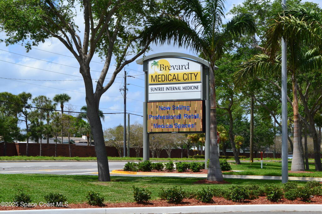 Medical/Professional/Retail office condominium Unit located in Brevard Medical City a upscale mixed use commercial/residential development located in the Suntree/Viera area of Brevard County, Florida. The main entrance has 35-foot Royal Palms lining the main entrance, a 6 1/2 acre Lake, a lighted jogging/walking sidewalk around the lake, charging stations for electric cars, three color LED signs along Wickham Road for business advertising. Four entrance points to the Property. The combination of senior housing, health care, and professional businesses already located here will complement your business. 6-Exams/Offices, Private Office, 2 Bath, Reception Ck in/Ck Out, Waiting Room, Work Area, Break Room, 2 Storage Closets. Owner Financing Available. Deed Restrictions in Place.