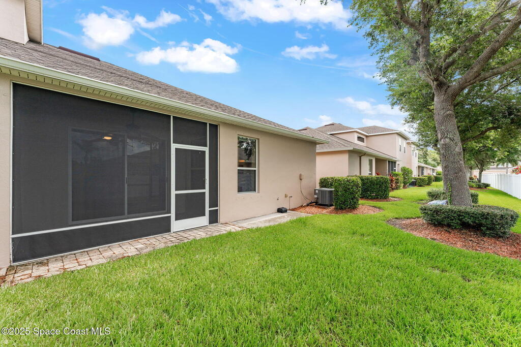 Vaulted ceilings & natural light set the tone in this move-in ready home featuring a spacious kitchen with natural wood cabinetry, raised breakfast bar, dual pantries & a charming dining nook. Durable tile & wood-look flooring flow through the main areas, while sliders connect the living room to a screened-in patio & fenced backyard--perfect for relaxing or letting pets play. The private primary suite offers soft natural light, backyard views, a walk-in closet & an en suite bath with solid-surface vanity & tiled shower. The guest bedroom offers versatility for work, visitors, or everyday living. Updates include a new A/C (2022), roof (2017), hot water heater (2021) & hurricane shutters for added peace of mind. Set within a secure gated neighborhood, residents enjoy a sparkling pool, spa, tennis courts, clubhouse, fitness center, scenic trails, shaded cabanas & RV/Boat parking--everything you need for relaxed, resort-style living just beyond your doorstep.