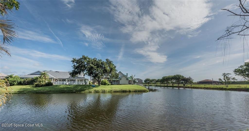 Winter Beach Secret nestled on a cul-de-sac, charming Cape Cod style home offers Florida living at its finest. Bring your 30' Boat-driveway park is allowed, Indian River boat ramp down the road. Paddleboard, canoe or fish from backyard or catch rocket launches from the front porch & airshows from the pool deck. Enjoy personal fruit trees-Mango/Avocado/Coconut/Banana/Cherry, Daily wildlife visits includes Otters/Ospreys/Turtles & more. Impact windows/doors. Gourmet kitchen: granite island, SS appliances. Light-filled living areas w/lake views. French doors to pool patio from primary & guest Bedrooms.
