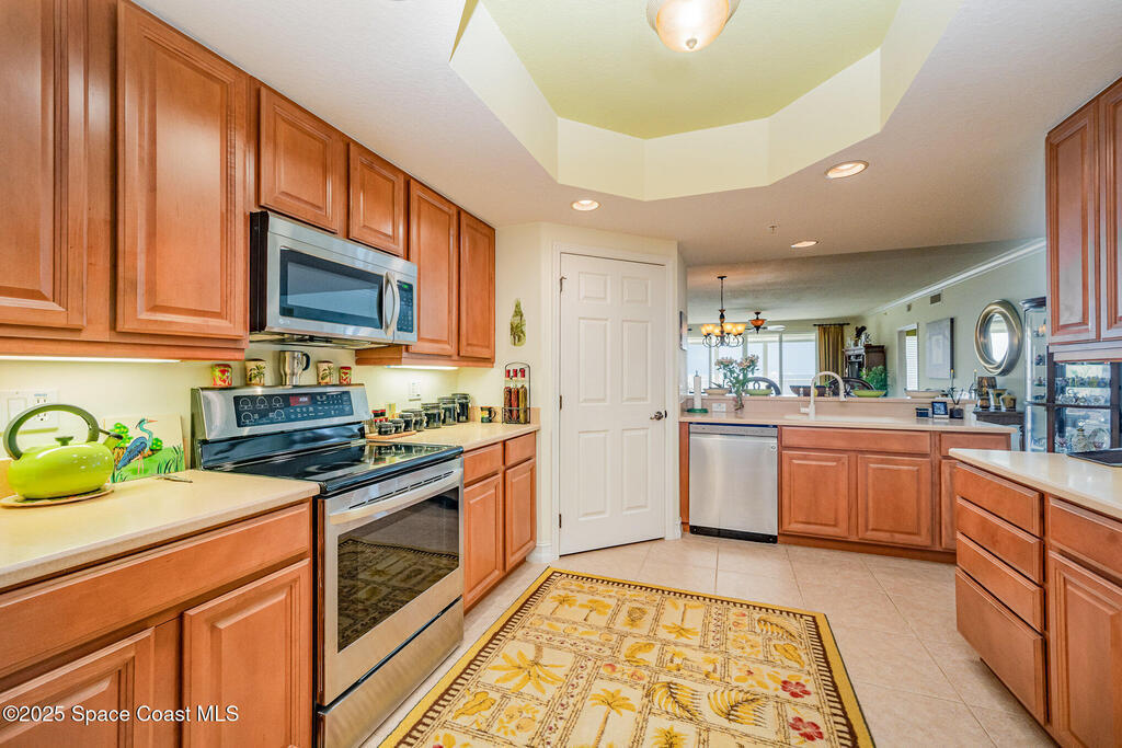 Florida SPACE COAST living at its finest! This condo sits in the PERFECT LOCATION has amazing riverfront views, in a private setting off main roads and within walking distance to downtown. This two bedroom two bath condo is truly turn key, This condo is professionaly decorated and comes FULLY FURNISHED, BUYERS CAN MOVE RIGHT IN! High end comforts in every room, newer appliances in kitchen and laundry rooms (2024), AC w/ infrared system (2024), silhouette shades in primary bedroom and living room adds elegance & privacy. Guest bedroom set up as an office but easily converts to a guest bedroom with modern built in Murphy Bed, spacious closets through out the unit for storage, separate laundry room with utility sink plus a private one car garage. Gated entrances, heated saltwater pool, hot tub, gym, dry sauna, tennis, and pickleball courts, clubhouse, private marina and social activities. Enjoy the next rocket launch from the BEST LOCATION your new condo