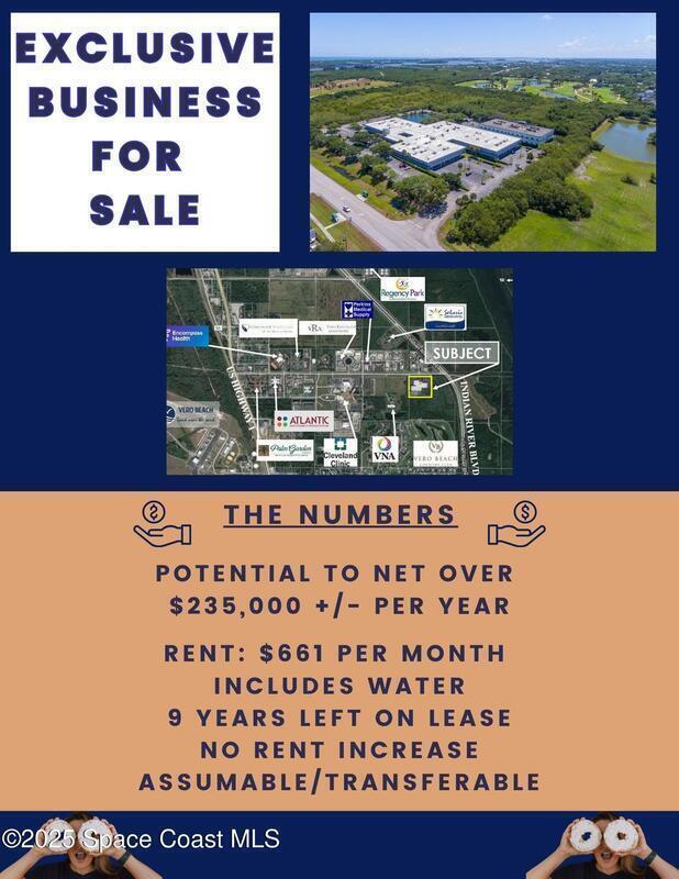 Exceptional opportunity to own one of Vero Beach's top bagel shops! This thriving business is located in a prime location & benefits from an average traffic count of 11,200 cars per day. Enjoy unbeatable value w/low overhead + unbelievable rental perks! 10th successful venture for its seasoned owner, boasting over 35 years of expertise as a premier bagel entrepreneur! CURRENTLY NETTING OVER $235,000 +/- A YEAR! NO franchise fee! Offered completely turnkey w/established & repeat clientele, recipes, & local contracts. New HVAC system w/warranty! Owner will finance. 1 YEAR OF FREE RENT + ALL INVENTORY WITH ACCEPTABLE OFFER. Don't miss this rare chance to acquire a proven, profitable gem!