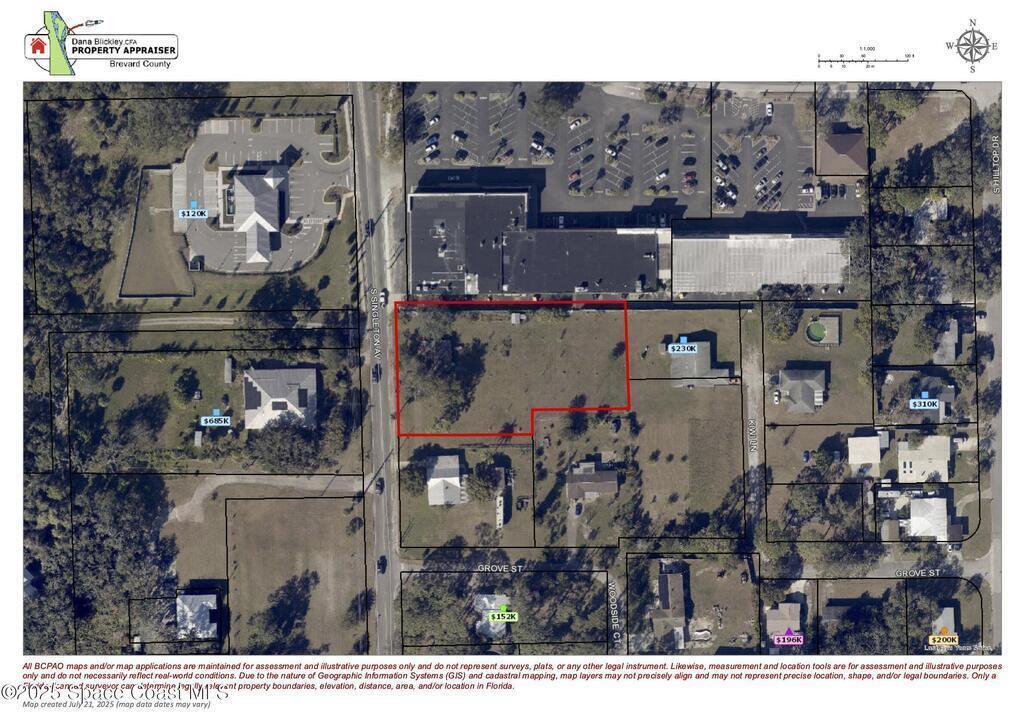 PRIME OPPORTUNITY ON 1.24 ACRES! This unique property offers a rare chance to own over an acre of land with excellent frontage and location. The existing home is warm and charming, surrounded by several fruit trees and plenty of open space. While the home adds character, the true value lies in the land and its future possibilities. Situated adjacent to commercial properties, this parcel may offer potential for rezoning.* Buyers interested in commercial use are encouraged to verify rezoning options directly with the City of Titusville. Whether you're looking to settle in, remodel, build, invest, or explore development opportunities, this property is full of promise! ** Fruit Trees: Avocado, Mango, Pomegranate, Guanabana, Limę, Guava