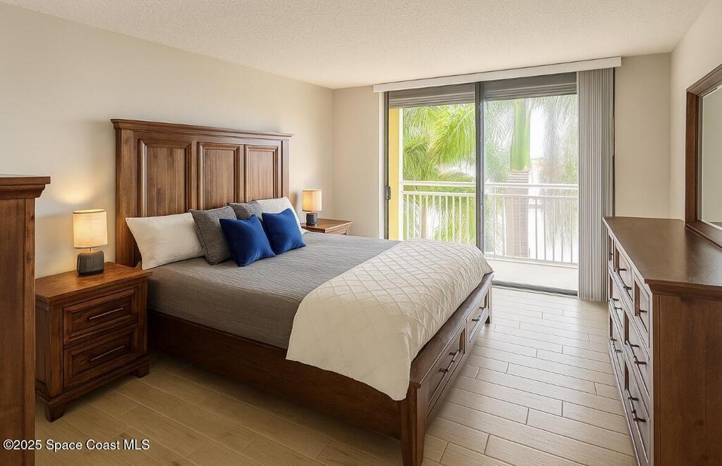 Priced to sell! Listed 50K below-Bright and breezy furnished corner unit at The Villager offers the best of coastal living with panoramic ocean views, a 400 sq. ft. wraparound balcony, the best view of rocket launches, sunrises, and sunsets. Fully turnkey this spacious 2/2 condo w/enclosed garage, open-concept, large primary suite, walk-in closet and large soaking tub. New Stainless and granite kitchen Guest bedroom w/sweeping ocean views. Full-time residence or an stress-free getaway, this unit delivers effortless luxury and convenience. Pet-friendly oceanfront community with resort-style amenities, includes largest pool on the beach, outdoor grills, party room w/ kitchen, pool table Over $1 million in Reserves, New Roof 2024, this well-maintained building offers peace of mind and long-term stability. HOA fee covers WATER, cable, internet, and building insurance, making ownership simple and predictable. Just steps from Publix and local shops. Maintenance free living. Bring Offers!