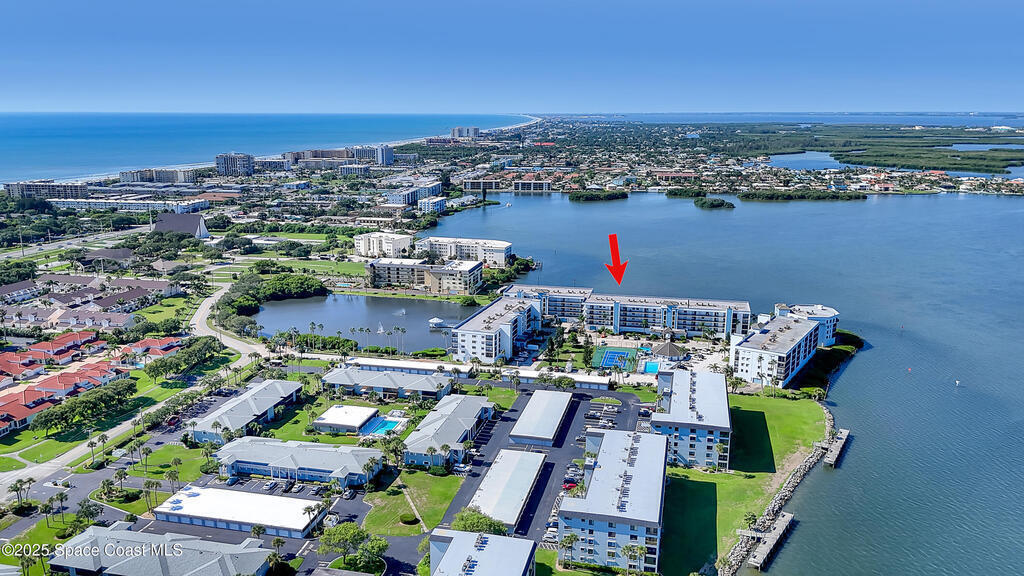 Beautiful Direct Riverfront Condo in the Heart of Cocoa Beach! Stunning 4th floor residence overlooking the Banana River. Spacious living and dining area with sliders that open to the balcony, perfect for enjoying breathtaking sunsets and watching dolphins swim The primary suite also features balcony access along with a spacious master bath and walk-in closet. The kitchen includes a breakfast bar, nook and in-unit laundry with washer and dryer. Hurricane shutters on all windows and balcony. Oversize 1 car garage under the building. Walk to the beach, shops and restaurants. Community amenities: clubhouse, fitness center, sauna, BBQ area, tennis/pickleball courts and vehicle wash area. Roof age 2017 and A/C age 2022. Milestone Inspection and SIRS report completed...NO Special Assessemnts. Schedule your showing today and enjoy waterfront living at its best!