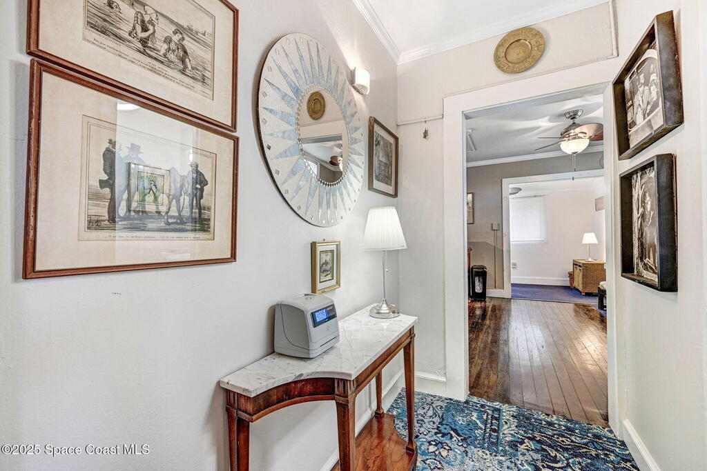 Own an exceptionally charming circa 1925 commercial bldg @ the Western Gateway to Historic Downtown Melbourne. Zoned C-1, live/work or mixed-use flexibility, this timeless property blends classic architectural character w/modern updates: (3) separate power meters for flexible tenant configurations, New electrical panels (2022), Upgraded upstairs plumbing (2023), Resurfaced parking lot & ramp (2019). Step inside & find beautifully preserved original hardwood floors, a welcoming fireplace, and 2 mini kitchenettes--one per level. The layout supports a wide range of uses, from boutique retail or professional office space to a creative studio or live/work setup. This two-story (no elevator) offers private rear parking, 8 spaces, a rare find in Downtown Melbourne, and a handicap-accessible ramp from the rear lot (easy entry). Lovingly maintained, this property preserves the warmth, character, and craftsmanship of the 1920s while offering the efficiency & convenience modern businesses expect.