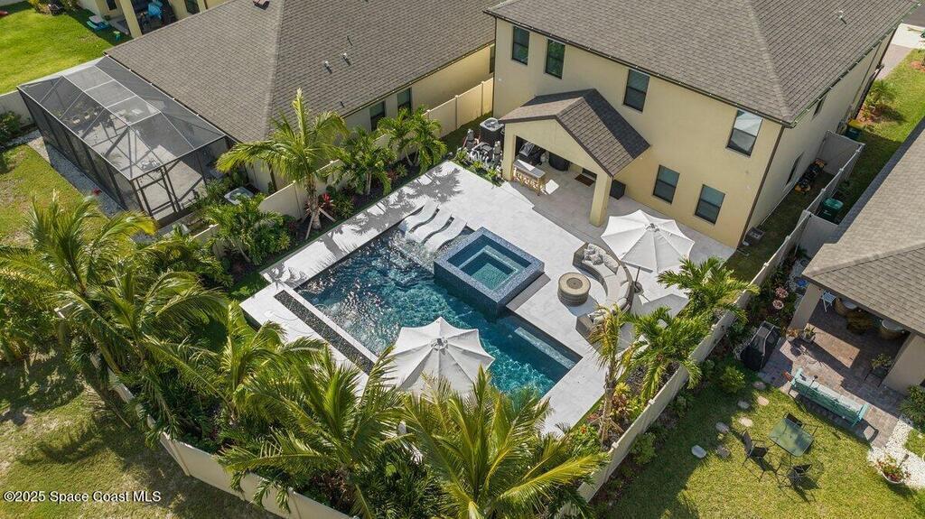 Receive $2k in closing costs from preferred lender! Motivated Seller! Your Private Resort Awaits - A Luxurious Pool Home in Sawgrass Lakes! Welcome to a home that redefines outdoor living. The true star of this property is the resort-style backyard oasis, meticulously designed to transport you to paradise year-round. Step into over 600 square feet of stunning Pebble and Glass-finished pool paired with a 60-square-foot spa. The expansive 1,600 square feet of sandblasted marble decking, combined with lush tropical landscaping, AstroTurf, surround sound, and custom lighting, creates an atmosphere of tranquility and sophistication--fully fenced for complete privacy. Inside, this 2,600+ sq ft home offers a spacious and thoughtfully designed layout, including formal living, dining, and family rooms, accented with upgraded light fixtures and stylish shiplap wall details.The upstairs primary suite features a large sitting/office area, a spa-inspired bath!