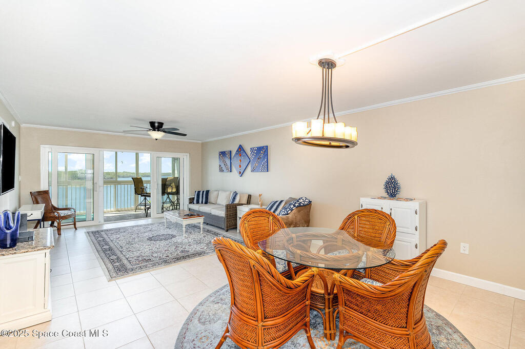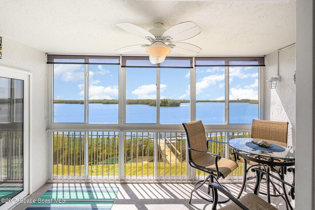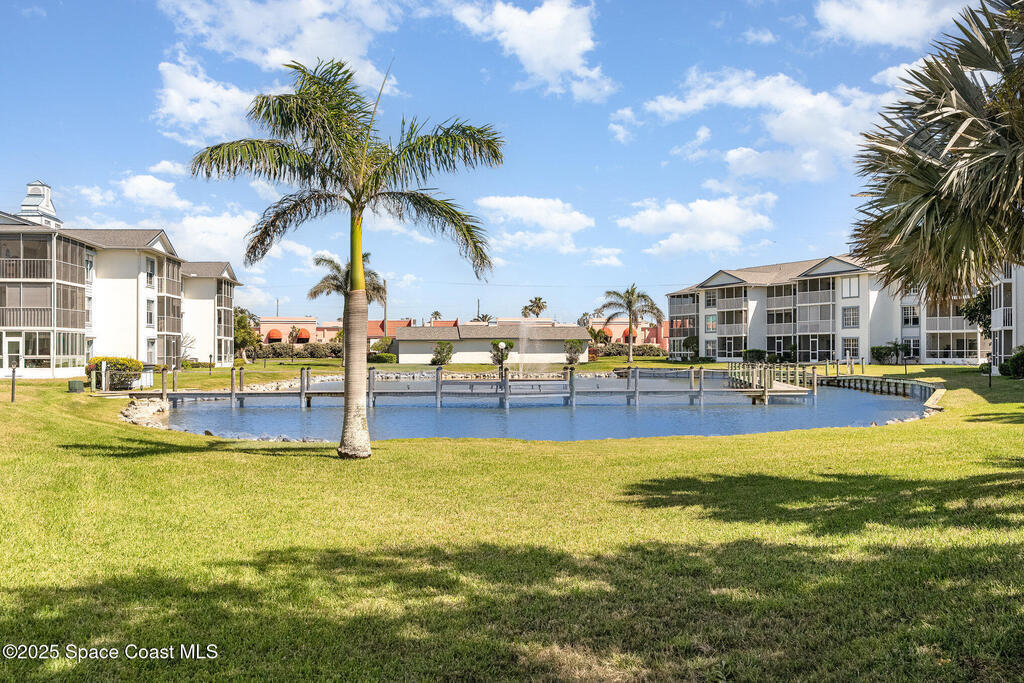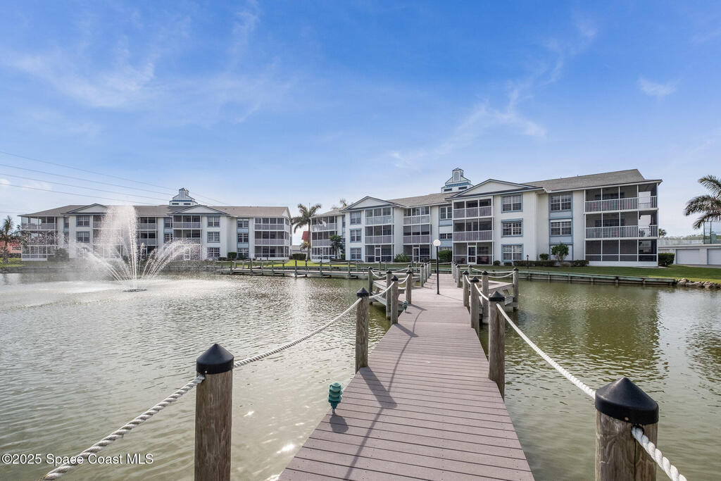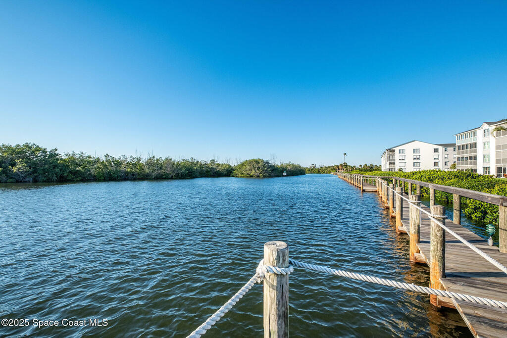 DIRECT WATERFRONT with a GREAT VIEW of The Thousand Islands Preserve. This totally remodeled FULLY FURNISHED condo is waiting for you! Watch dolphins & various species of wildlife and enjoy sunset on your rear balcony or catch the excitement of a Rocket Launch from your front balcony. This TASTEFULLY FURNISHED Condo features granite countertops, stainless appliances, UV Blinds, tile floors, Murphy bed, wetbar, and shows like a model home. As a vacation retreat or primary residence, your home is nestled in a quiet part of Cocoa Beach. Includes PREMIUM INTERNET, w? Disney +, Paramount + Hulu and more. In addition to your private garage you can store your boat or RV in the locked storage area. Amenities include 3 pools, sauna, fitness center, library, clubhouse, tennis, shuffleboard, pickle ball, & billiards. Conveniently located, it's a 5-Min walk to World Famous Cocoa Beach, only 15-MIn walk to downtown where you can enjoy entertainment,