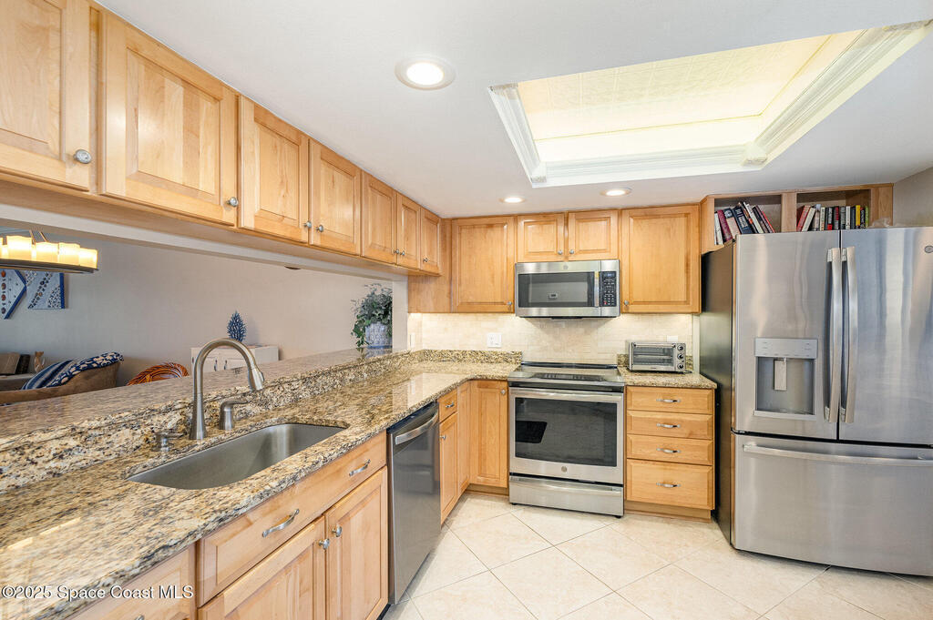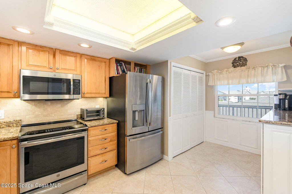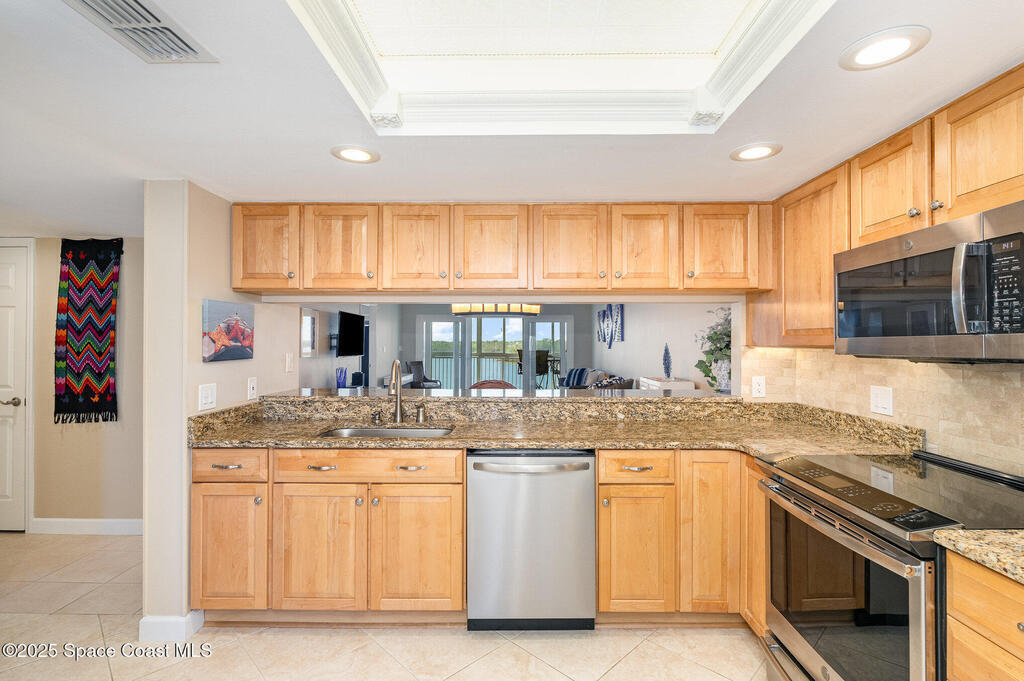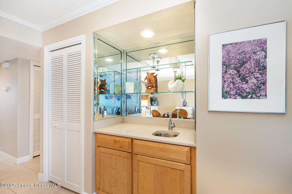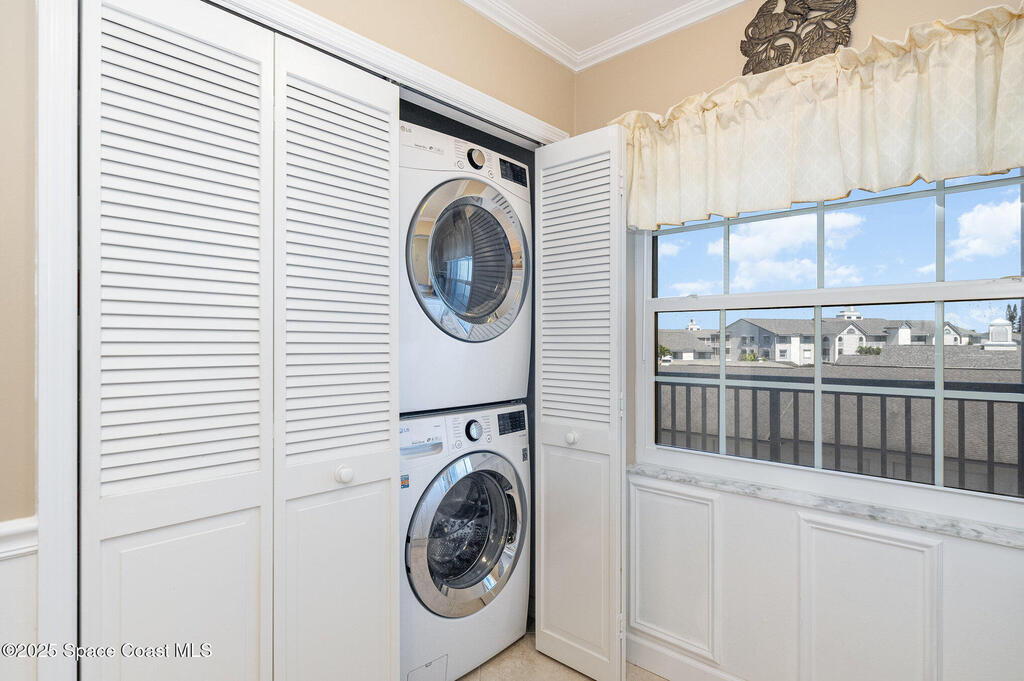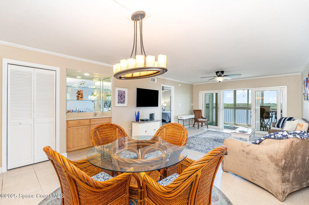 DIRECT WATERFRONT with a GREAT VIEW of The Thousand Islands Preserve. This totally remodeled FULLY FURNISHED condo is waiting for you! Watch dolphins & various species of wildlife and enjoy sunset on your rear balcony or catch the excitement of a Rocket Launch from your front balcony. This TASTEFULLY FURNISHED Condo features granite countertops, stainless appliances, UV Blinds, tile floors, Murphy bed, wetbar, and shows like a model home. As a vacation retreat or primary residence, your home is nestled in a quiet part of Cocoa Beach. Includes PREMIUM INTERNET, w? Disney +, Paramount + Hulu and more. In addition to your private garage you can store your boat or RV in the locked storage area. Amenities include 3 pools, sauna, fitness center, library, clubhouse, tennis, shuffleboard, pickle ball, & billiards. Conveniently located, it's a 5-Min walk to World Famous Cocoa Beach, only 15-MIn walk to downtown where you can enjoy entertainment,