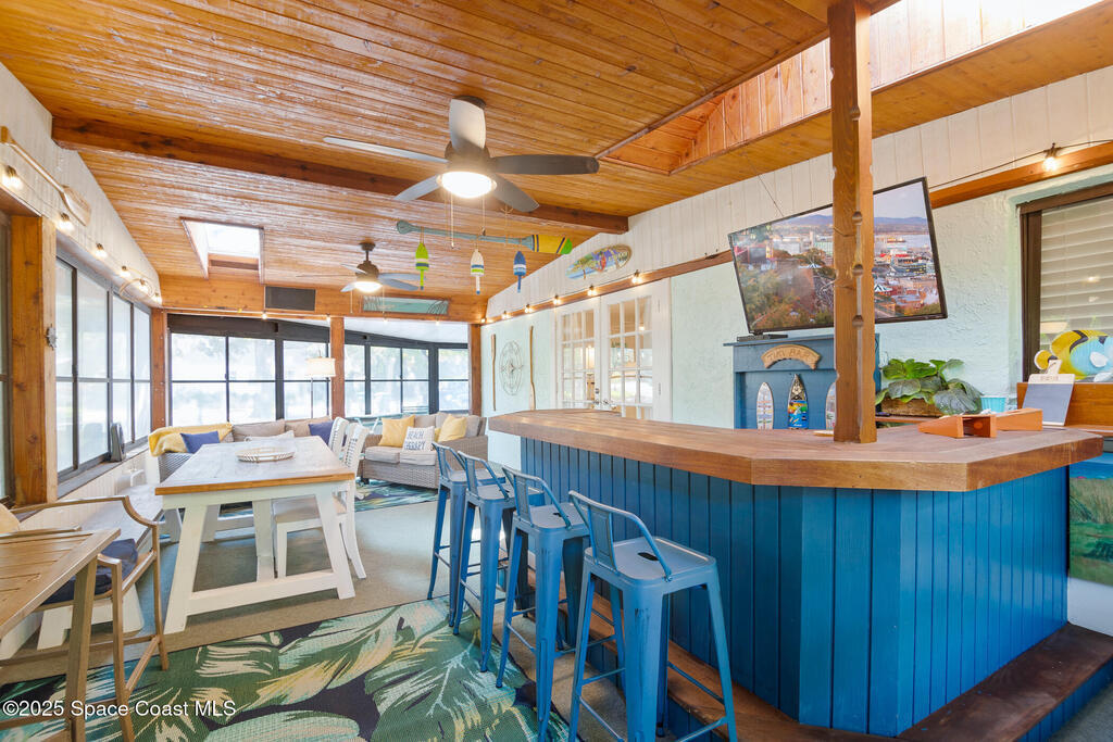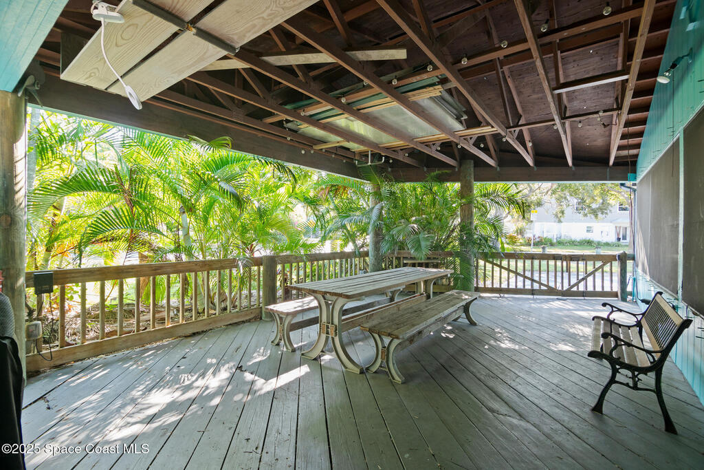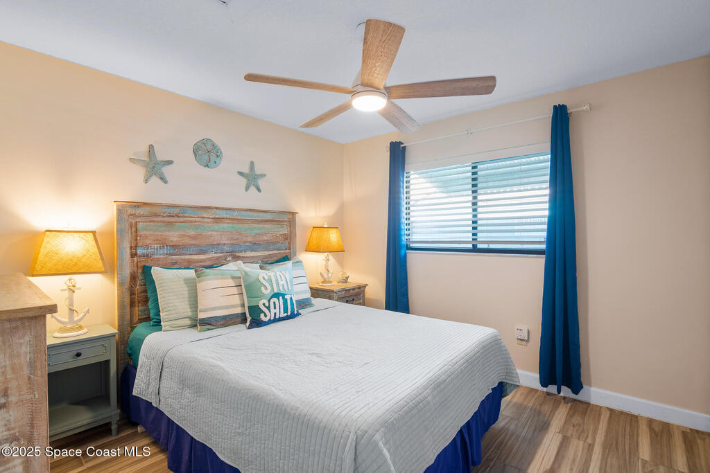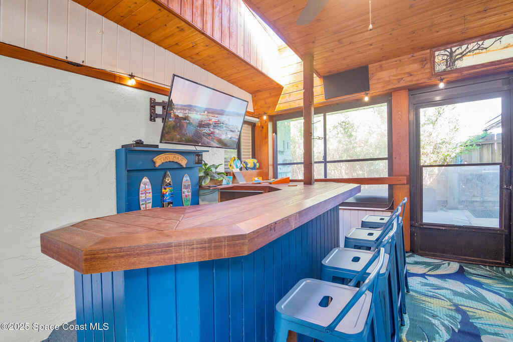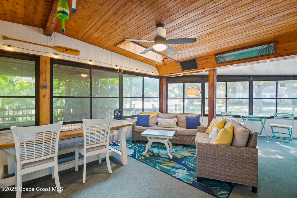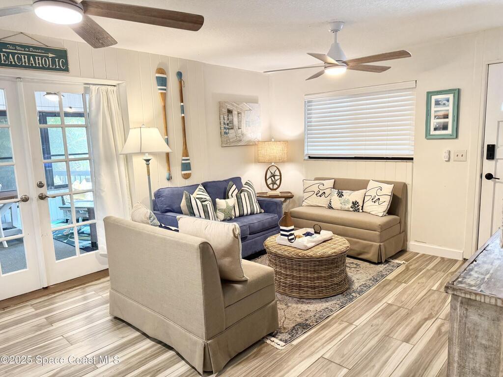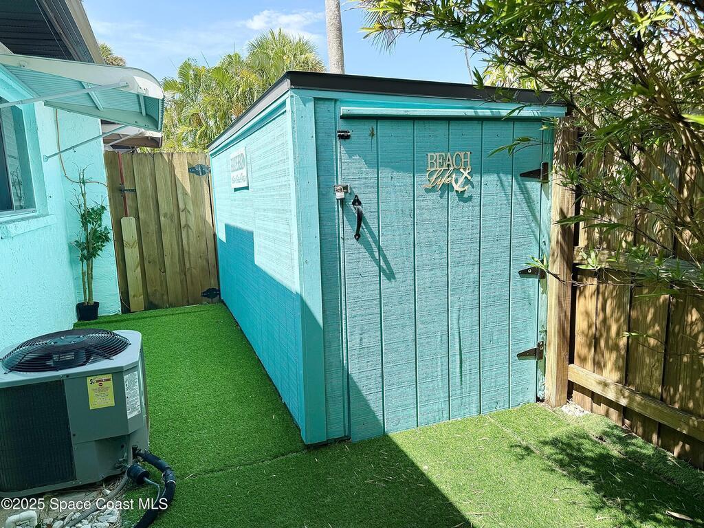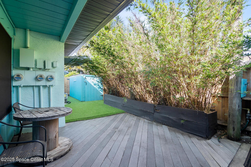 Welcome to your perfect beach getaway! This beautifully furnished 2-bedroom, 1-bath townhome is ideally located on a double lot, just a block and a half from the beach and a short drive to Port Canaveral, making it the ultimate Coastal Retreat. Inside, you'll find a bright and open living and dining area that flows seamlessly into a fully equipped kitchen--perfect for home-cooked meals or entertaining after a day at the beach. Both bedrooms are thoughtfully furnished for comfort, with everything you need to settle in and enjoy your stay.But the real showstopper is the outdoor space. Whether you're enjoying a drink at the outdoor bar, relaxing on the screened-in wraparound porch, or lounging in one of the multiple seating areas, you'll love the laid-back coastal vibe. There's even two storage sheds and an outdoor shower.No HOA or rental restrictions makes it ideal, whether you're looking to purchase a vacation home or a full time residence. It's a unique, must-see property.