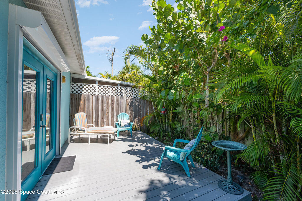 NEW PRICE! Use as a primary residence, investment to produce income or as a vacation home to get away from the snow. Tropical WEEKLY rental gem or have your own get-away! Currently top-rated on a leading vacation site, Cape Canaveral. Can be turnkey, fully furnished (negotiable) 2-bed, 2-bath unit with own private Garage. Enjoy coastal living! Bike or walk a few blocks to the beach! This excellent beachside 1/2 Duplex used as Single-family home could also be great investment property (weekly rentals permitted) or your new coastal retreat! NO HOA. Built new in 2005. FURNISHINGS NEGOTIABLE. Newer Roof (2021) Fresh coastal-paint (2025) Newer AC (2022) Newer Water Heater (2021) Newer vinyl decks on side and back patio (2021) Low maintenance ''Turf Lawn'' behind fences on side yard and back yard. Easy access to Port, A1A, restaurants and Beach! Close to Rivers, Ocean & quick drive to Orlando!!