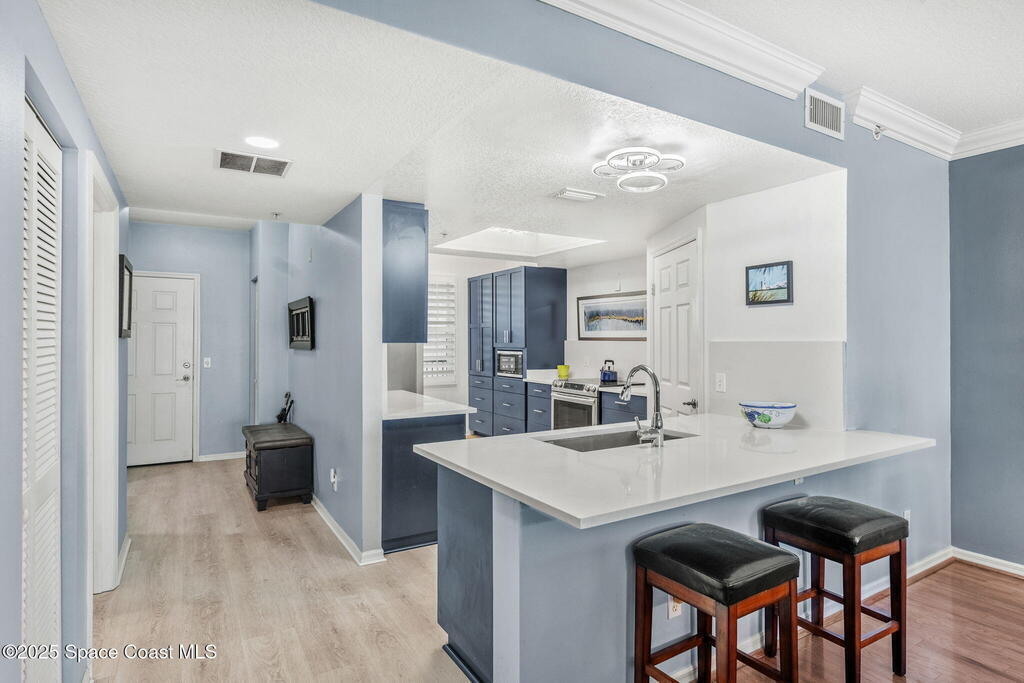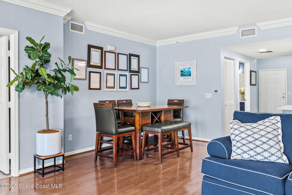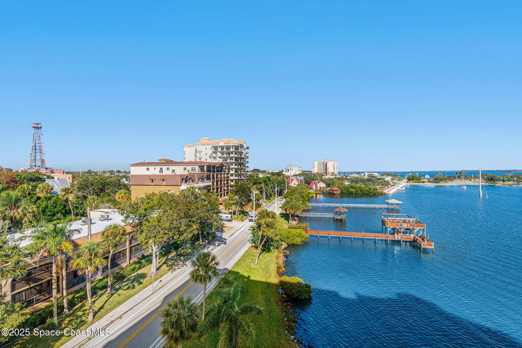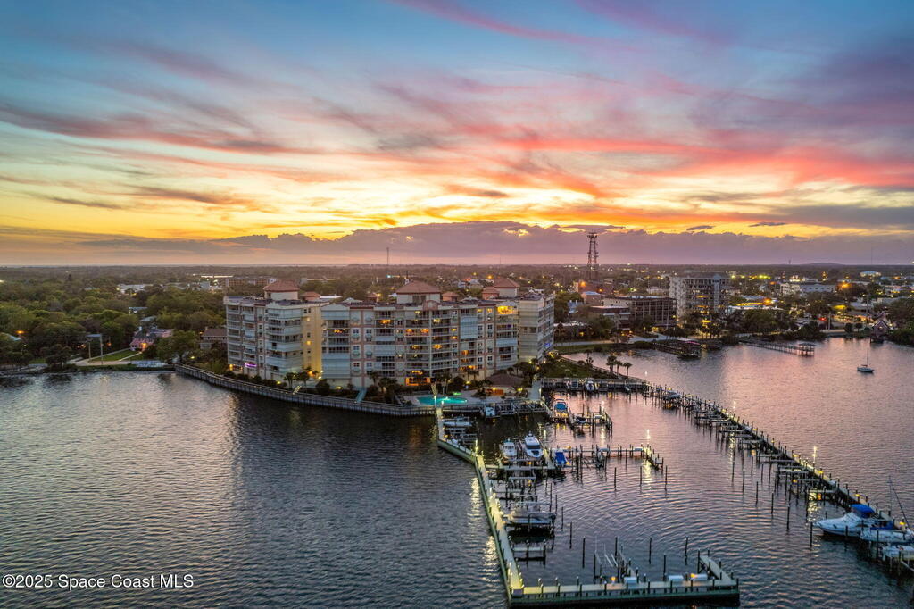 Resort-Style living awaits in the sought-after riverfront community of Oleander Pointe in Historic Cocoa Village! Renovated from top to bottom, this 4th-floor 2BD/2BA condo offers DIRECT north-facing water views- perfectly positioned to enjoy spectacular 4th of July fireworks & year-round rocket launches from your private, newly tiled balcony. Recent $30K in renovations w/ quality finishes, including custom cabinetry & quartz countertops in both the kitchen & bathrooms, as well as hardwood & LVP flooring throughout--no carpet! The spacious primary suite offers a walk-in closet & updated en-suite bath. The Roll-down hurricane shutters provide peace of mind. Enjoy secure lobby entry & an impressive list of amenities: heated pool, spa, sauna, fitness center, tennis courts, pickleball, clubhouse & more! Pet-friendly (2 pets, 35 lb max). Steps from Cocoa Village, known for its vibrant shops, restaurants, concerts & community events- plus, only a short drive to Cocoa Beach!