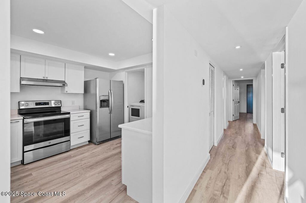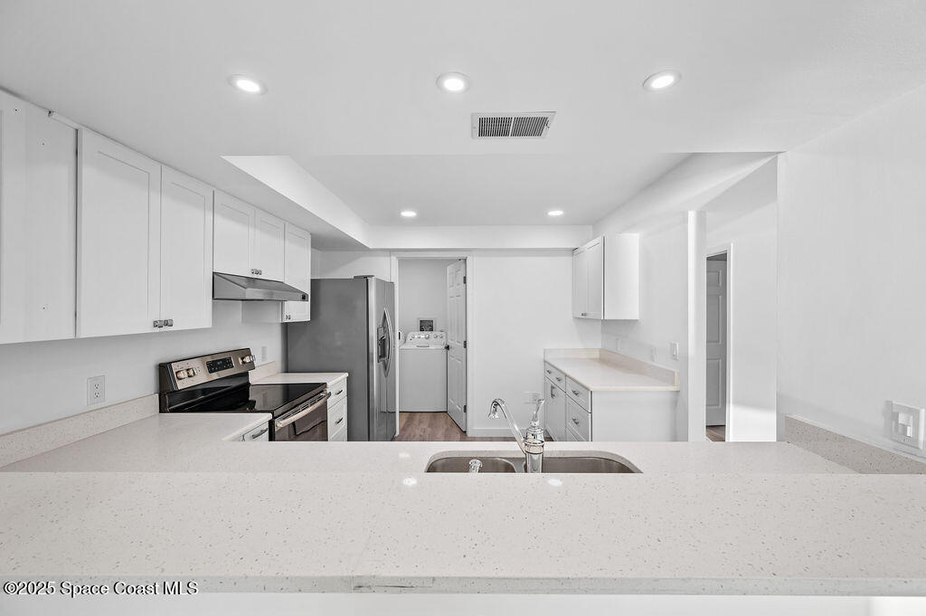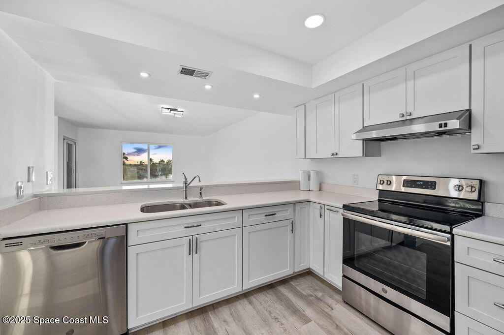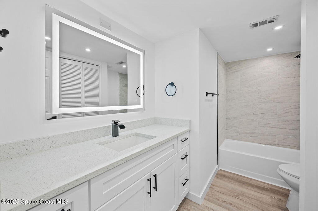 JUST RENOVATED & MOVE-IN READY | STUNNING 3 BED, 2 BATH COCOA BEACH CONDOMilestone & SIRS Complete - Fully Paid!!Experience coastal luxury in this end-unit --freshly remodeled from top to bottom with designer finishes and panoramic water views.Wake up to sunrise over the Atlantic and wind down with sunsets over the Banana River, all from your wraparound balcony!light-filled condo features new hurricane-impact windows/doors, a modern open kitchen with quartz counters, shaker cabinets and stainless appliances.Spacious living area, luxe primary suite with private balcony & walk-in closet.LVP flooring, new doors, lighting, fans, and more..Laundry room, 1-car garage & storage. Resort-style amenities: pool, hot tub, tennis, dock & more. Steps to beach, dining & shops!!