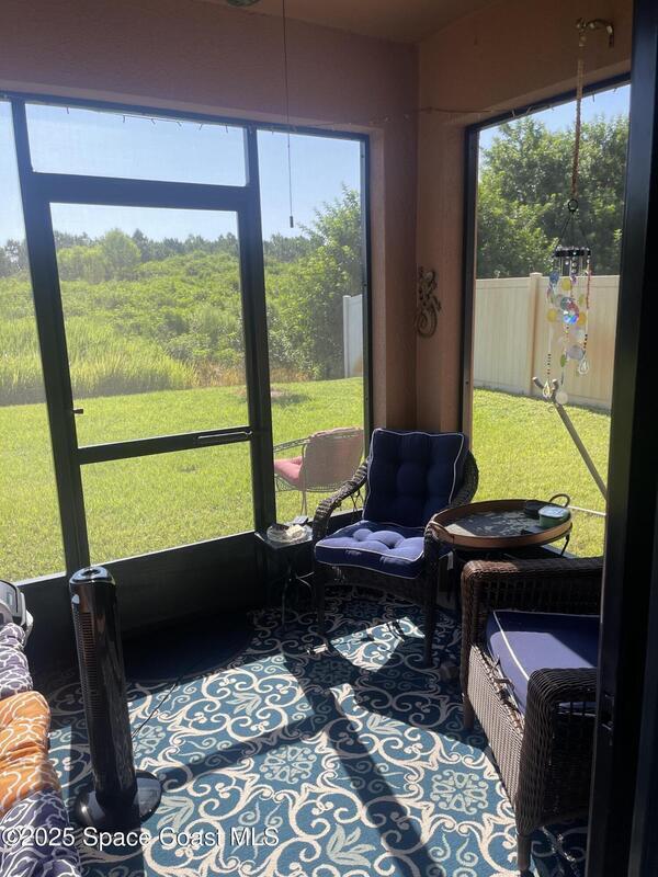 Available now, this beautifully maintained 4-bedroom, 2-bathroom home offers 1,916 square feet of comfortable living space in the gated community of Bayside Lakes in Palm Bay. Designed for both functionality and style, the home features a spacious, open floor plan with an extended living area and a bright family room connected to the modern kitchen. The kitchen is equipped with upgraded stainless steel appliances, granite countertops, and cabinetry with crown molding. Ceramic tile flows through the main living areas, with cozy carpeted bedrooms. Step outside to a covered lanai offering peaceful views of the canal and added privacy. The home includes a 2-car garage and is situated on a lot with no rear neighbors. Community amenities include a future pool, cabana, and tot lot, along with access to the Bayside Lakes clubhouse and amenities. Partially furnished and located near parks, shopping, and dining, this home combines comfort, convenience, and security in a sought-after neigh
