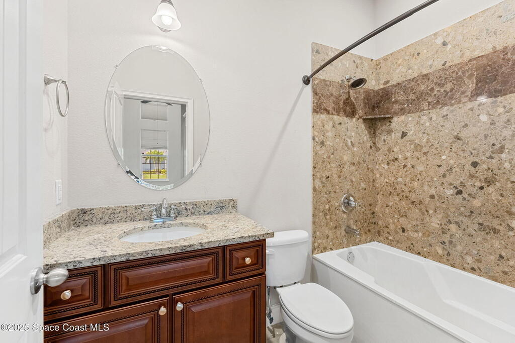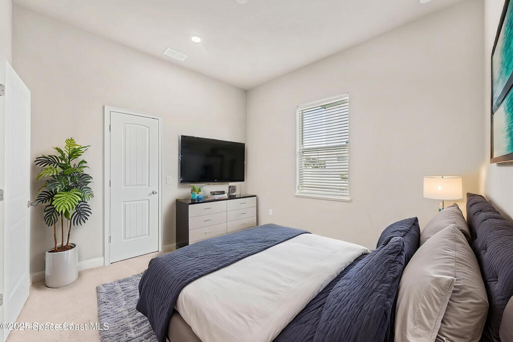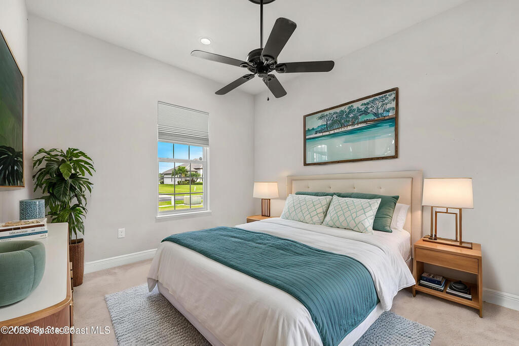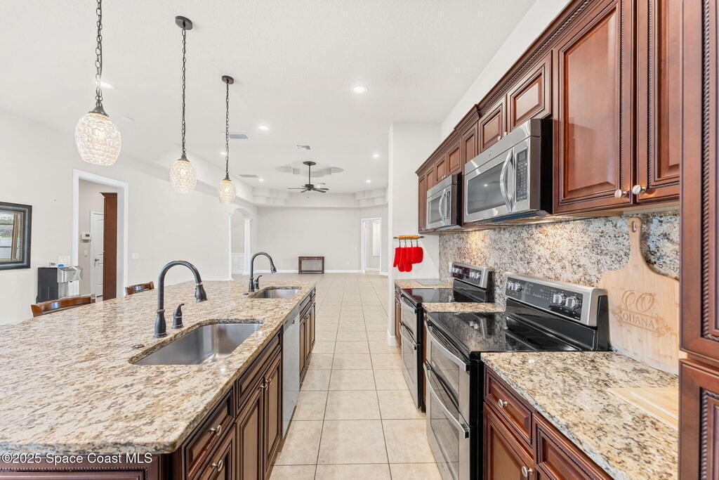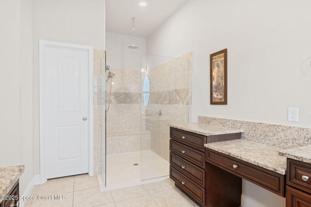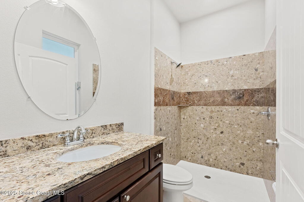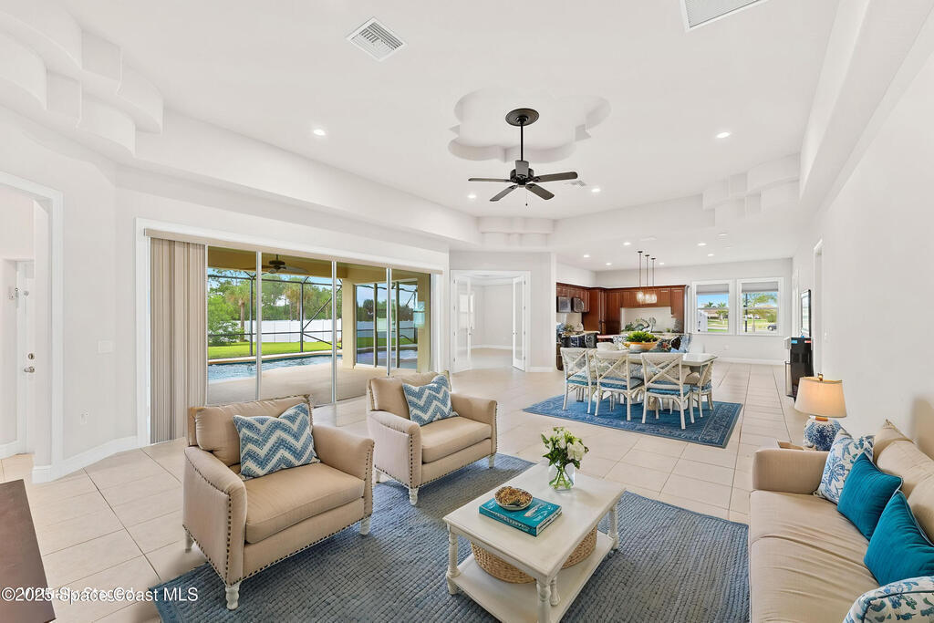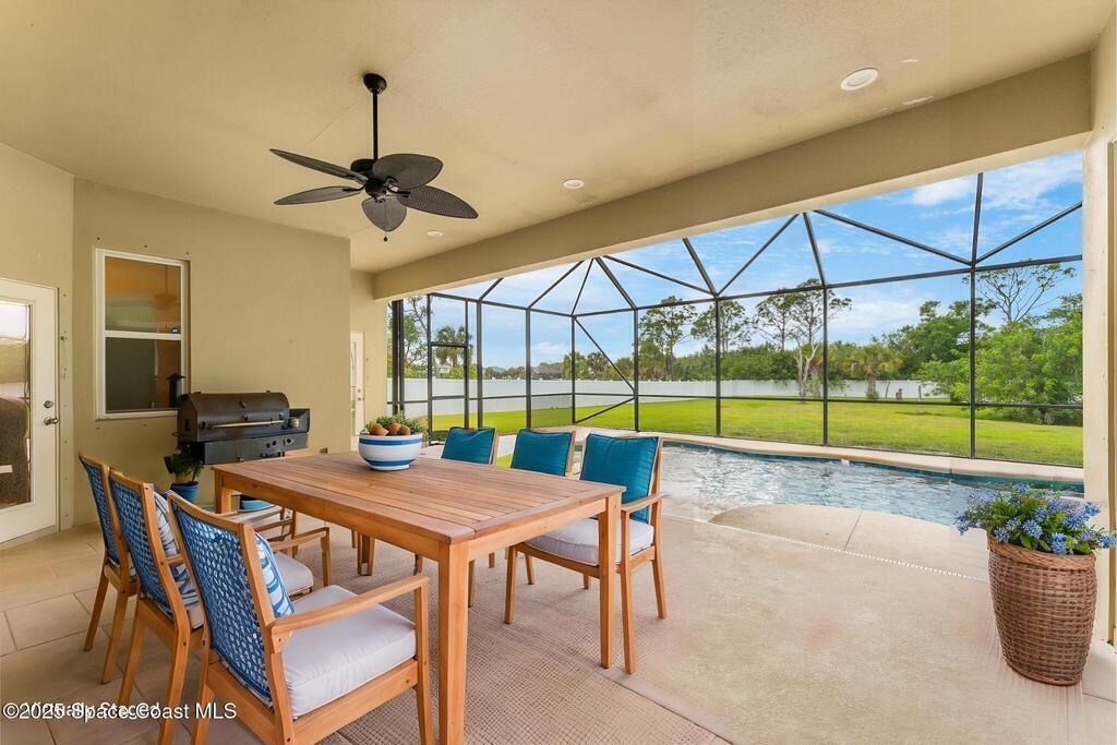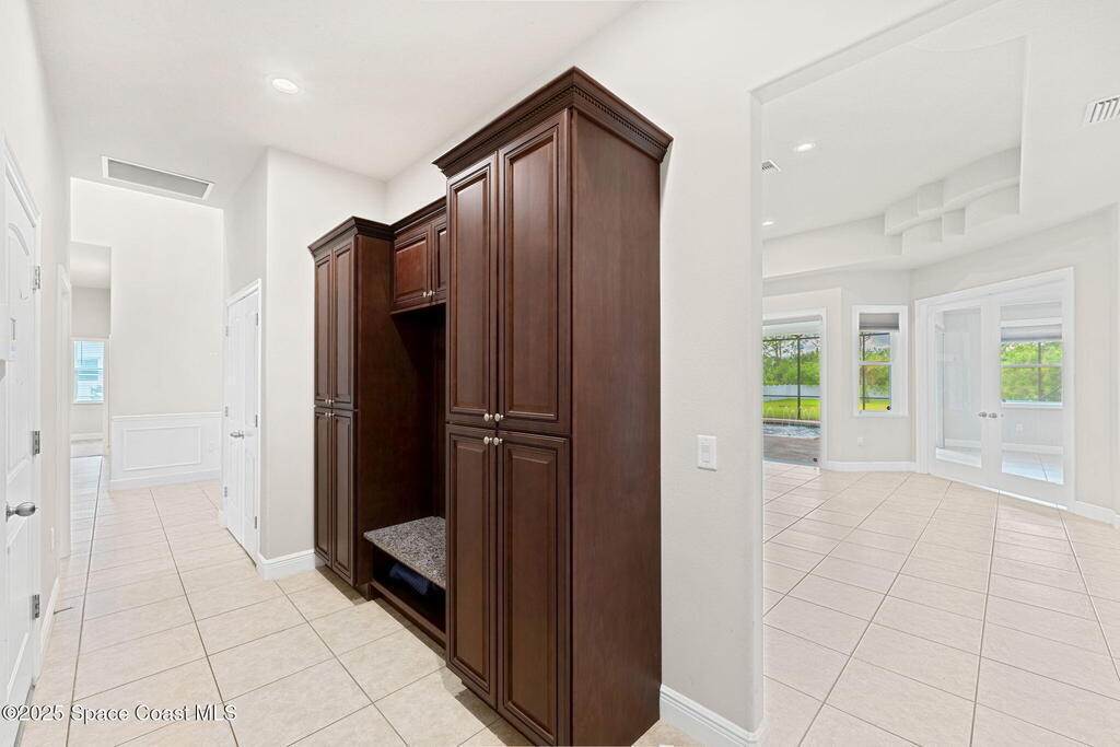 Stunning newer construction 4BR/4BA pool home in gated Woodshire Preserve! Set on a 0.68-acre lot, this 3,193 sq ft home impresses with soaring 12'-14' ceilings, an open split-bedroom layout, and custom saltwater pool featuring beach (zero) entry and decorative fountain. The gourmet ''Kosher'' kitchen includes a butler's pantry with prep sink, perfect for entertaining. The spacious primary suite offers a luxurious ensuite with soaking tub, walk-in shower, and dual vanities. Generous secondary bedrooms, oversized laundry room with utility sink, and tile flooring throughout main areas adds comfort and functionality. A/C has 8 years remaining on 10-year warranty. Located near top-rated Brevard County schools and just minutes from shopping, dining, golf, and medical in the heart of Viera. This home blends space, elegance and convenience--inside and out.