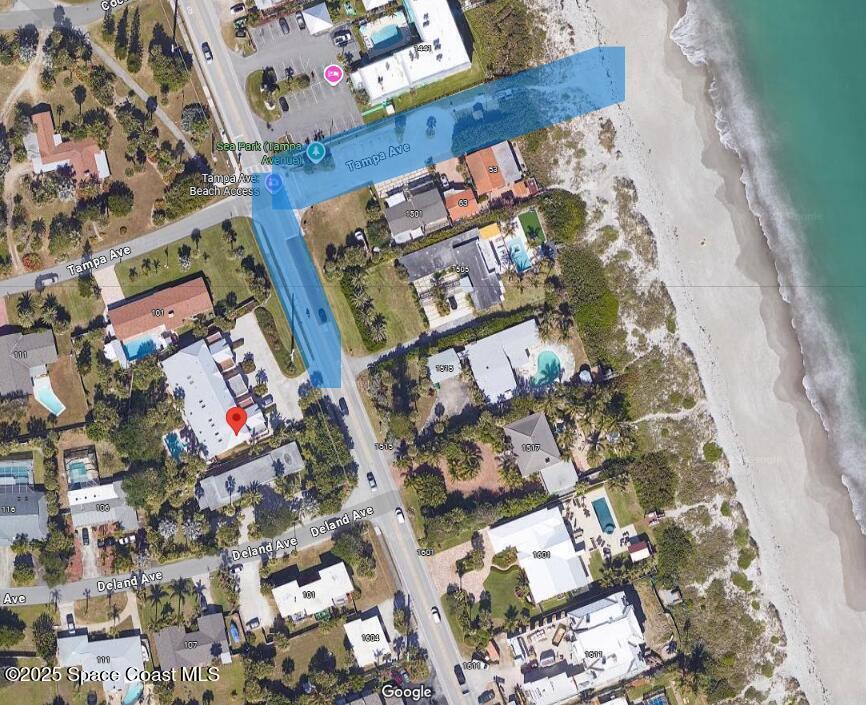 Beachside, 2-story townhome, south of 5th Avenue. Steps away from the beach via pedestrian crosswalk, this gem host high ceilings with skylights providing tons of natural light. Kitchen, dining room, living room, spare bedroom and screened-in porch all overlook the beautiful backyard that includes community pool. Downstairs includes full bath between two bedrooms, plenty of closet space, and laundry off kitchen. Owner suite encompasses entire upstairs and includes spacious open area perfect for an office. Bath offers large tub, separate shower and two sizable walk-in closets. Additional amenities include garage with workspace, peaks of the ocean from private balcony upstairs and just a short drive to 5th Ave dining and shopping.
