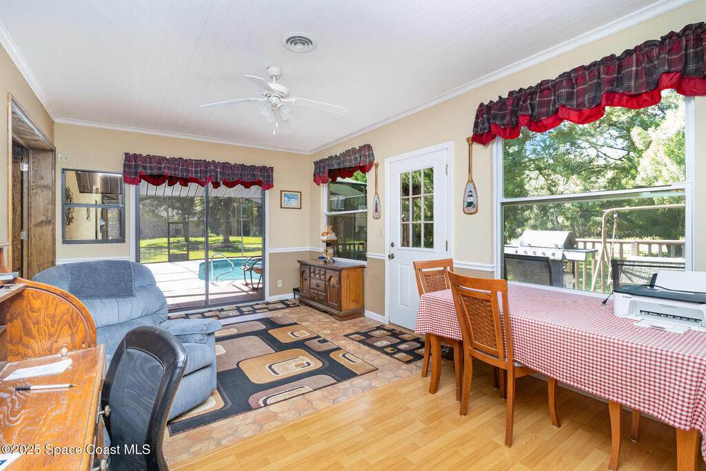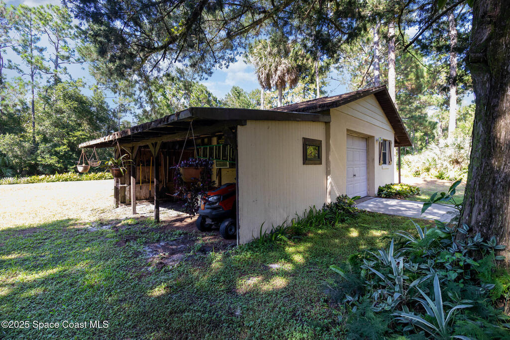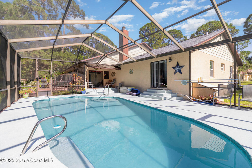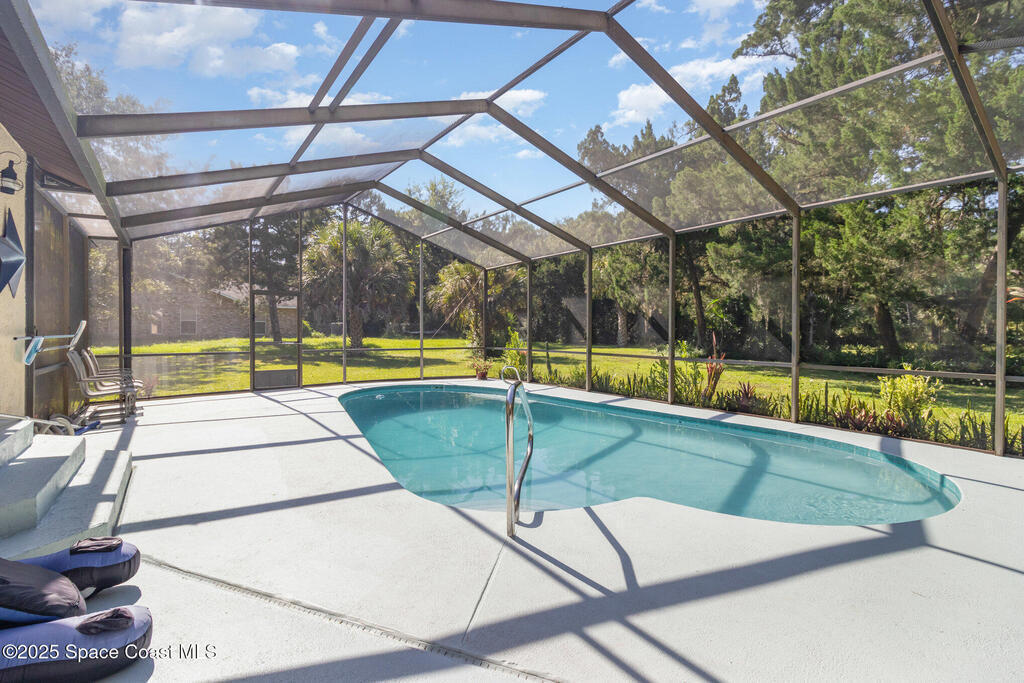 Welcome to this beautifully maintained 2,331 square foot block home located in the desirable Quail Haven subdivision. Situated on a spacious 1.08-acre lot, this property offers privacy, functionality, and the best of Florida living. The home features an inviting inground pool, resurfaced in 2025, perfect for entertaining or relaxing in your private backyard oasis. A 600 square foot detached garage provides ample space for a workshop, additional vehicles, or storage.Recent updates include a new roof and A/C system, both replaced in 2022. Impact-resistant windows were installed in 2020, and a new water softener was added in 2023. The concrete driveway, installed in 2020, enhances curb appeal and provides durable, low-maintenance access to the property.Enjoy the convenience of being close to local walking paths and just a short drive to the Space Center. This move-in-ready home offers a rare combination of land, upgrades, and location.