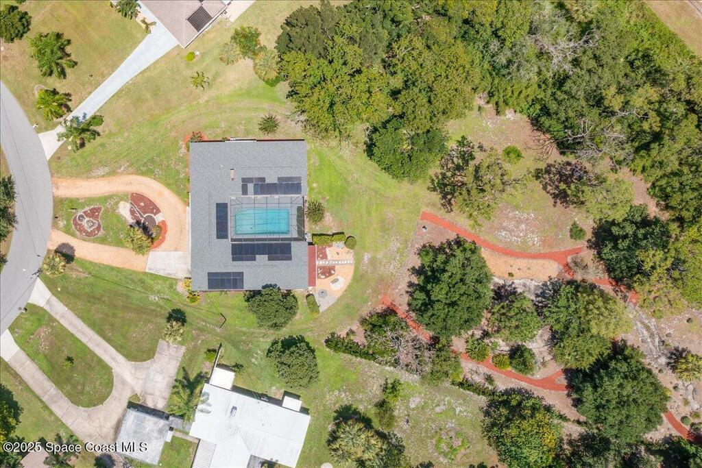 Move-in ready 4+BR/3BA pool home w/bonus room & private guest suite offers versatile space, unique character & a peaceful backyard. Main house opens to bright living & dining rooms accented by a dual-sided fireplace that connects a separate family room. Kitchen includes serving counter that overlooks the family room - ideal for casual living or entertaining. 2 spare bedrooms share full bath w/step-in shower, while owner's suite offers pool views & bath w/linen storage, stand-alone sink & tub/shower combo. Oversized garage provides direct access to spacious laundry room, which connects to bonus room & guest suite. A true highlight, the guest suite includes private bath, kitchenette, back porch seating & pool access - perfect for visitors or multi-gen living. Out back, enjoy a deep, nature-inspired yard w/walking paths, seating areas, a charming bridge & hidden shed. Another bonus New ROOF 2024, entire home solar system.