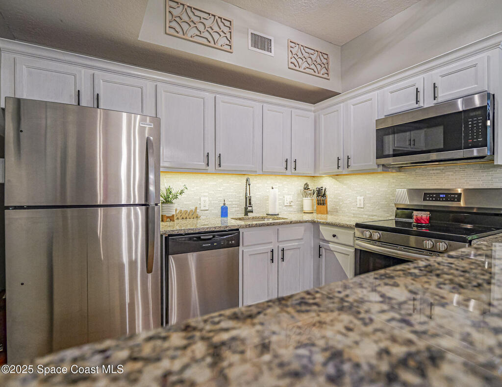 Beautiful renovated 1st floor condo just minutes from beaches & Ocean Drive in the desirable gated community of Fountainhead. This condo features 2 bedrooms, 2 bathrooms, 1 car garage and is being sold turnkey! Move right in to this condo and start enjoying all the community has to offer. NEW Roof, 2025 A/C, granite counters, SS appliances, flooring in bedrooms, lighting/fans, the list goes on. All freshly painted and ready for its new owners! Centrally located to shopping, restaurants, Cleveland Clinic, boating, golf and so much more! Rm sizes approximate, some items do not convey w/ sale.