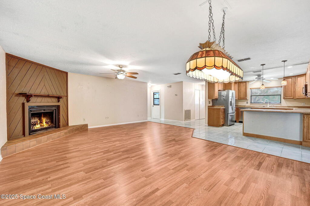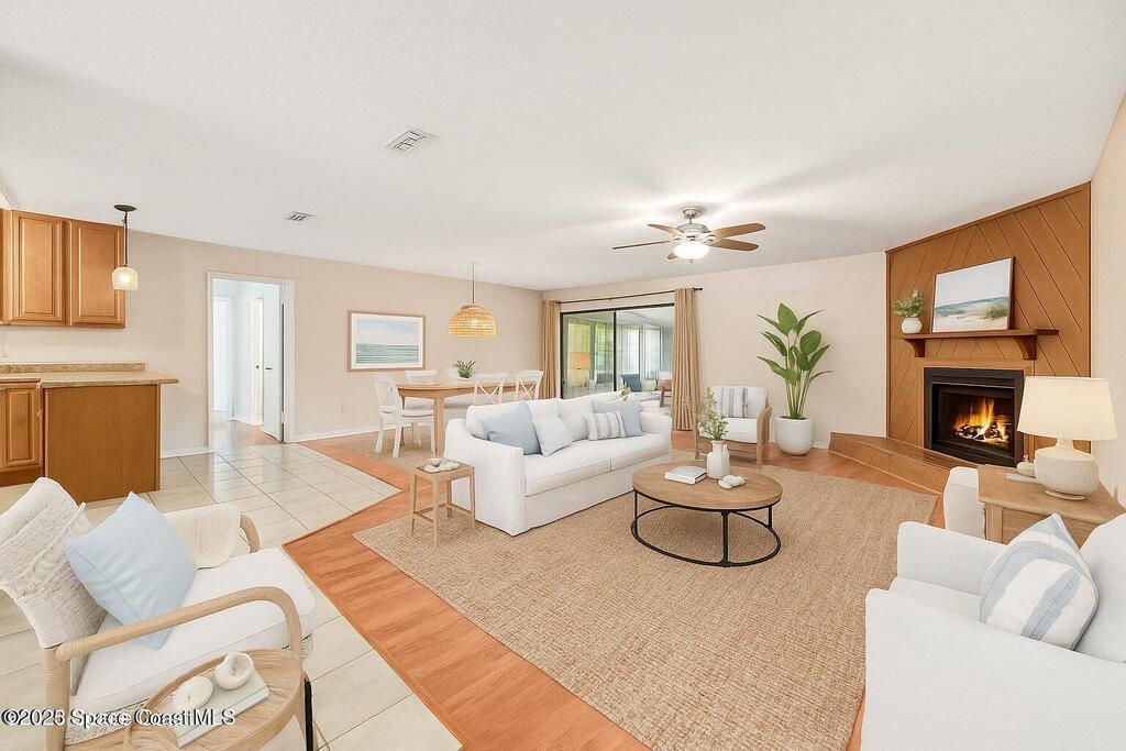 $30k PRICE REDUCTION! Best buy in desirable Villa de Palmas! Motivated seller! Come see this spacious home! Open layout as you walk in with a great room boasting a corner wood burning fireplace, large dining area and updated kitchen with a breakfast bar! Love the bright kitchen window overlooking the front yard! Split bedroom plan! Primary bedroom has sliders to the backyard! Very large guest bedrooms - one has sliders to the backyard too! Huge Florida room with glass windows under A/C offers a wonderful area for entertianing! Massey Termite Bond! Great central location with high end waterfront homes right across the street! No HOA fees! Easy to show! Just installed a new stove!