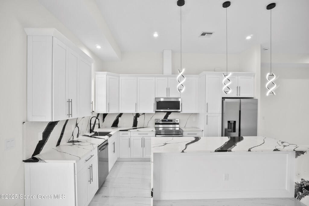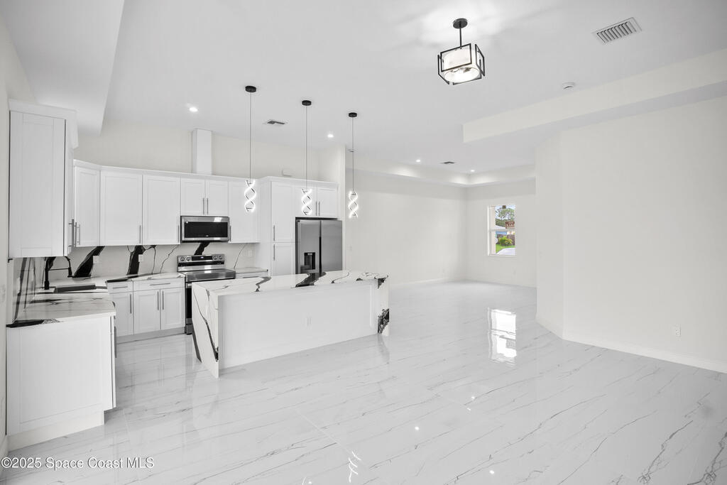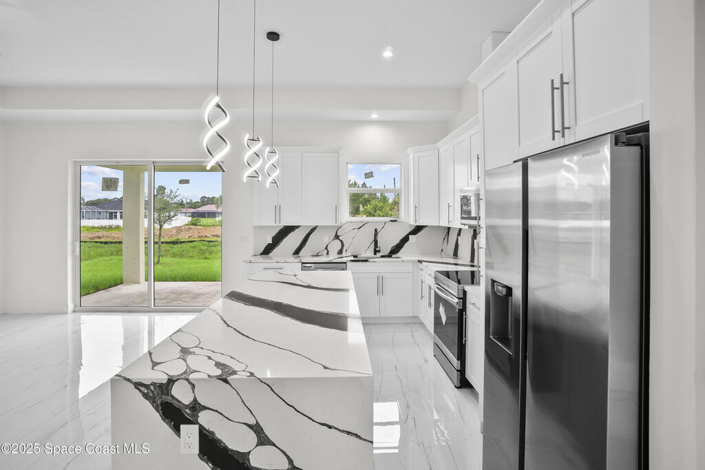 MODERN UPGRADED BRAND NEW HOME! If you are looking for a home that is different then the other builder spec homes, this is the one for you! This Beautiful, Brand New Home will come with one year Builder Warranty! This home features 4 Bedrooms, 2 Full Baths , a 2 Car Garage, and an Indoor Laundry Room. Featuring vaulted ceilings in the living area, this spacious floor plan includes tile in the whole home. The kitchen offers all white high quality cabinets with a black kitchen island, quartz countertops, stainless steel appliances. IMPACT WINDOWS, GARAGE DOOR AND DOORS. Truss covered lanai. GORGEOUS PORCELAIN TILES. TANKLESS WATER HEATER. WINE COOLER. -BEAUTIFUL BACKYARD VIEW WITH NO NEIGHBORS BEHIND OR NEXT DOOR ON ONE SIDE!
