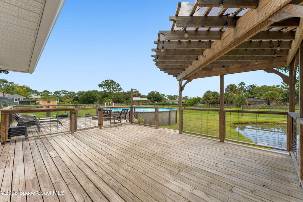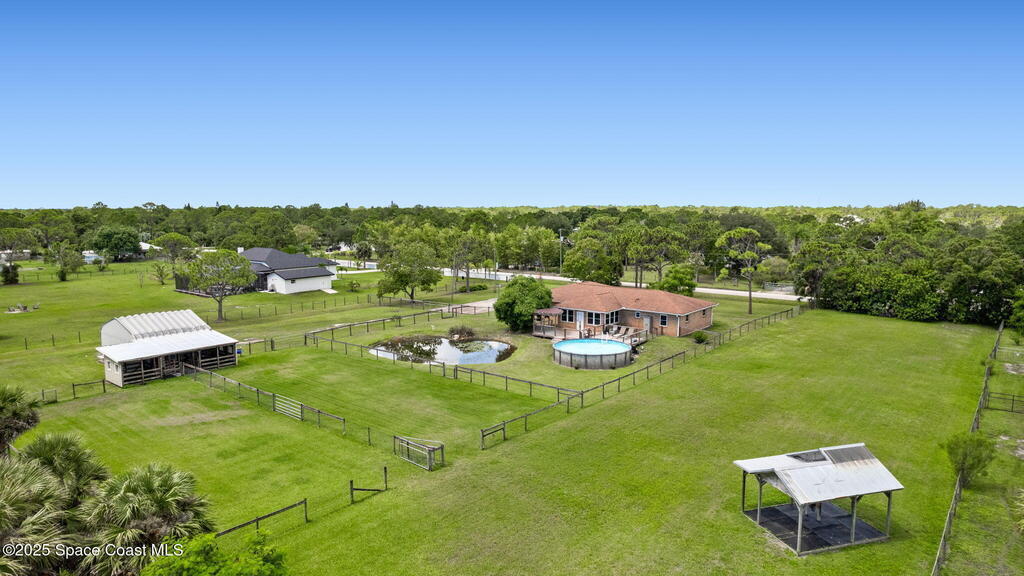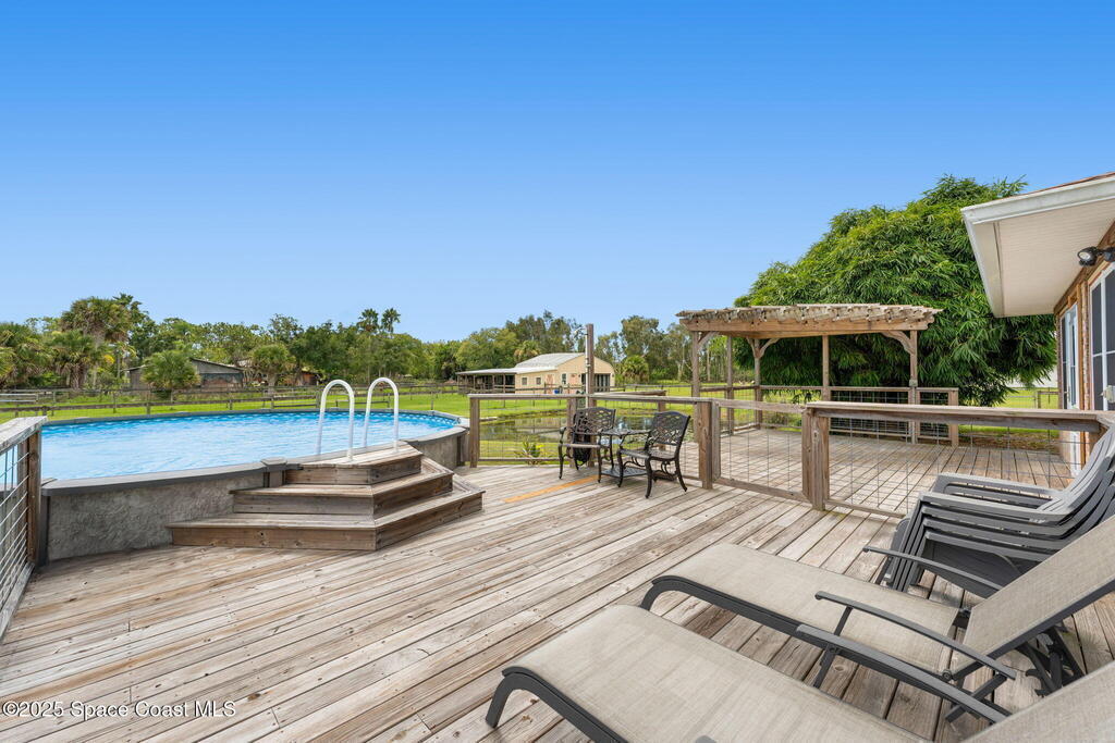 Hold your horses and stop searchin', partner-this here 1.85 Acre equestrian spread is the homestead you've been ridin' the range for! This 4-bed, 2-bath beauty's got a split floorplan, a master bath with a soak-worthy tub, and a walk-in custom closet big enough for all your boots 'n' blue jeans. You'll find a water softener, RO system, and impact windows tougher than a bull at a rodeo. The laundry room's even got a sink for washin' up after a day wranglin'. Mosey out back to the enclosed patio, kick back on the big ol' deck, or cool off in the above-ground pool overlookin' your own pond. Got horses? Saddle up-there's a barn with 2 stalls ready to go . Wheels? The detached garage's got RV space for plenty of parkin'. Don't just tip your hat-lasso this one before it's gone!