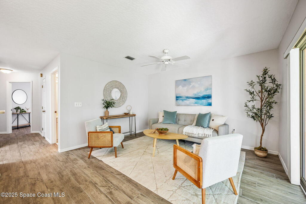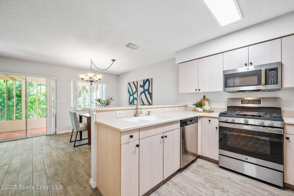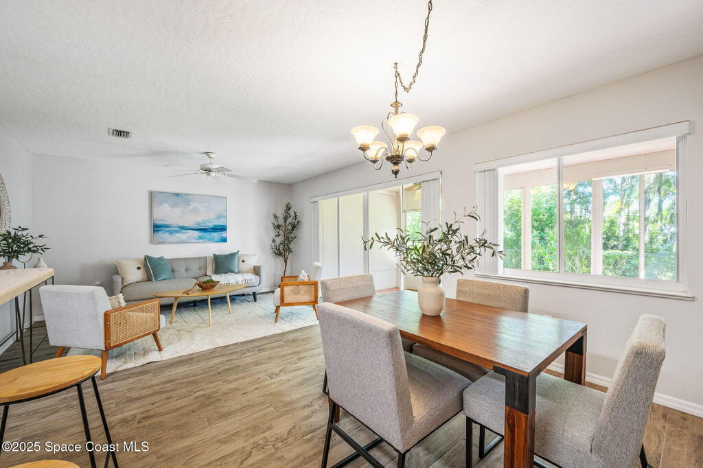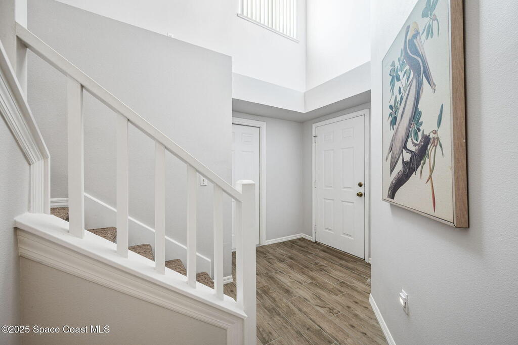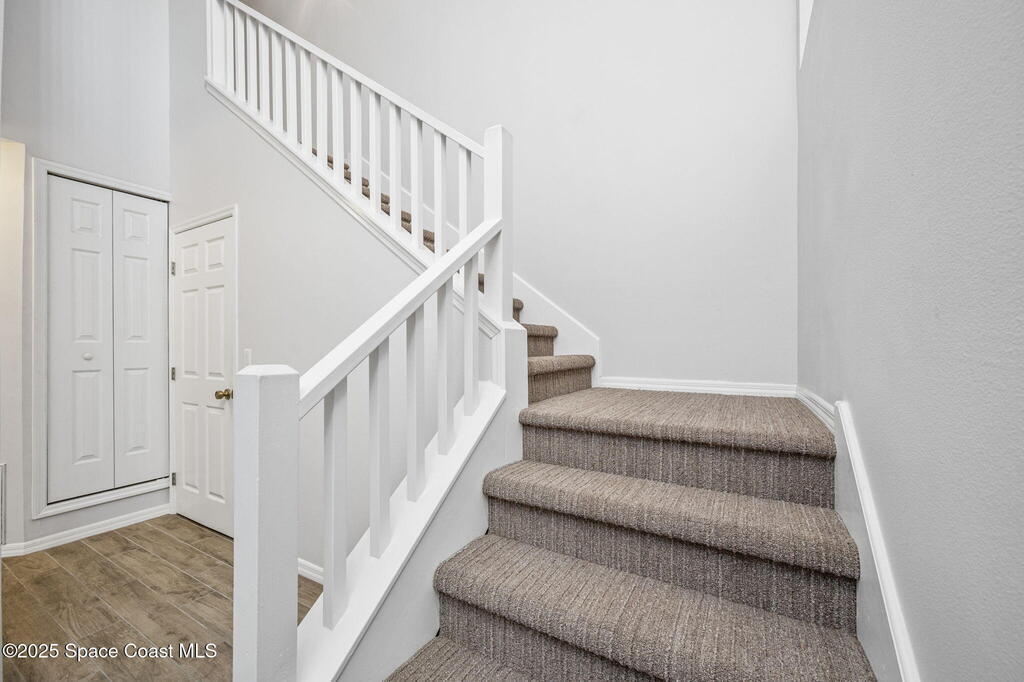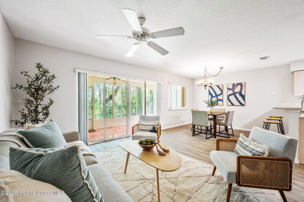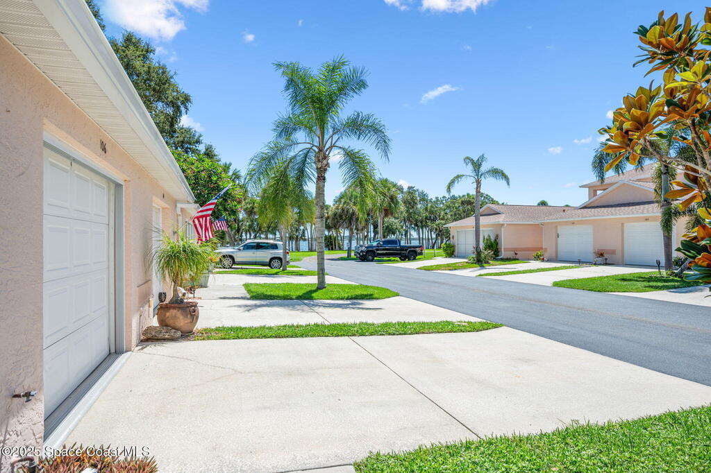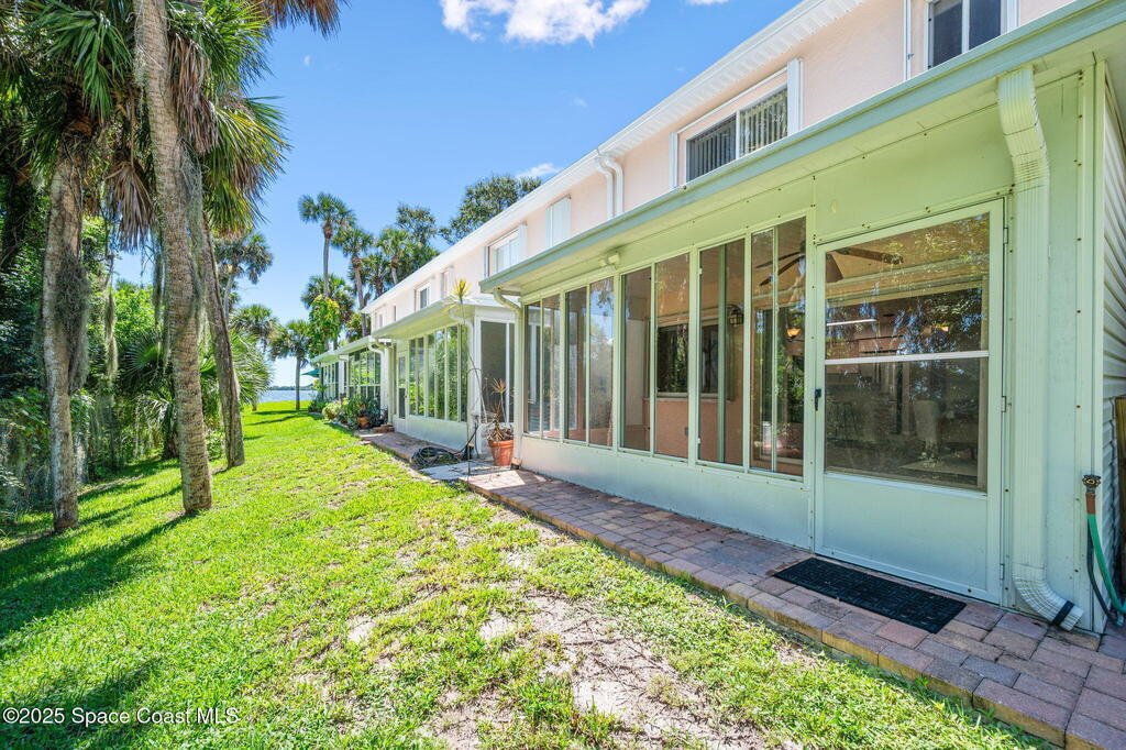 Welcome to River Way, a hidden gem along the Indian River. Spanning 12.6 acres with 1,200 feet of direct river frontage, this gated community offers an exceptional waterfront lifestyle. Residents enjoy an Olympic-sized heated pool, tennis courts, walking trails, a private boat dock with slips, community kayaks, picnic areas, and MORE. This Cozy Coastal Charm home has 3-bedrooms, 3-baths with a 1-car garage and 1,690 sq. ft. of living space, plus a spacious enclosed patio that backs up to a serene natural setting with glimpses of the river. The versatile floor plan includes a bedroom and full bath downstairs, while upstairs features the primary suite and an additional guest suite with a full bath. The kitchen offers stainless steel appliances including a gas stove, Corian countertops, with peaceful nature views with a peek-a-boo river view. Additional features include a washer and dryer in the garage, storm shutters for peace of mind, tile flooring downstairs, carpet upstairs.