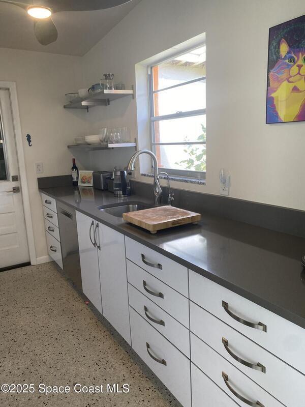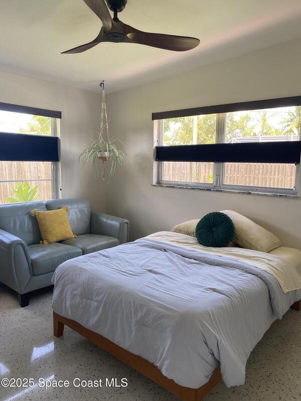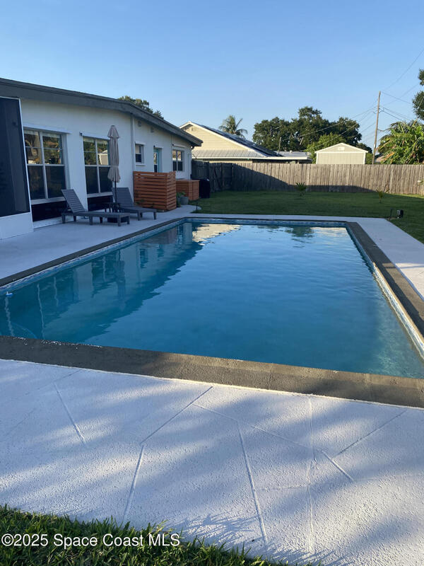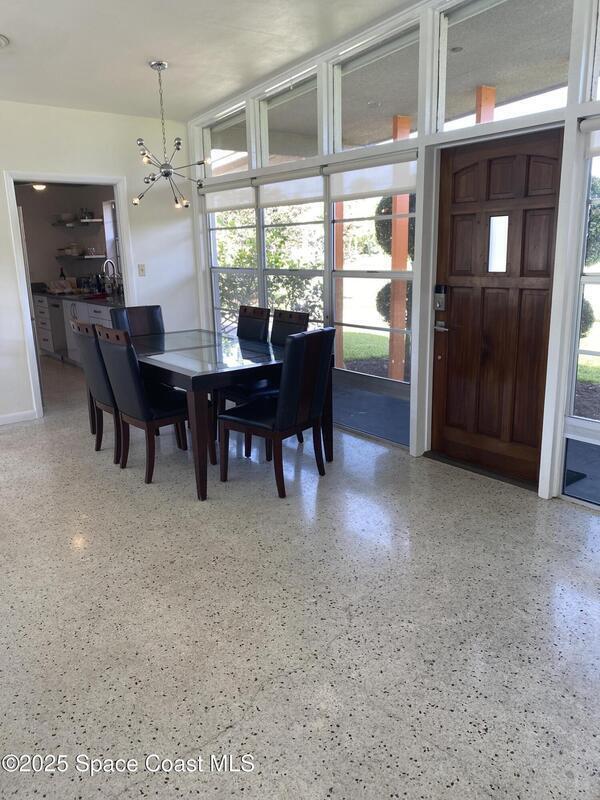 Mid-Century CBS modern home with 21st-century enhancements. No HOA, no restrictions. Desirable Vero Shores safe neighborhood, only five miles from the beach. Full hurricane protection includes shutters and custom hurricane garage doors.15X30 heated saltwater pool (2020heat pump, 2018energy-efficient V/S pool pump, 2024 saltwater system) Screened porch with ceiling fan overlooking large fenced backyard. Terrazzo floors throughout, renovated kitchen: gas range, SS appliances, custom cabinets, r/o filtration, pantry, laundry room. Features high ceilings-bright airy interiors. Electric updated:200amps/2020, insulated 2-car garage, 2018 Main H20 line repiped w/new shut-off valve. Located close to shopping, pharmacy, gas, and groceries. Live the Florida Dream! Rmsizeapprox.