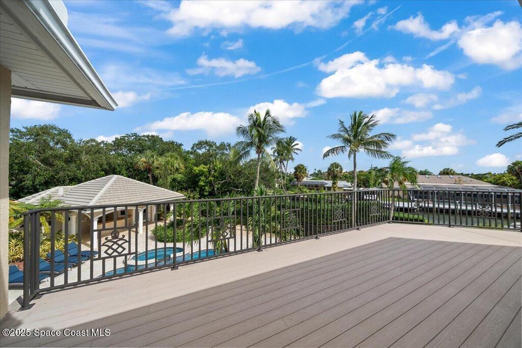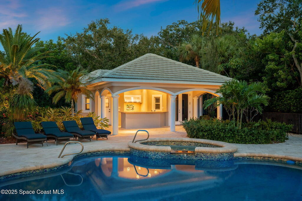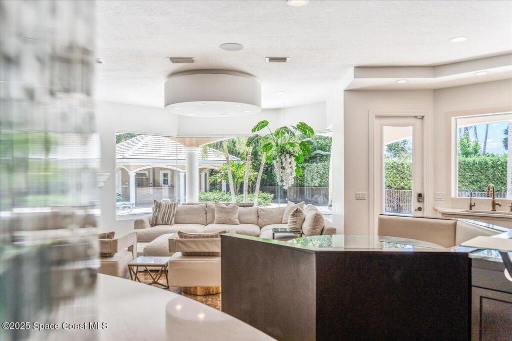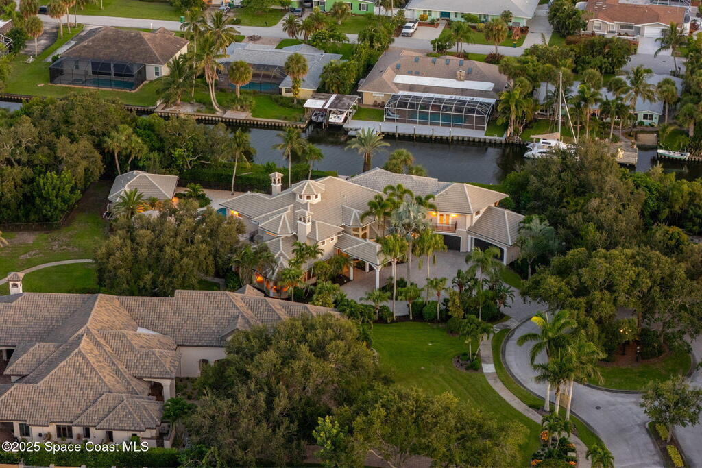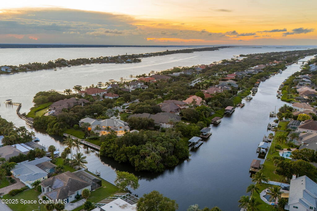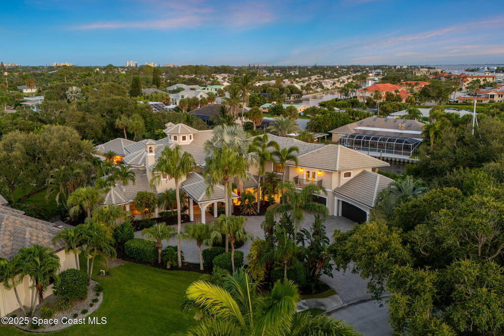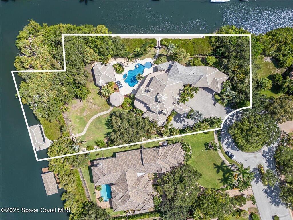Welcome to 154 Lansing Island Drive, a residence that embodies the very best of waterfront luxury in Brevard County's most prestigious gated community. Lansing Island is known for its exclusivity, guarded gatehouse, and iconic drawbridge entry, yet it is this estate's extraordinary setting that truly sets it apart. Resting on one of the larger lots on the island, measuring 1.19 acres, the property enjoys an unrivaled position with nearly 300 feet of water frontage, capturing almost 180 degrees of water views.This phase of Lansing Island was originally reserved as the developer's lots, chosen for their premier size and setting. While most homes on the island rest on smaller parcels with limited outdoor space, this estate offers a rare abundance of backyard grounds. Expansive lawns shaded by a central oak create a true estate feel, something seldom found here, offering the ideal setting for entertaining on any scale.