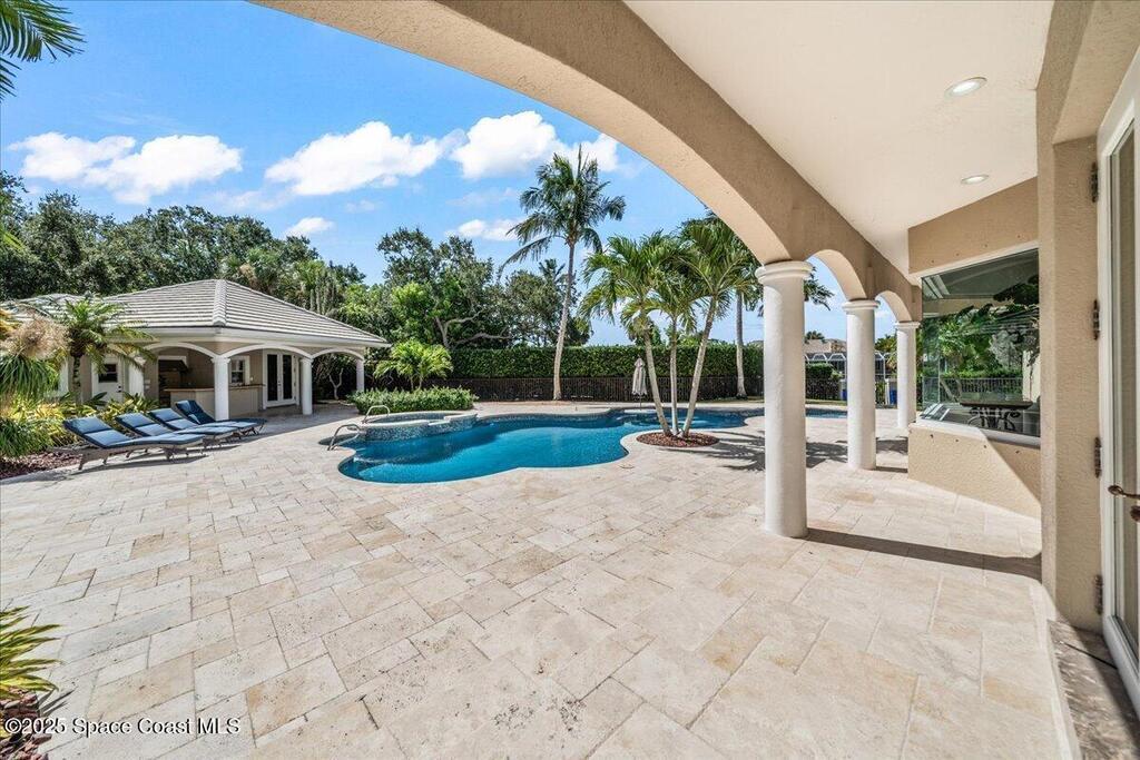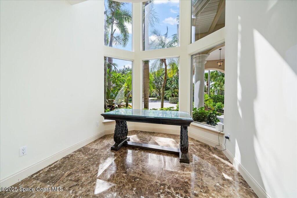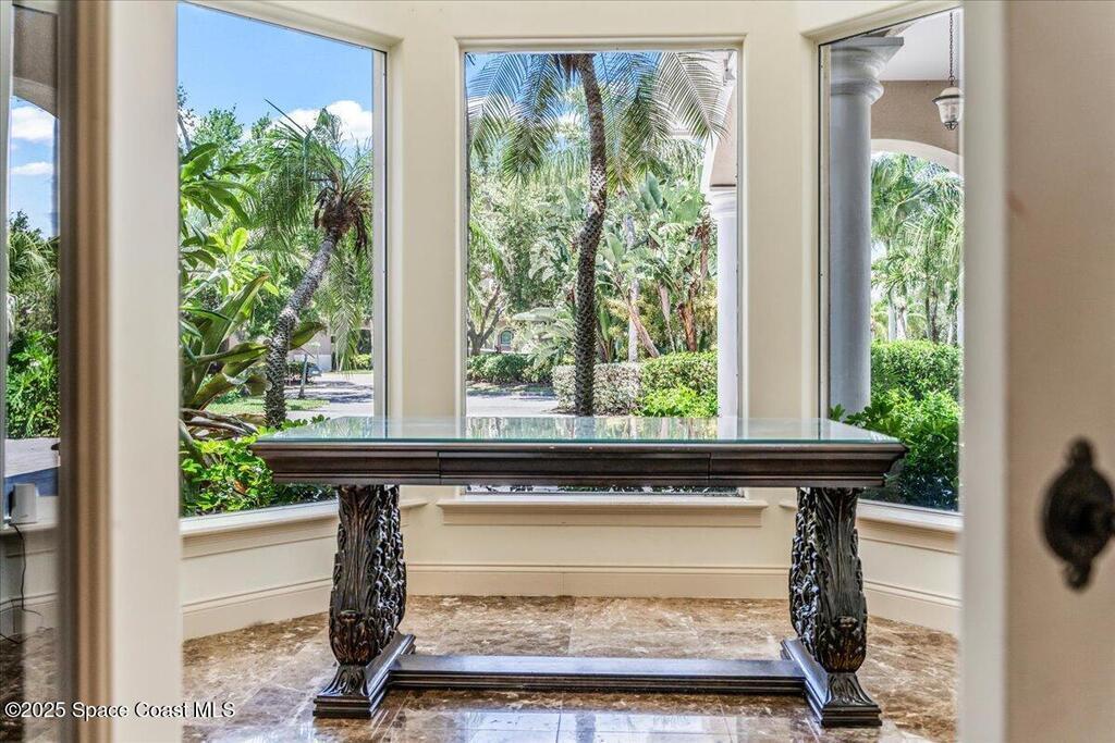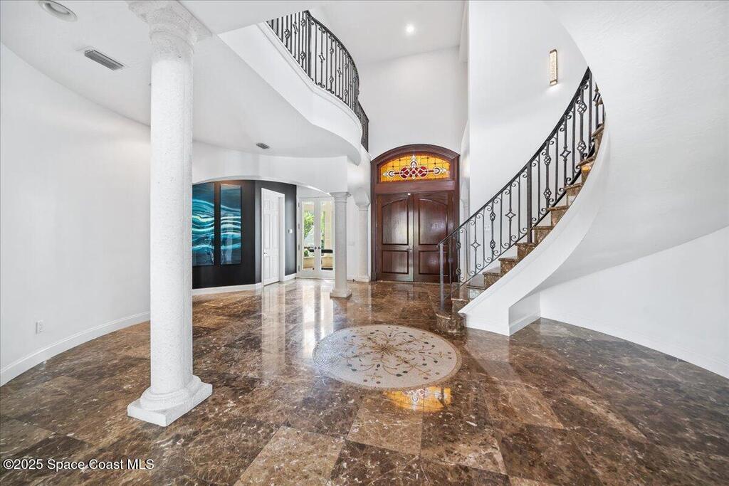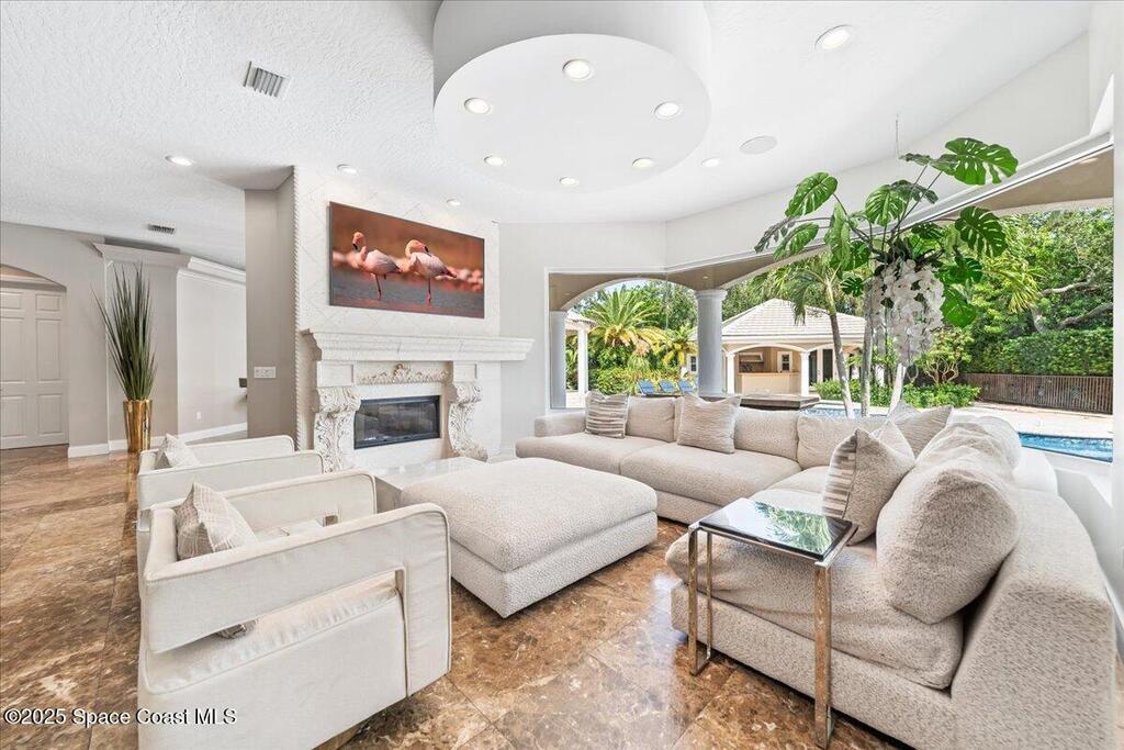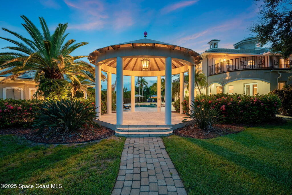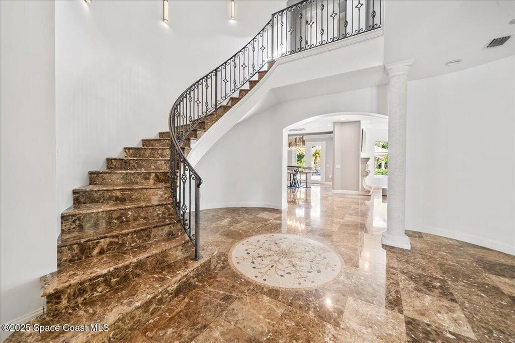 Welcome to 154 Lansing Island Drive, a residence that embodies the very best of waterfront luxury in Brevard County's most prestigious gated community. Lansing Island is known for its exclusivity, guarded gatehouse, and iconic drawbridge entry, yet it is this estate's extraordinary setting that truly sets it apart. Resting on one of the larger lots on the island, measuring 1.19 acres, the property enjoys an unrivaled position with nearly 300 feet of water frontage, capturing almost 180 degrees of water views.This phase of Lansing Island was originally reserved as the developer's lots, chosen for their premier size and setting. While most homes on the island rest on smaller parcels with limited outdoor space, this estate offers a rare abundance of backyard grounds. Expansive lawns shaded by a central oak create a true estate feel, something seldom found here, offering the ideal setting for entertaining on any scale.