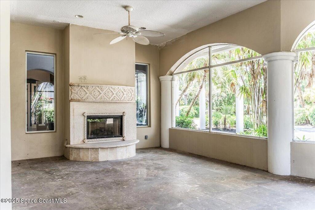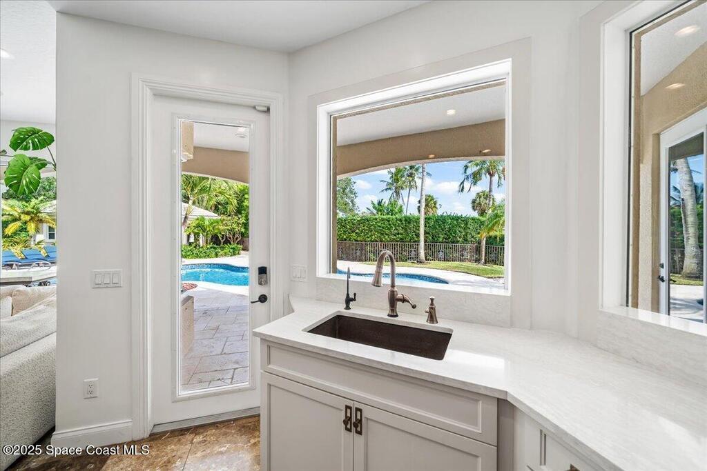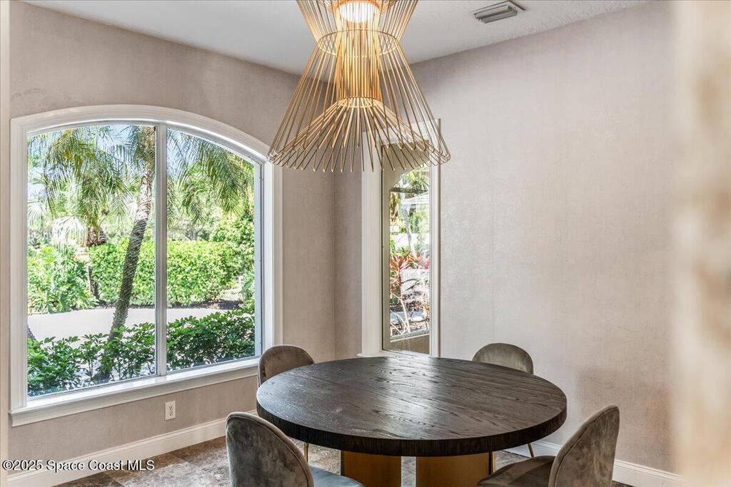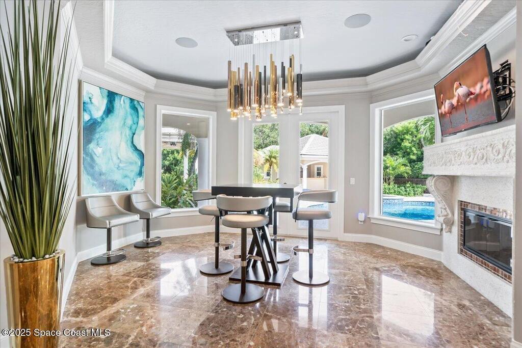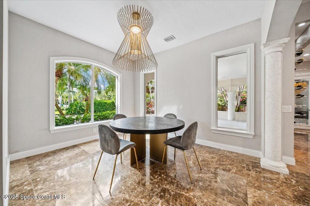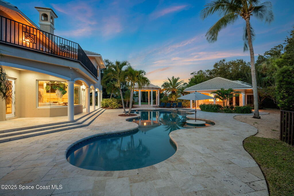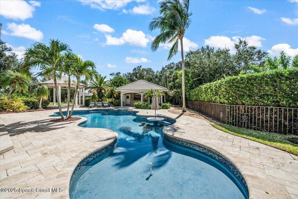 Welcome to 154 Lansing Island Drive, a residence that embodies the very best of waterfront luxury in Brevard County's most prestigious gated community. Lansing Island is known for its exclusivity, guarded gatehouse, and iconic drawbridge entry, yet it is this estate's extraordinary setting that truly sets it apart. Resting on one of the larger lots on the island, measuring 1.19 acres, the property enjoys an unrivaled position with nearly 300 feet of water frontage, capturing almost 180 degrees of water views.This phase of Lansing Island was originally reserved as the developer's lots, chosen for their premier size and setting. While most homes on the island rest on smaller parcels with limited outdoor space, this estate offers a rare abundance of backyard grounds. Expansive lawns shaded by a central oak create a true estate feel, something seldom found here, offering the ideal setting for entertaining on any scale.