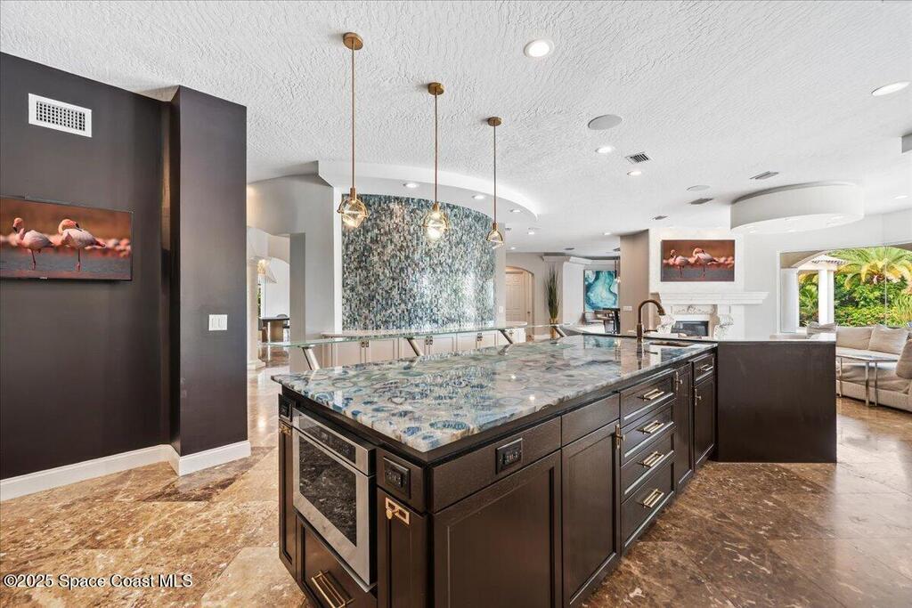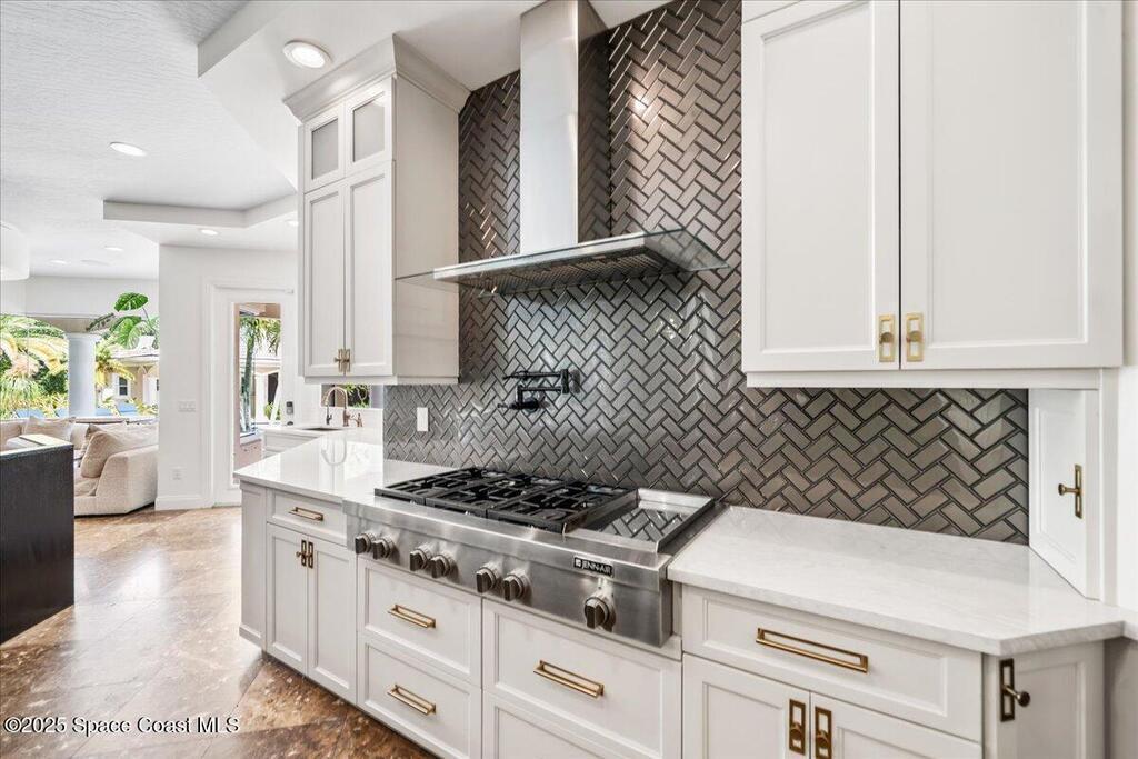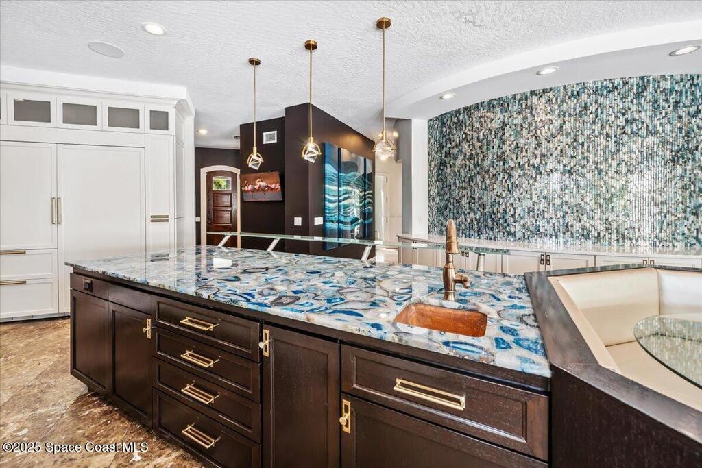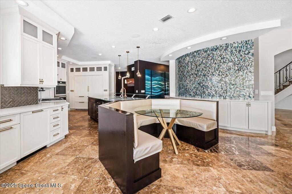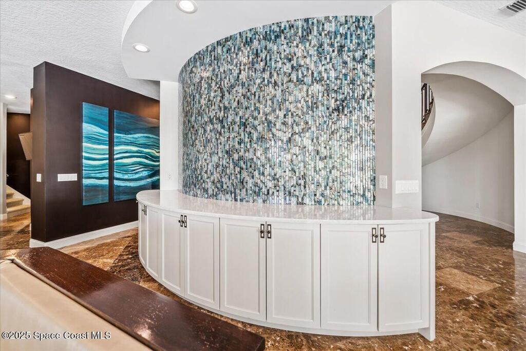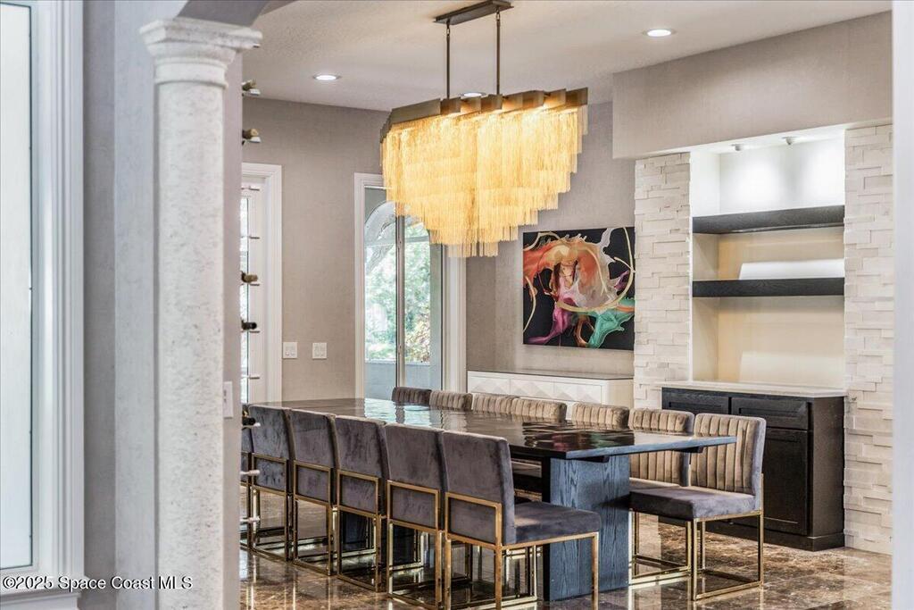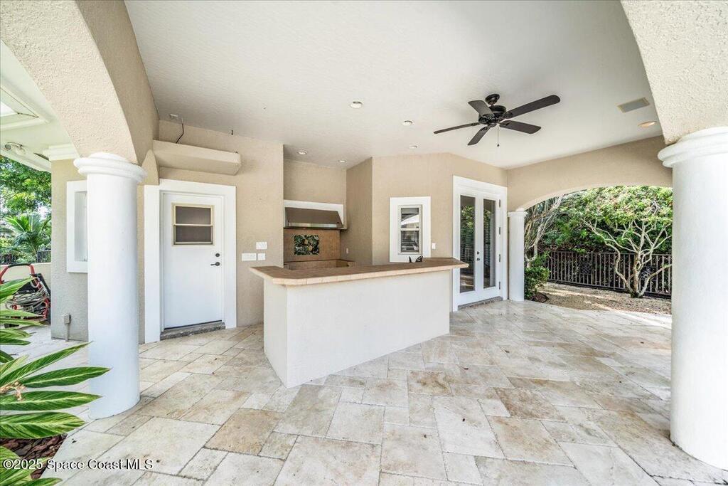 Welcome to 154 Lansing Island Drive, a residence that embodies the very best of waterfront luxury in Brevard County's most prestigious gated community. Lansing Island is known for its exclusivity, guarded gatehouse, and iconic drawbridge entry, yet it is this estate's extraordinary setting that truly sets it apart. Resting on one of the larger lots on the island, measuring 1.19 acres, the property enjoys an unrivaled position with nearly 300 feet of water frontage, capturing almost 180 degrees of water views.This phase of Lansing Island was originally reserved as the developer's lots, chosen for their premier size and setting. While most homes on the island rest on smaller parcels with limited outdoor space, this estate offers a rare abundance of backyard grounds. Expansive lawns shaded by a central oak create a true estate feel, something seldom found here, offering the ideal setting for entertaining on any scale.