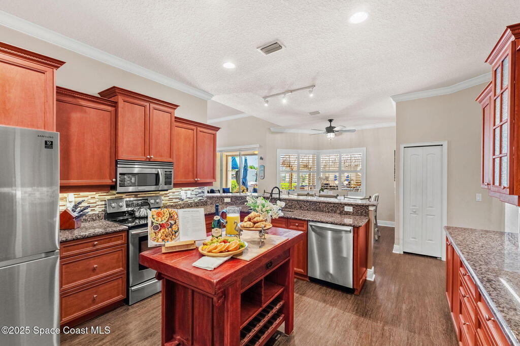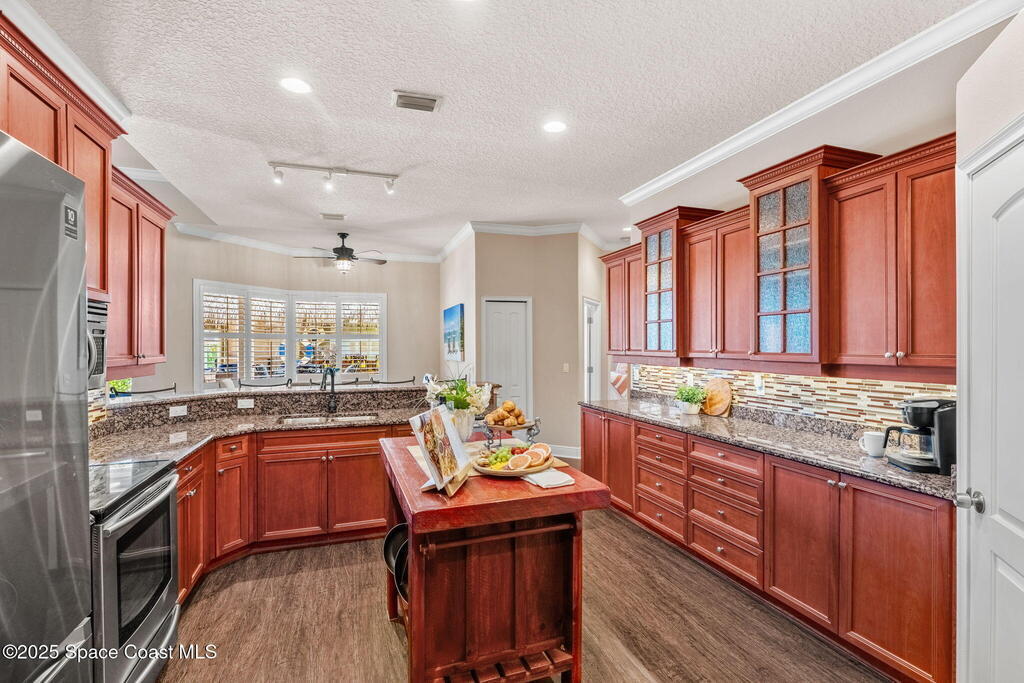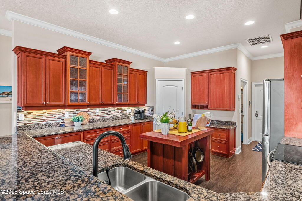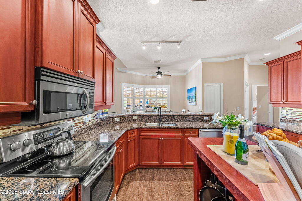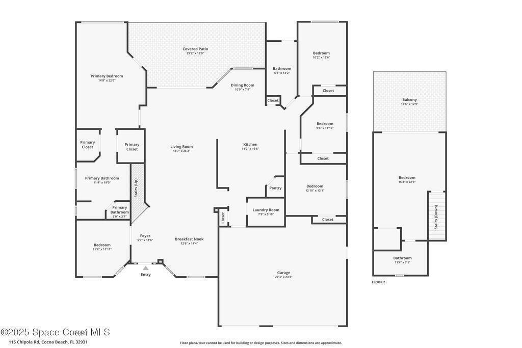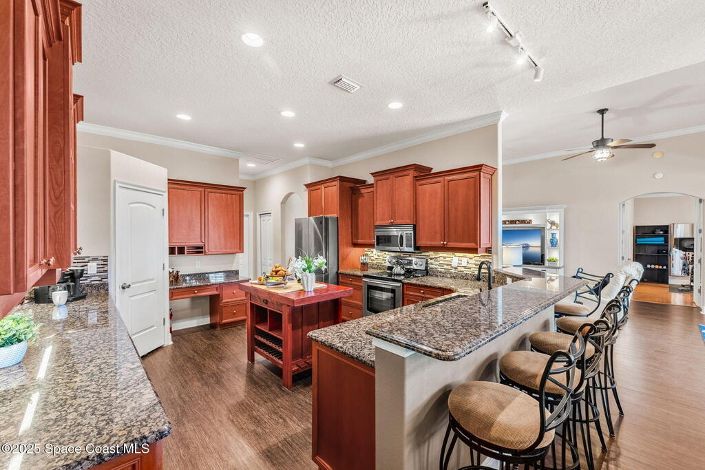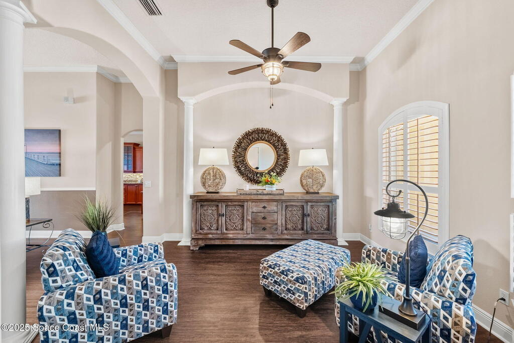 Welcome to this beautifully upgraded 5-bedroom Cocoa Beach home, complete with a versatile flex room that can serve as a 6th guest-room or office. The first-floor primary suite is a private retreat with a spacious layout, modern finishes, and a spa-like ensuite bathroom. A 3-car garage, fully under air and finished with epoxy flooring, provides abundant storage for vehicles, toys, and hobbies. The home features open-concept living and dining areas that flow seamlessly to expansive outdoor spaces. Built in 2006, this waterfront residence offers a custom tiki bar, hot tub, and putting green creating the ultimate backyard oasis for gatherings with family and friends. On the water, enjoy a deep-water canal with a 2021 dual-engine boat lift (approx. 16,000 lbs), floating dock with ramp, and racks for kayaks and paddleboards--perfect for boaters. Recent updates include a 2017 roof, 2021 A/C and water heater, storm protection, tiki hut hurricane shutters (2022), and a home security system.