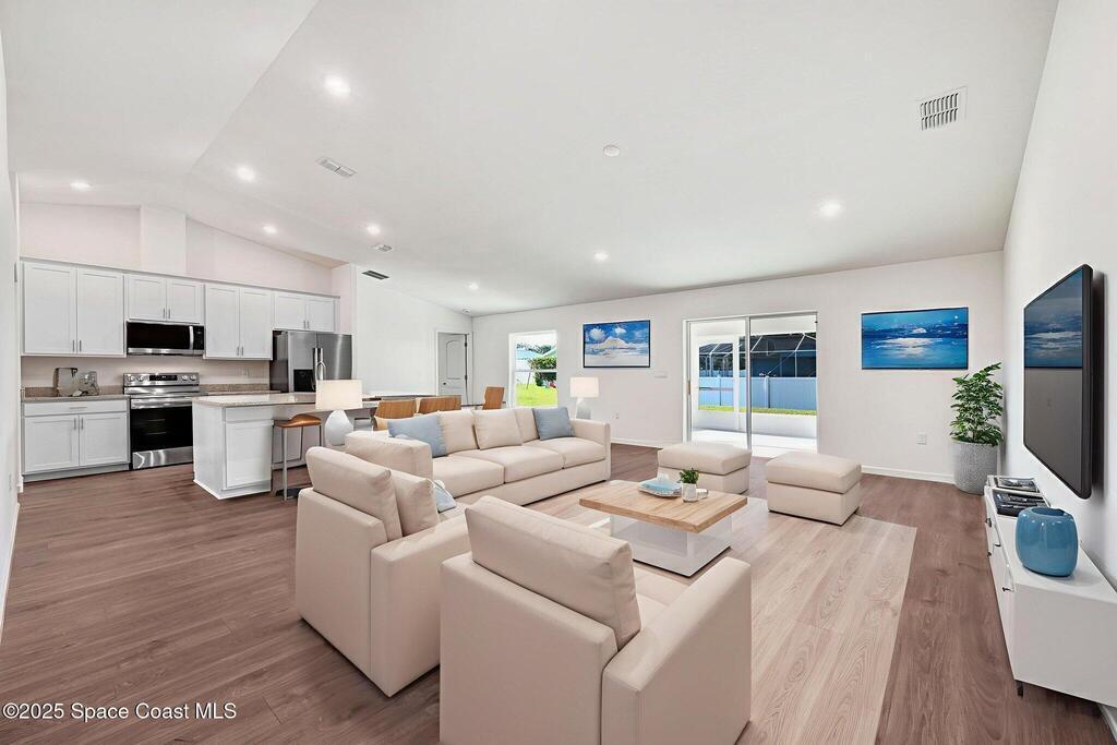 Hurry! 20K Fall Flex Special! Cash buyers 15K Off & 5k toward Closing Or 20k with Approved Lender to Reduce Price, Closing Costs or Buy Down Rate! Brand New Construction-Home is Completed! This beautiful 3 Bedroom, 2 Bath Home with Den/Office & 20 X12 Trussed Screened Porch is Ready Now! The exterior boasts Stone Trim and a Raised Entry for standout curb appeal. Inside, Mohawk Revwood Plank Flooring flows throughout, with Tile Floors in baths & the Inside Laundry. The Island Kitchen features Stainless Appliances--including a 25 cu. ft. Fridge--and Level 2 Cabinets with Crown Molding while the Primary suite features a Tray Ceiling with Dimmable LED lighting a massive Walk-In Closet & a large tiled shower. Additional highlights: Level 2 Granite Countertops in Kitchen and Baths, Rounded Drywall Corners, Backyard Floodlights, Attic Stairs, & R-38 insulation with radiant barrier. 1-year builder & 10-year structural warranty included.