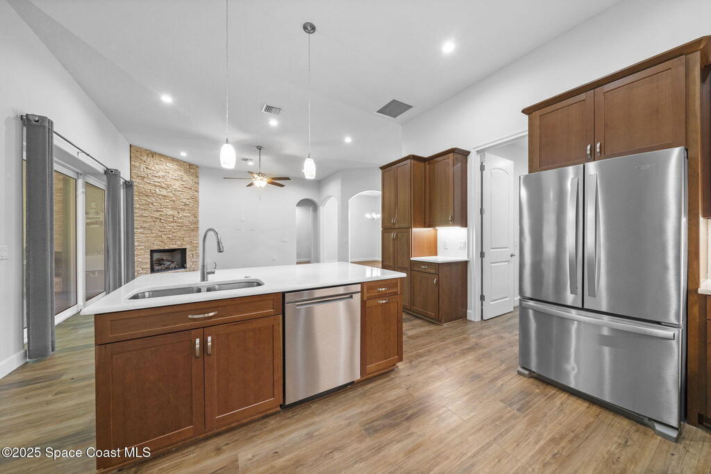Interior Features: Breakfast Bar, Breakfast Nook, Ceiling Fan(s), Guest Suite, His and Hers Closets, In-Law Floorplan, Kitchen Island, Open Floorplan, Pantry, Smart Thermostat, Split Bedrooms, Vaulted Ceiling(s) and Walk-In Closet(s)