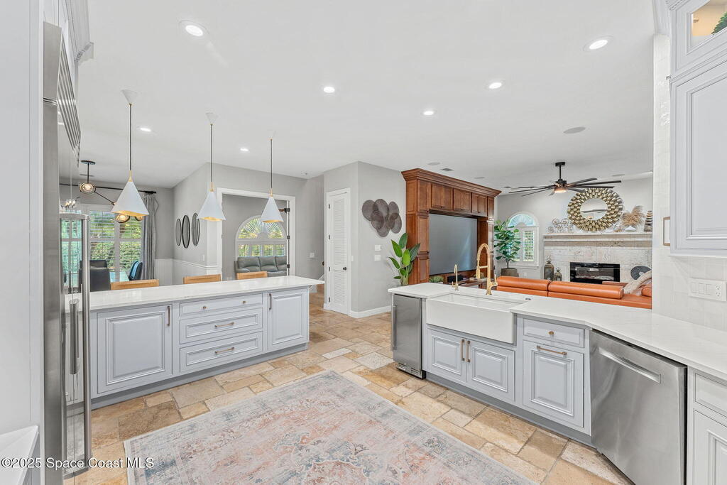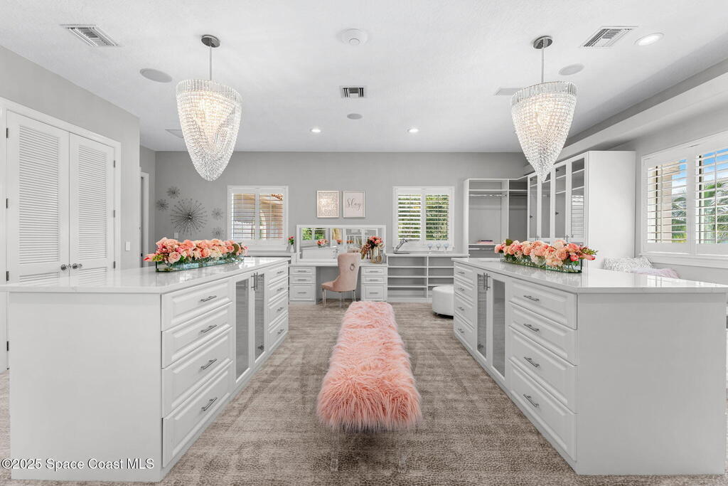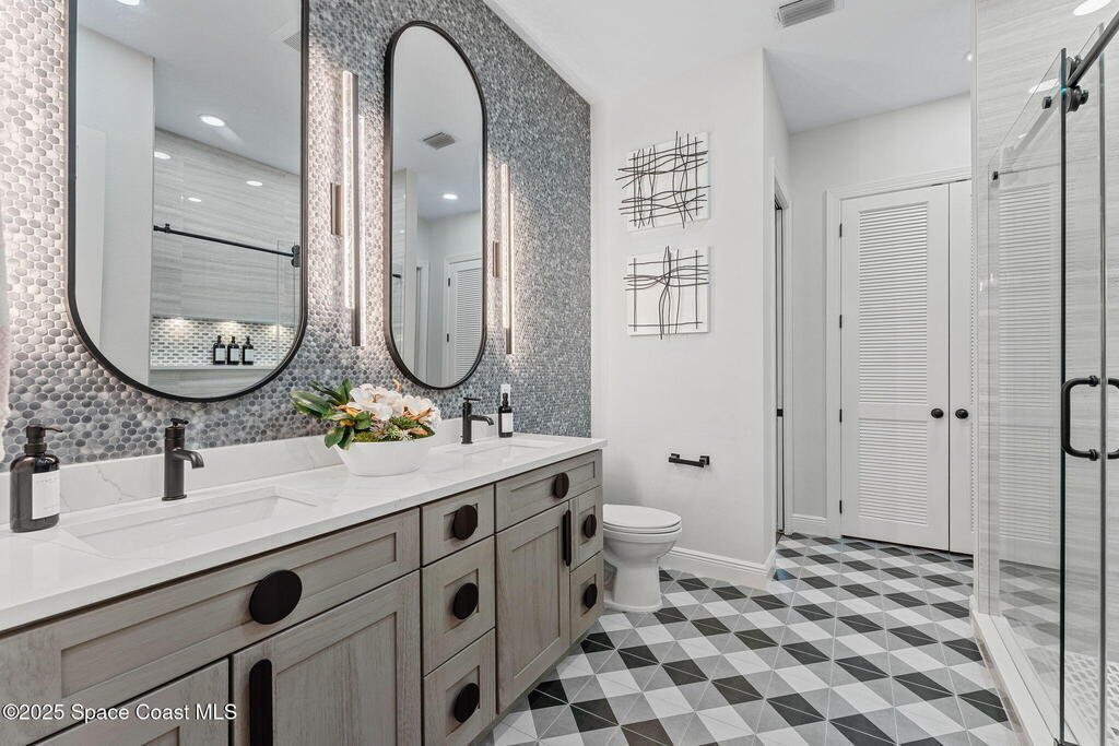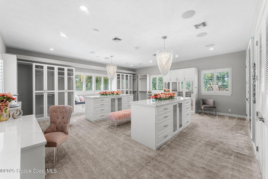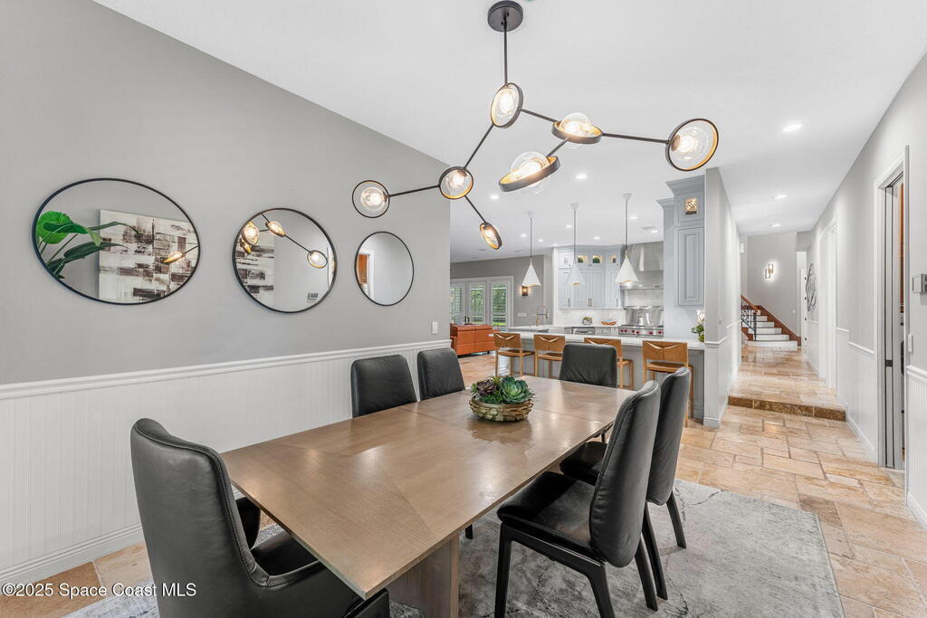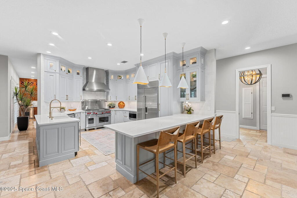 Set behind dual private gates, a grand palm-lined circular drive chauffeurs you to your fully furnished turnkey designer estate. Spanning over an acre, your private resort comes to life w/ a saltwater pool, spa & sun shelf, a summer kitchen crafted for the ultimate game-day vibe, a full basketball court & firepit lounge w/ swings beneath the palms. Inside, the flow is effortless, 2022 quartz countertops, custom cabinetry & premium appliances anchor a kitchen that connects seamlessly to expansive living & entertaining areas. A first-floor guest suite (2023), loft, bonus room & study add versatility, while upstairs, your primary suite delivers dual closets, a massive custom dressing room (2022) & an expansive ensuite with soaking tub & custom shower. Impact-rated windows & doors, a whole-home generator & elevated renovations complete an estate that is bold, modern & uncompromising. And when you want the water, the Banana River is just a short walk away.
