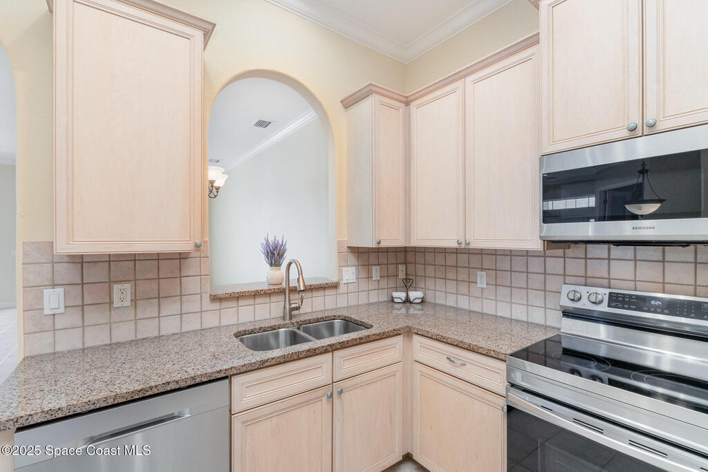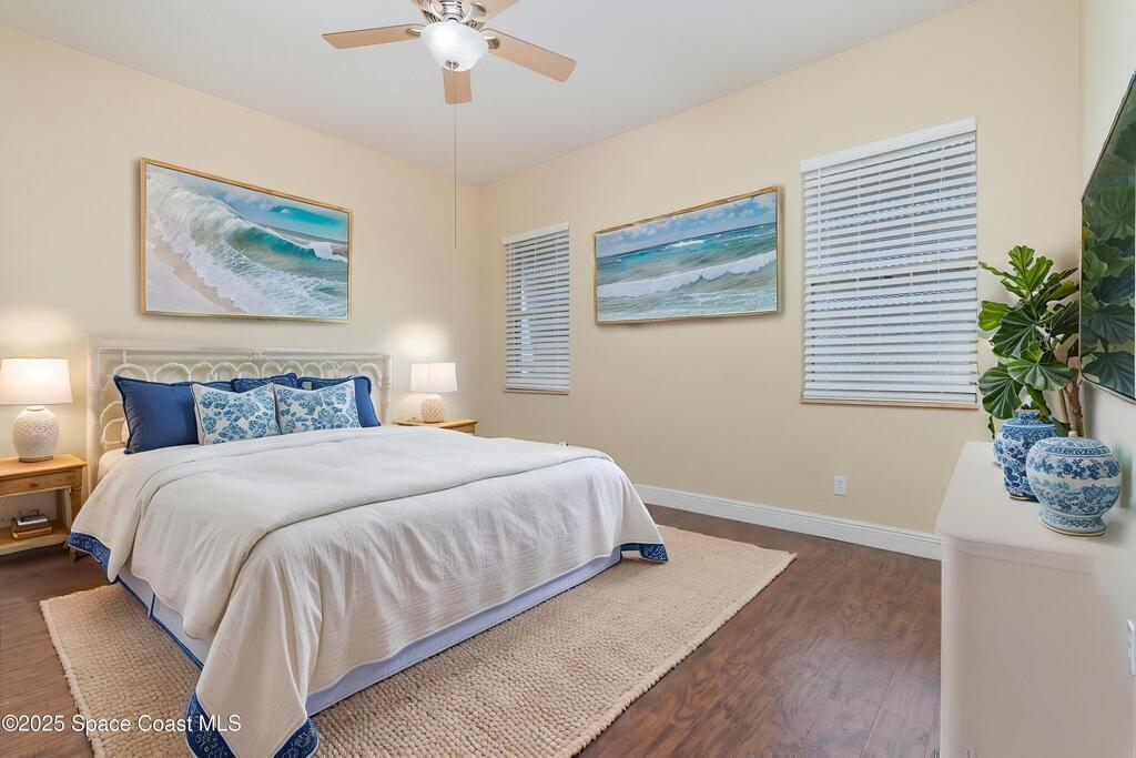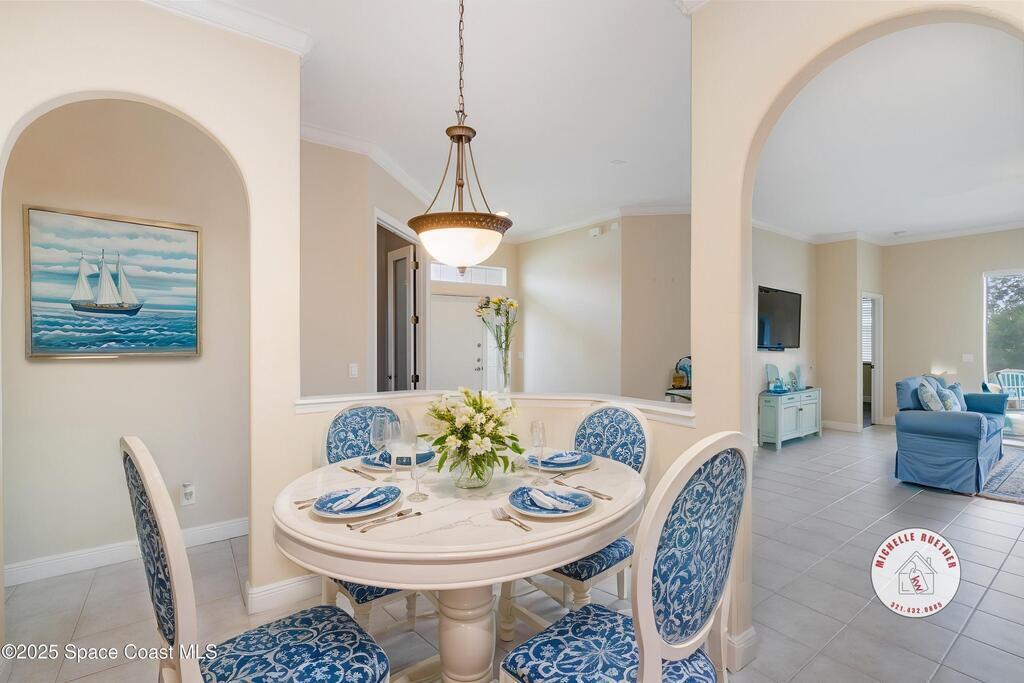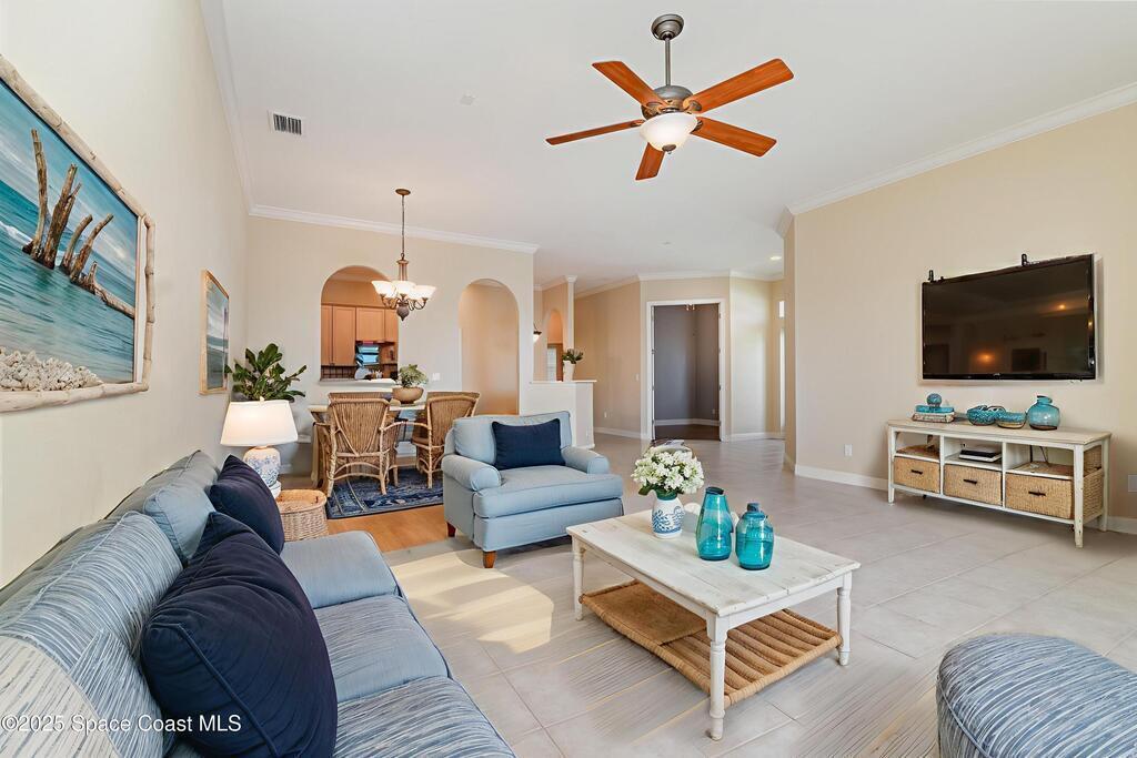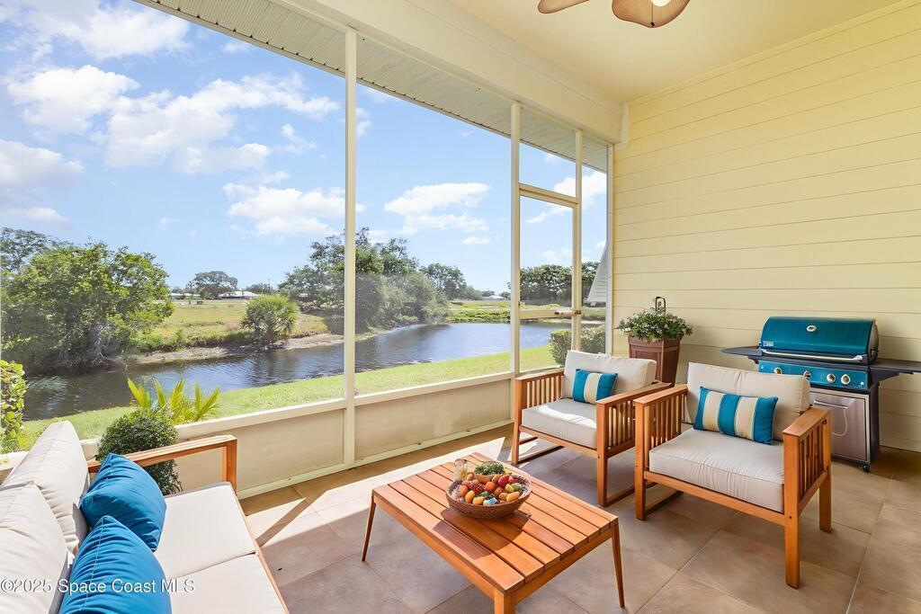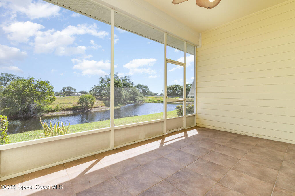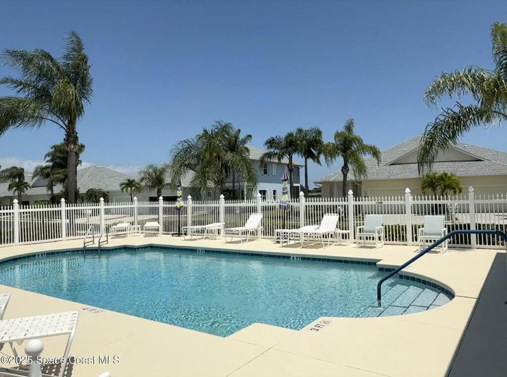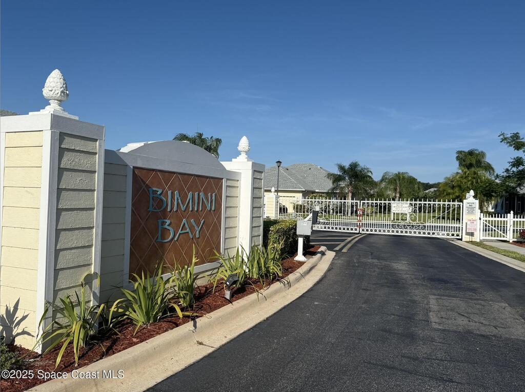 Discover this move-in ready duplex in Bimini Bay, a Key West-style gated community in Palm Bay! Inside you will find 2 spacious bedrooms, 2 baths, a flex room, laundry room, and an open, split floorplan. This home boasts granite countertops throughout, newer appliances, fresh interior/exterior paint, newer laminate flooring, crown molding, 5' baseboards, and newer window treatments. Enjoy mornings in the tiled, screened lanai with a peaceful water view plus a 2-car garage for added convenience. With a new roof, hurricane shutters, full lawn maintenance, low HOA, and community amenities including a pool and clubhouse, this home has it all and is ready for quick move-in!