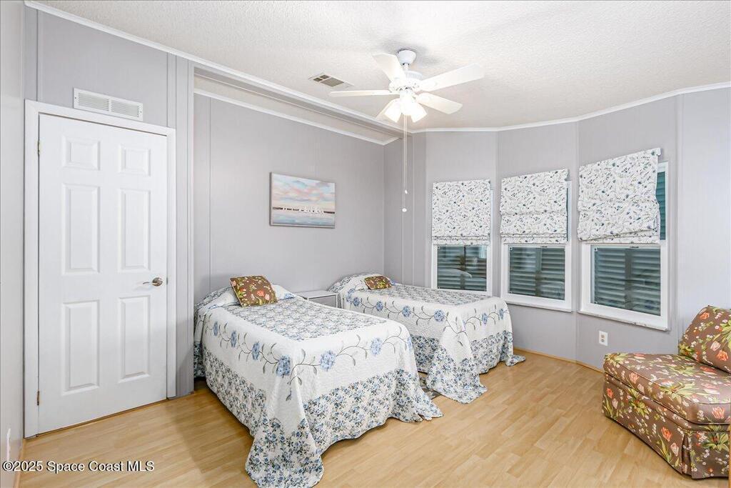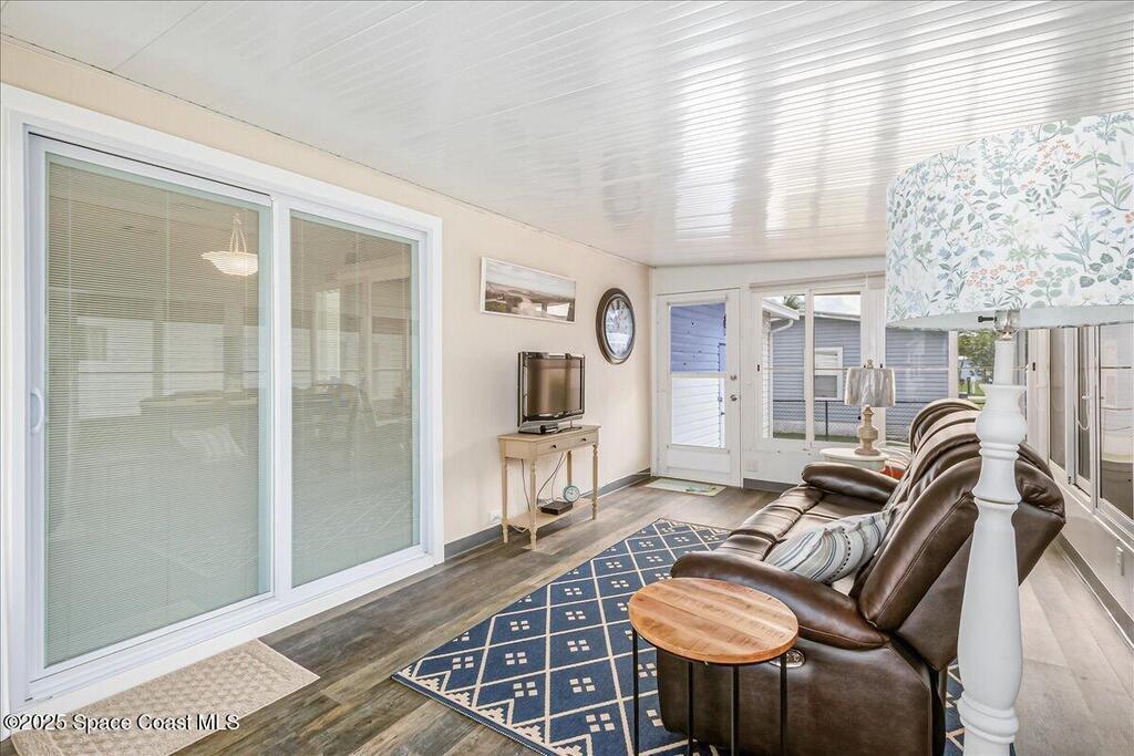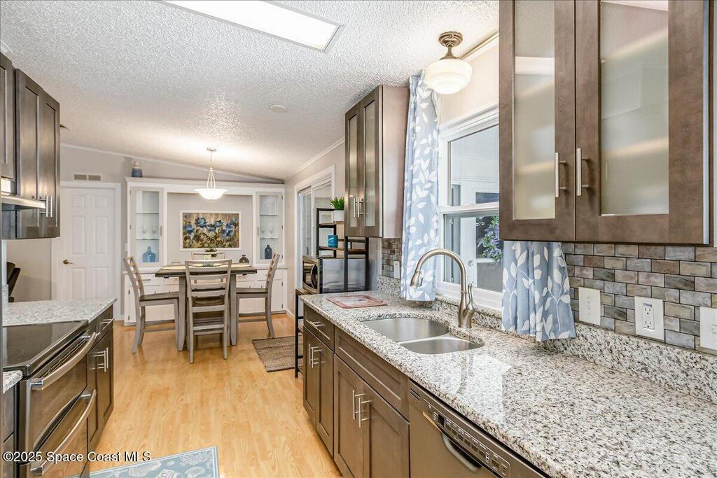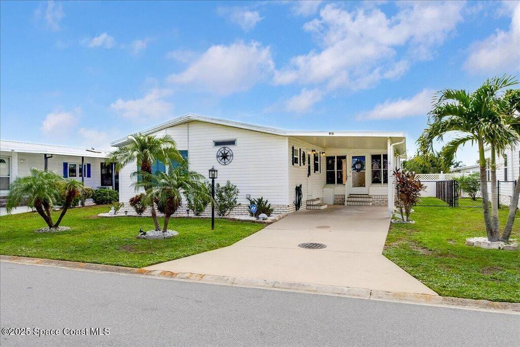 Beautifully maintained and updated 2-bedroom, 2-bathroom home featuring a spacious split floor plan. This charming residence has stainless steel appliances, granite countertops, and a tiled walk in shower in the owner's suite. Enjoy the air-conditioned Florida room, perfect for relaxing or entertaining. Recently installed impact-rated windows provide added security and peace of mind. The home boasts a new metal roof and a new A/C system for worry-free living (warranties are transferrable). It is located within walking distance to one of the three pools. Enjoy all the amenities Barefoot Bay has to offer and make this lovely home yours today!Also, the home comes tastefully furnished. All of the furniture items have been bought within the last two years and are in excellent condition!