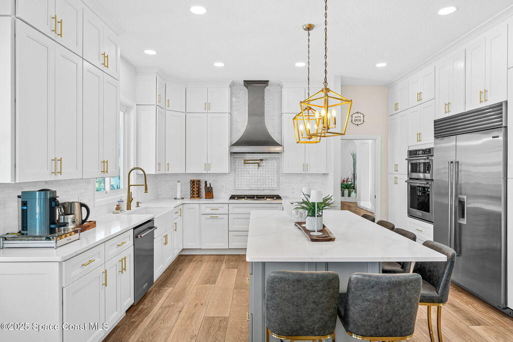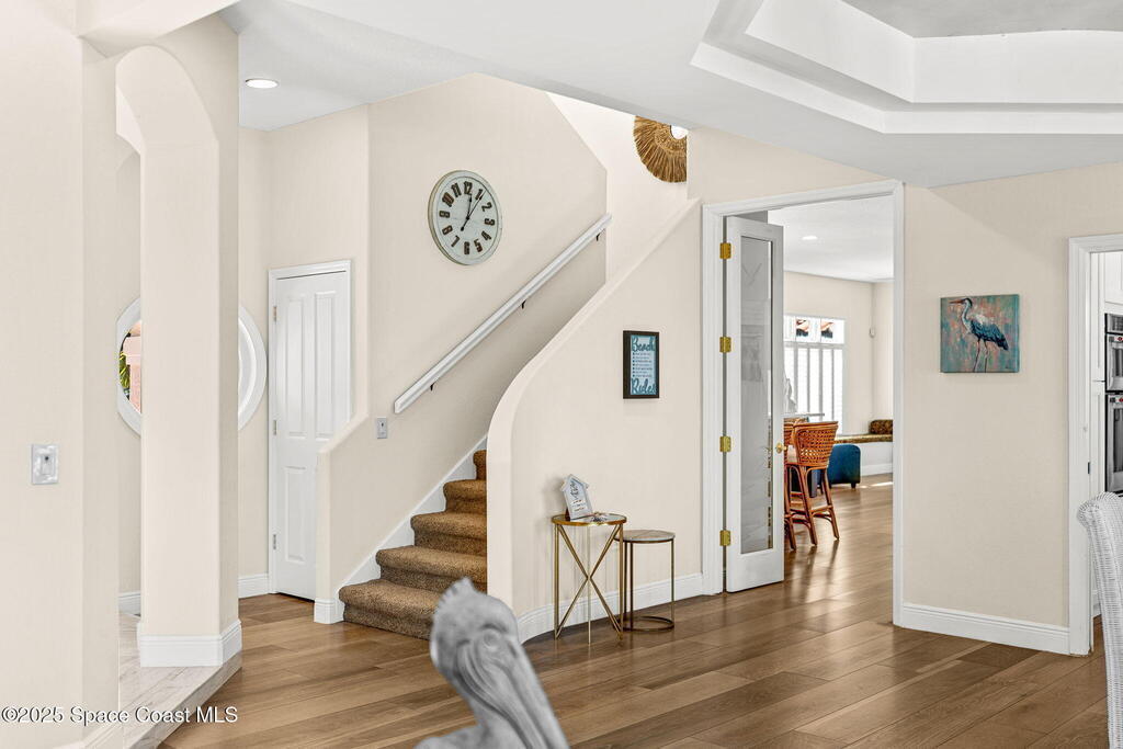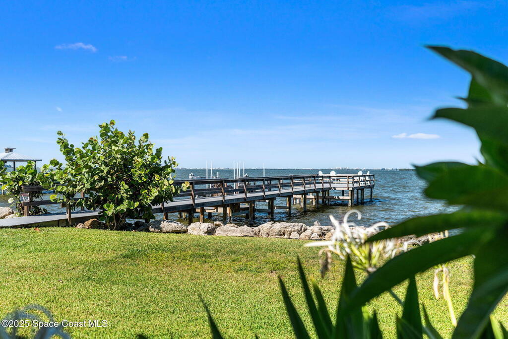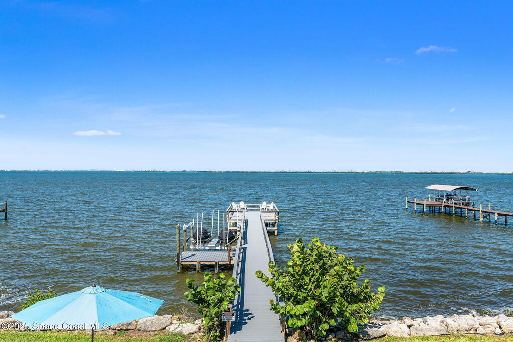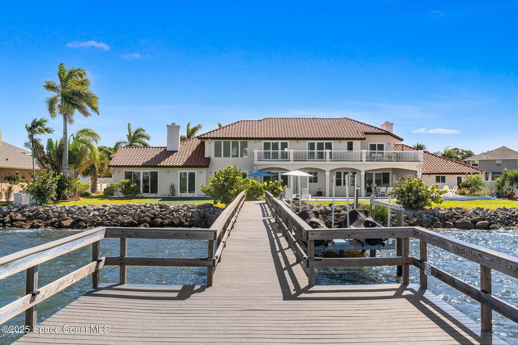 An extraordinary Space Coast luxury estate, completely reimagined in 2023 with lavish modern upgrades, offering the perfect blend of sophistication and coastal living. Set on 141 feet of elevated Intracoastal shoreline, this waterfront sanctuary delivers sweeping river views, with dolphins playing nearby, manatees gliding past, and spectacular rockets launching into the sky. Floor-to-ceiling impact glass fills the home with natural light and frames the ever-changing water scenery, seamlessly connecting indoor and outdoor living.At the heart of the home, a chef's gourmet kitchen features custom cabinetry, quartzite countertops, premium appliances, and designer lighting, flowing effortlessly into open-concept living and dining spaces. The primary suite is a true retreat, with a cozy sitting area, double-sided fireplace, spa-inspired bath with soaking tub, rain shower, and private sauna. Additional bedrooms are thoughtfully designed with elegant finishes and ample space for