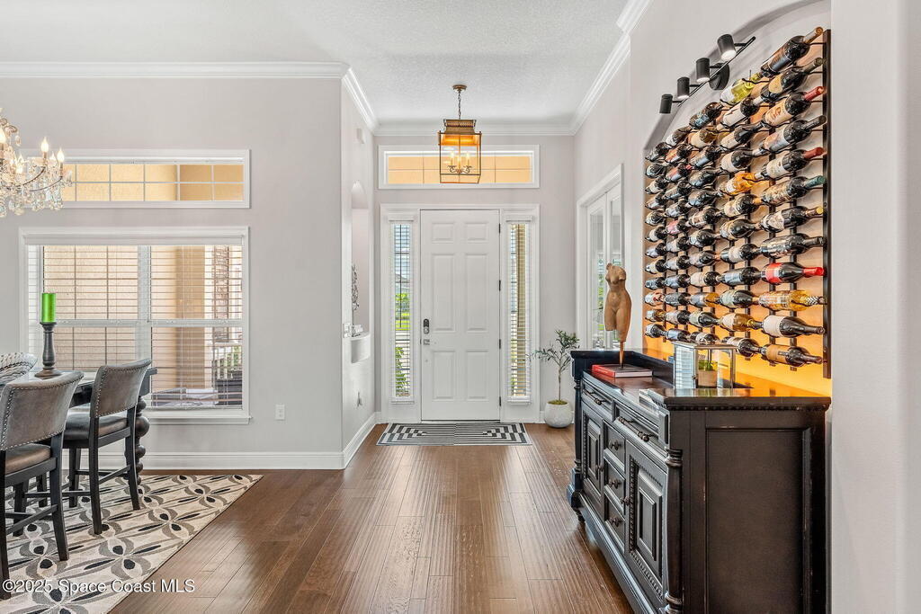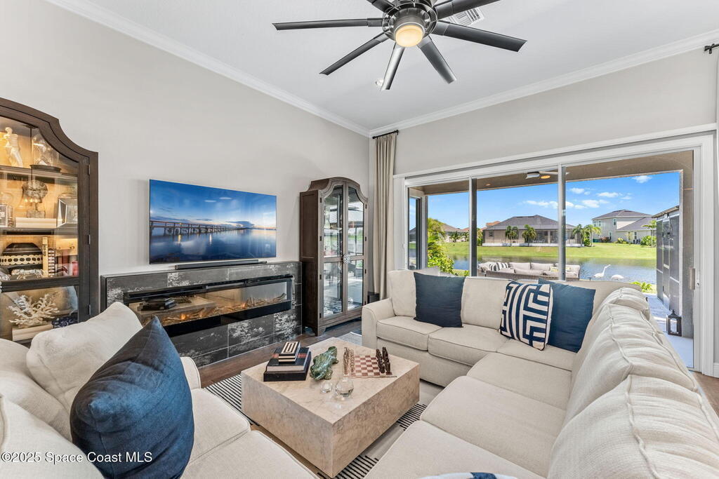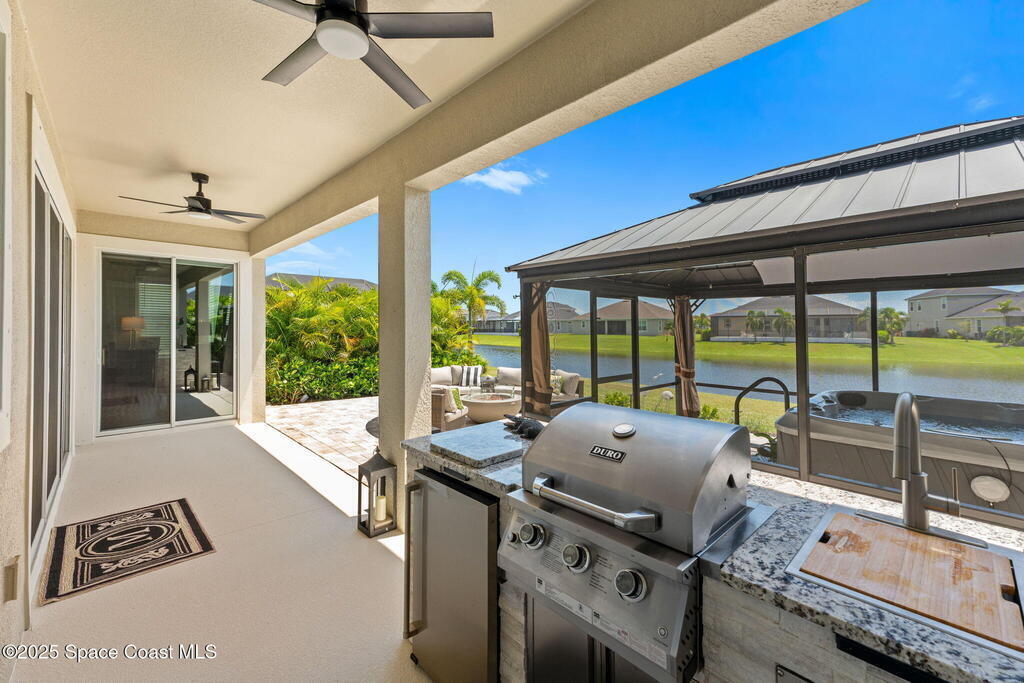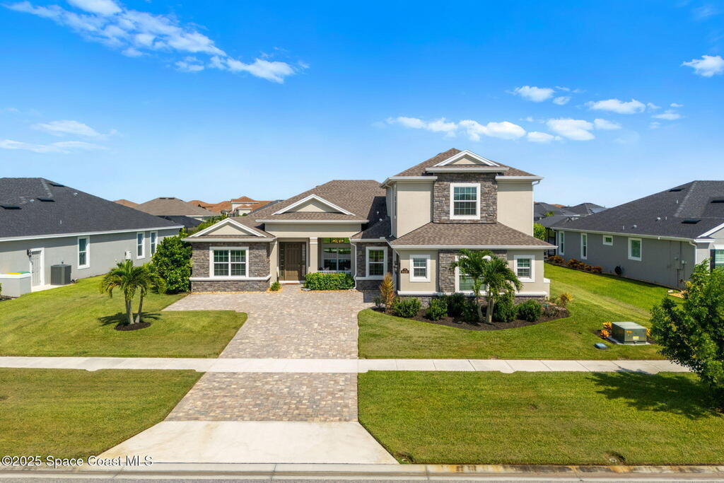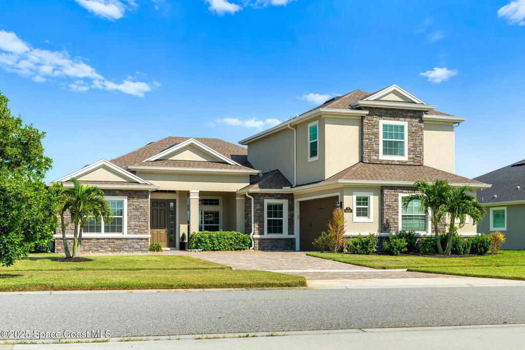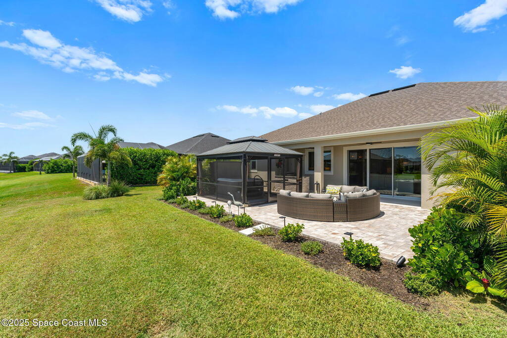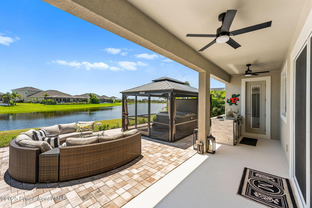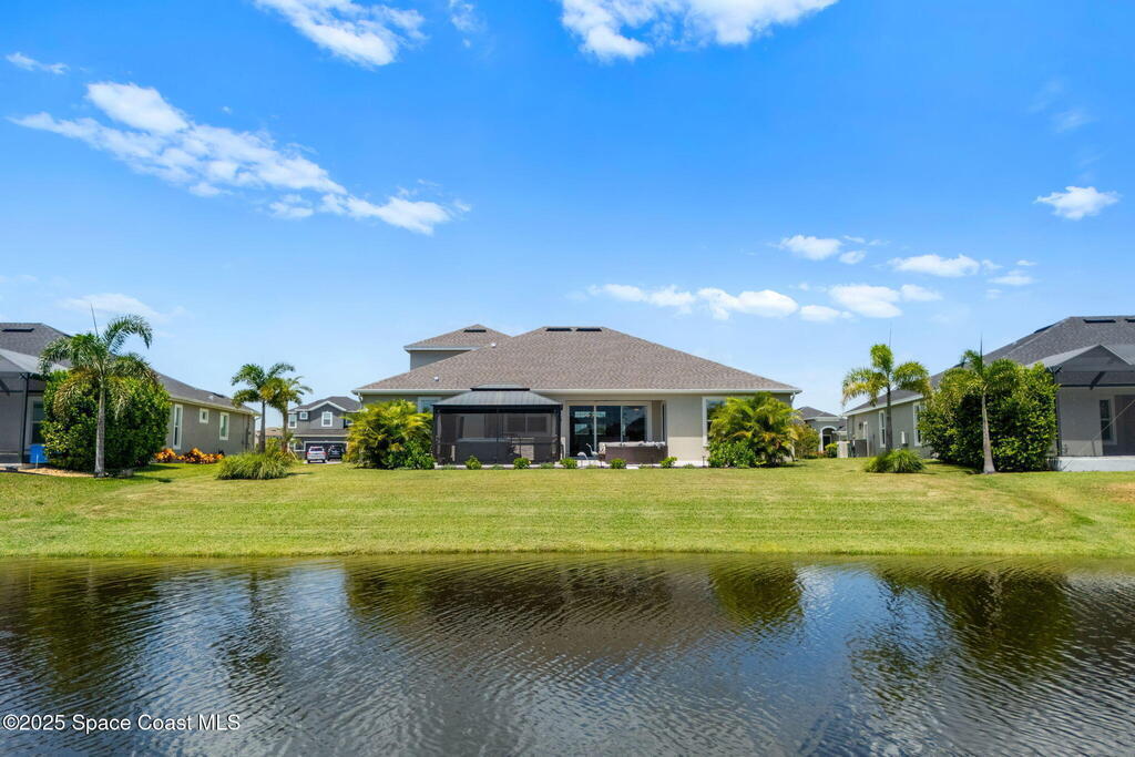 It almost sounds too good to be true: a fully redesigned 5-bed, 4-bath dream home where the showstopping kitchen is designed to entertain on a grand scale w/ 11'-4'' high ceilings throughout the main floor, multiple prep stations, abundant cabinetry, expansive counters & an XL walk-in pantry that transforms daily routines into gourmet experiences. Above the garage, a private mancave doubles as a 6th suite w/ built-in speakers, a bedroom, full bath & pre-plumbed for a wet bar--ready for game days or quiet escapes. A triple-pane slider opens to an extended paver patio featuring a natural gas line connected firepit & grill, full outdoor kitchen & hot tub tucked w/in a screened gazebo, all overlooking peaceful lake views w/ local exotic birds & star-filled skies. Add in the prestigious Addison Village lifestyle w/ access to resort-style pools, clubhouse, tennis & pickleball courts & community events, + the serenity of a quiet Viera neighborhood.